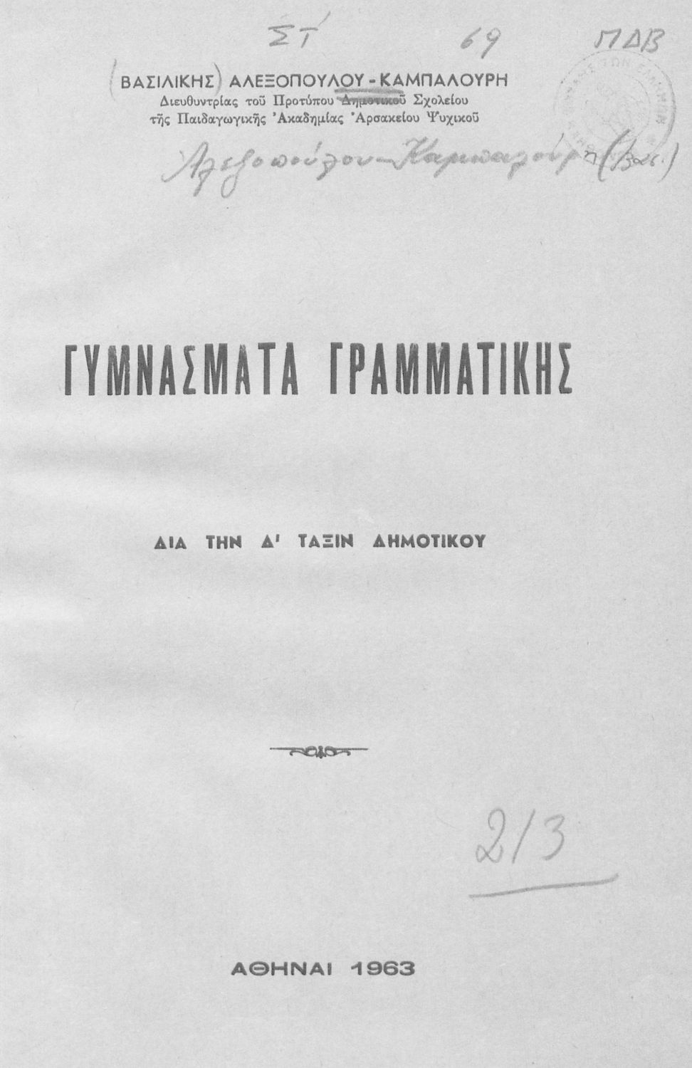 Συγγραφέας: Βασ. Αλεξοπούλου-Καμπαλούρη