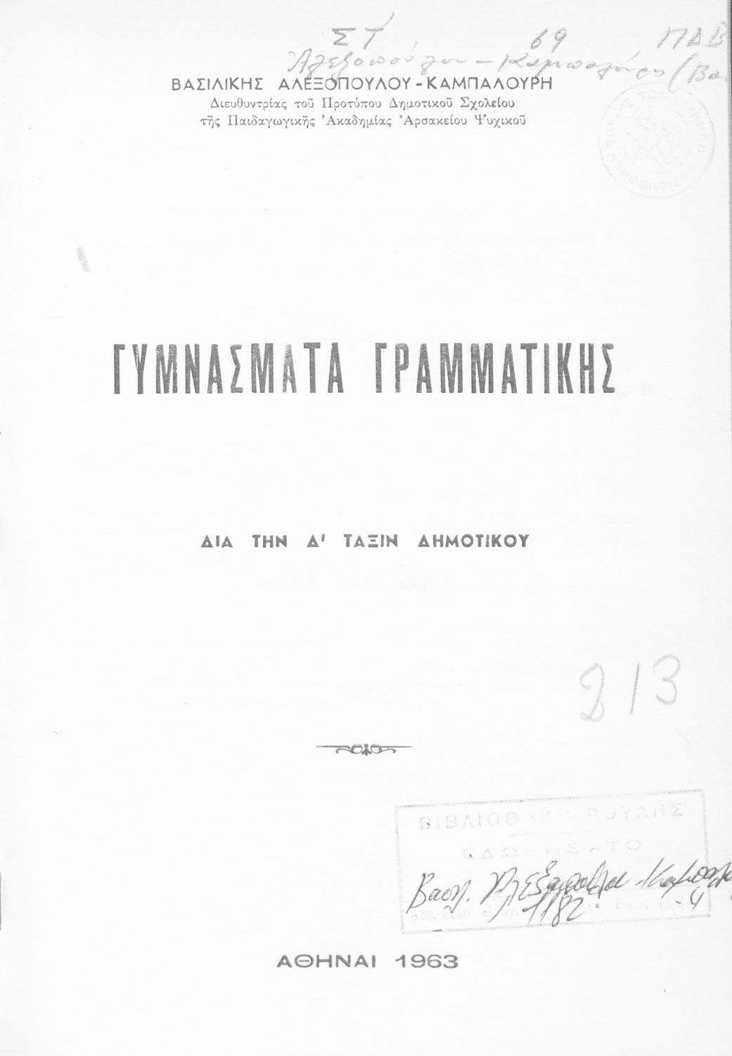 Τίτλος: Γυμνάσματα Γραμματικής. Δια την Δ΄ Τάξιν Δημοτικού