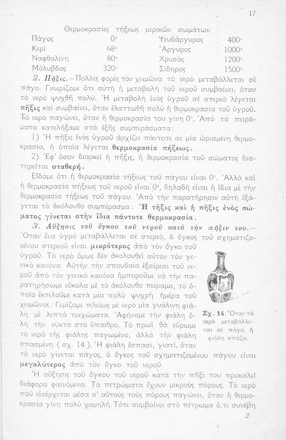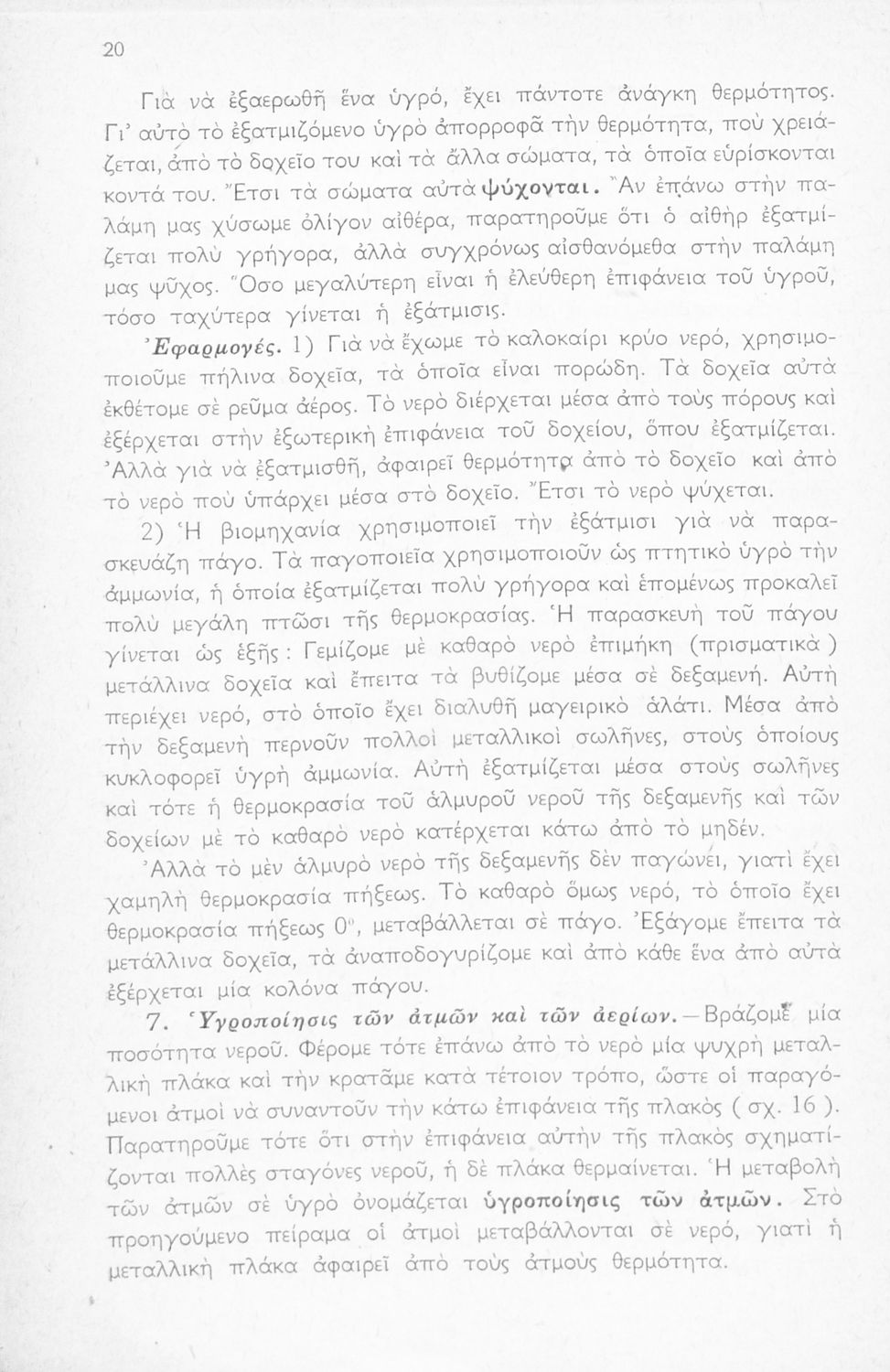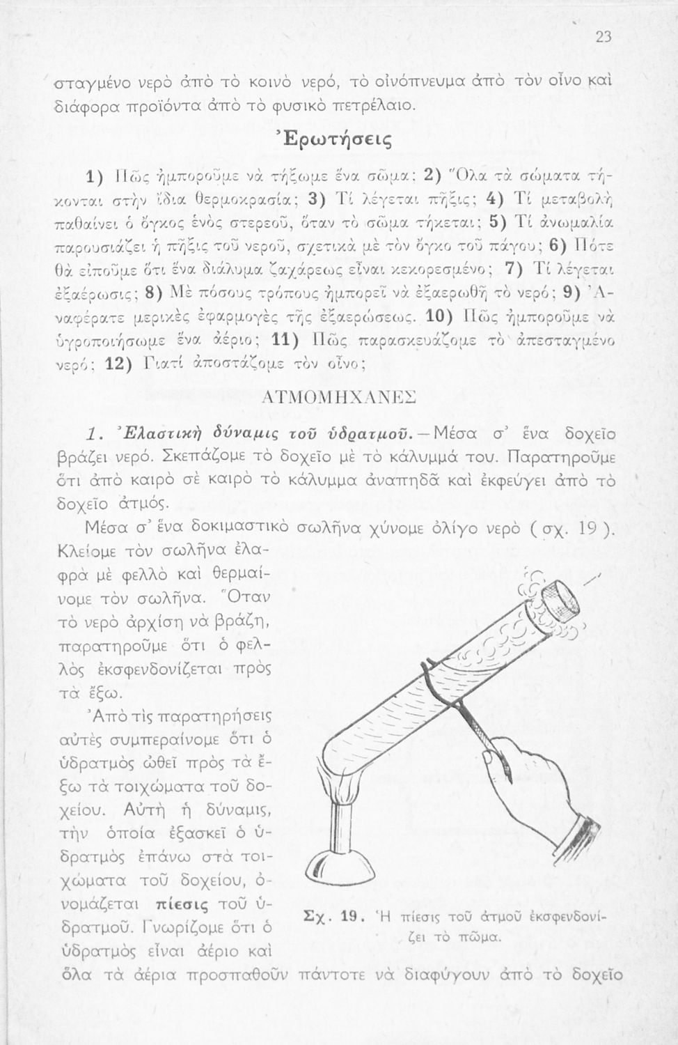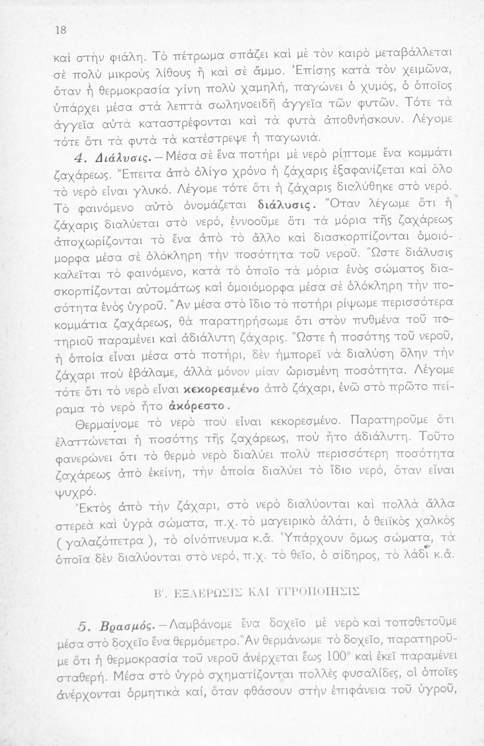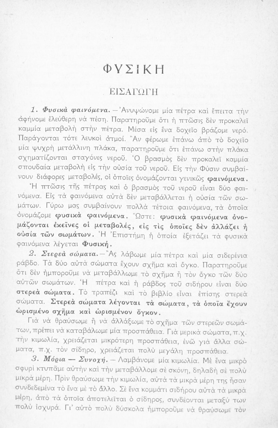 Σχολικό εγχειρίδιο για την Ε΄ Δημοτικού για το μάθημα της Φυσικής και Χημείας. Το εγχειρίδιο περιλαμβάνει τις βασικές έννοιες της πειραματικής φυσικής (θερμότητα, απόσταξη, εξάτμιση, βαρύτητα, ατμοσφαιρικά φαινόμενα,τα υγρά, τα αέρια κ.α.). Το δεύτερο μέρος ασχολείται με το μάθημα της χημείας και συγκεκριμένα αναπτύσσονται τα οξέα, οι βάσεις και τα άλατα, τα μέταλλα, τα λιπαρά σώματα κ.α.