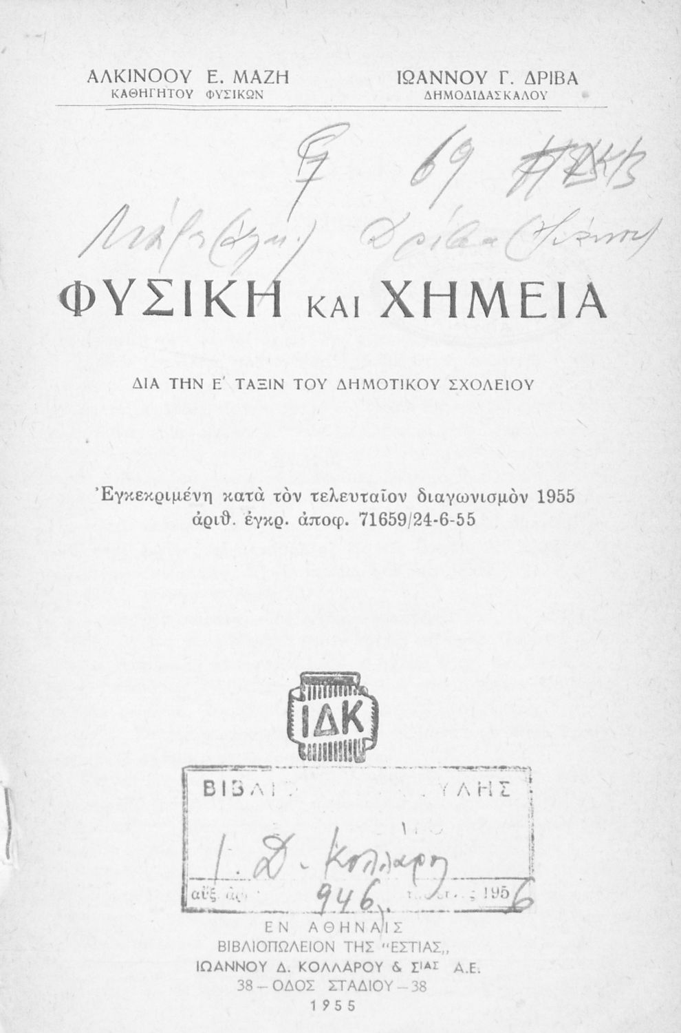 Τίτλος: Φυσική και χημεία δια την Ε΄ τάξιν του Δημοτικού Σχολείου