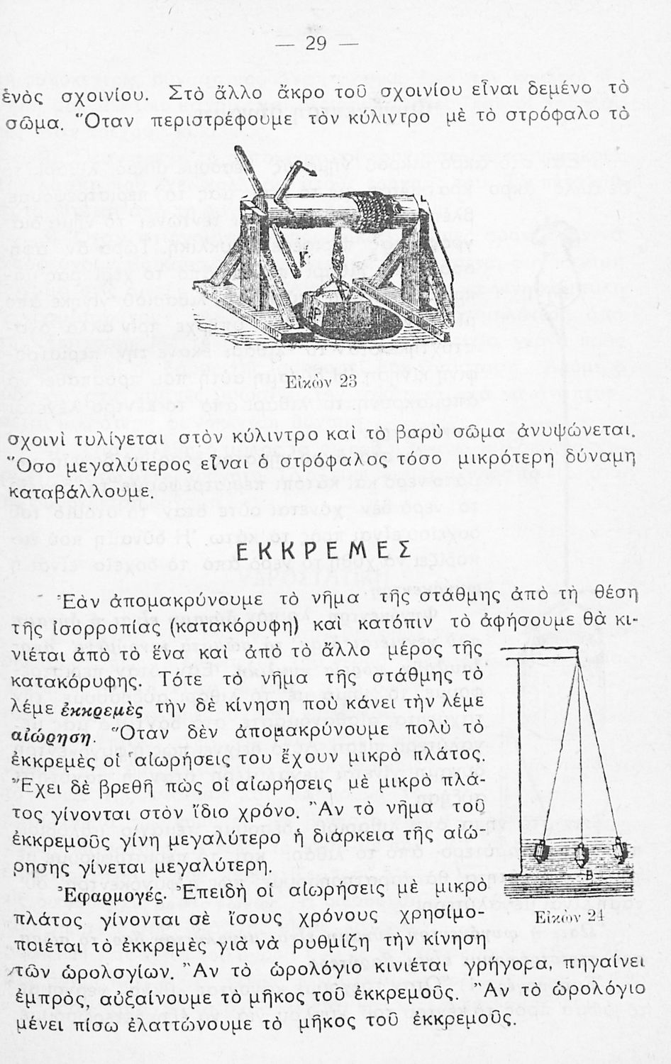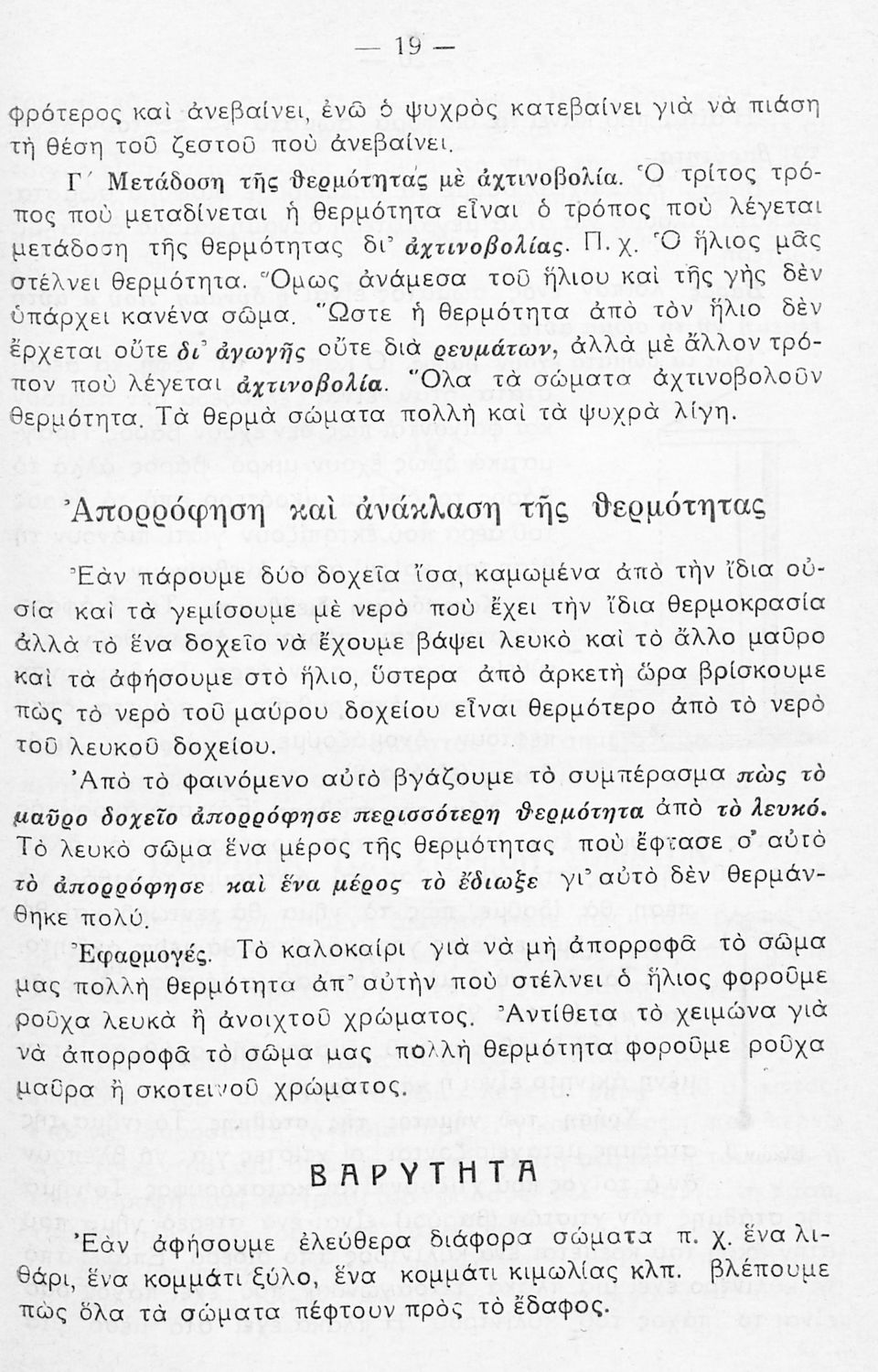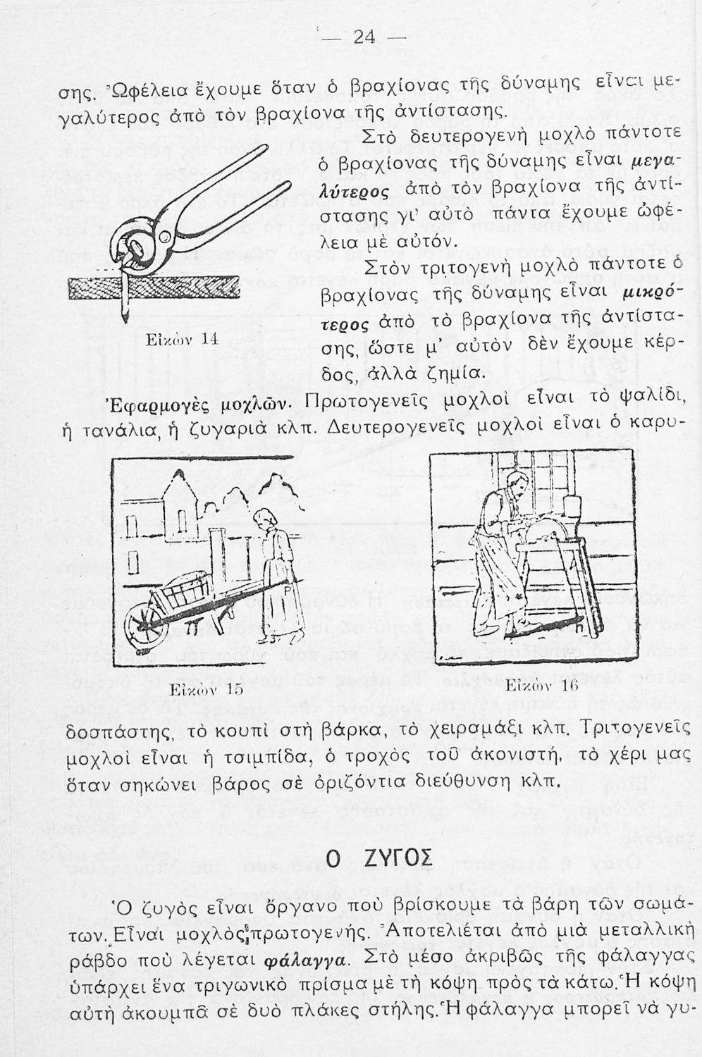 Σχολικό εγχειρίδιο για την Ε΄ και ΣΤ΄ Δημοτικού για το μαθήματα της Φυσικής και της Χημείας. Το εγχειρίδιο περιλαμβάνει τις βασικές έννοιες της φυσικής, όπως του βρασμού, της εξαέρωσης, της φυγόκεντρου δύναμης, της πυκνότητας των σωμάτων, της αεροστατικής, της ατμόσφαιρας και της ατμοσφαιρικής πίεσης. Η θεματική της χημείας περιλαμβάνει τις έννοιες του οξυγόνου και του υδρογόνου, την οξείδωση των μετάλλων, τις φυσικές χρωστικές ουσίες και την καθημερινήν χρήση αντικειμένων.