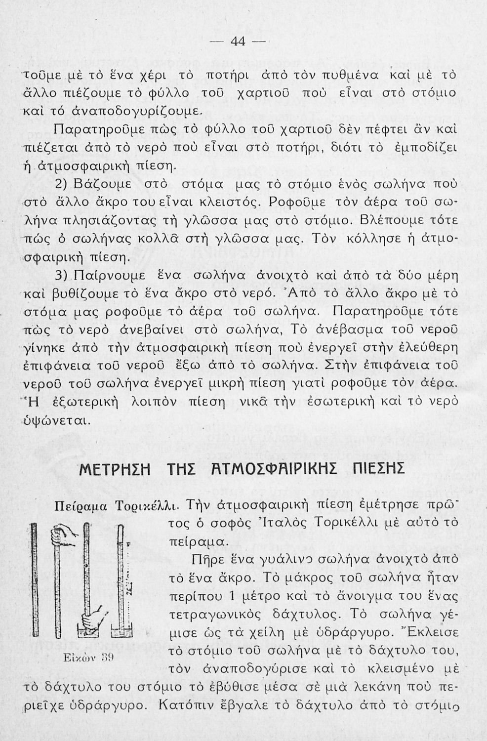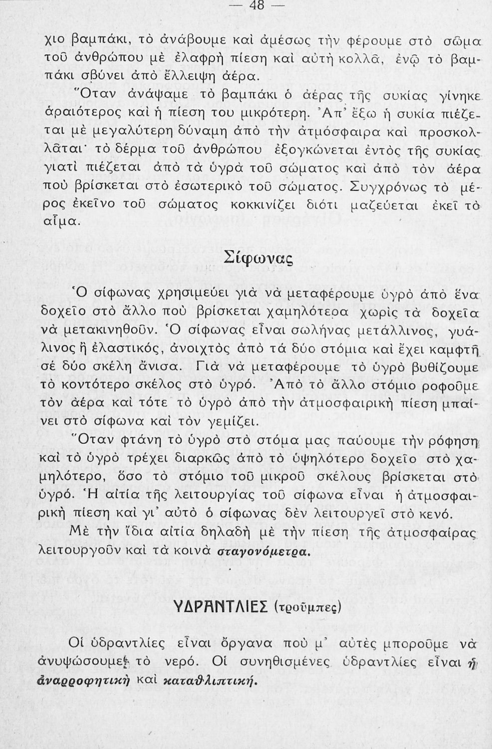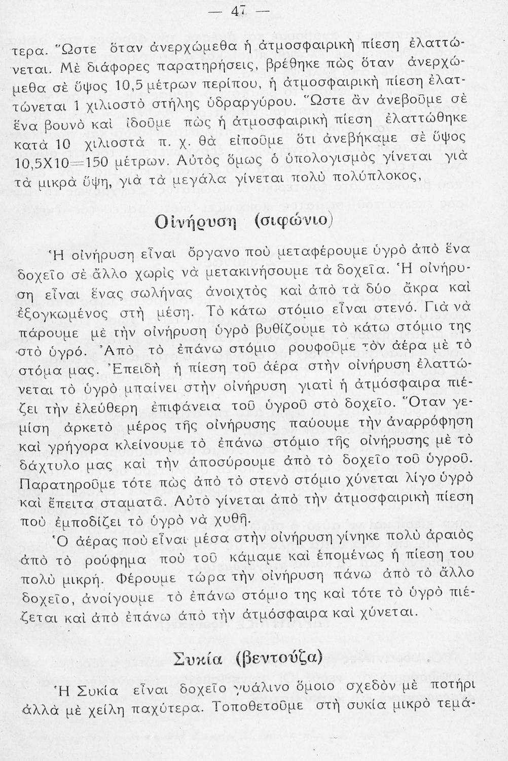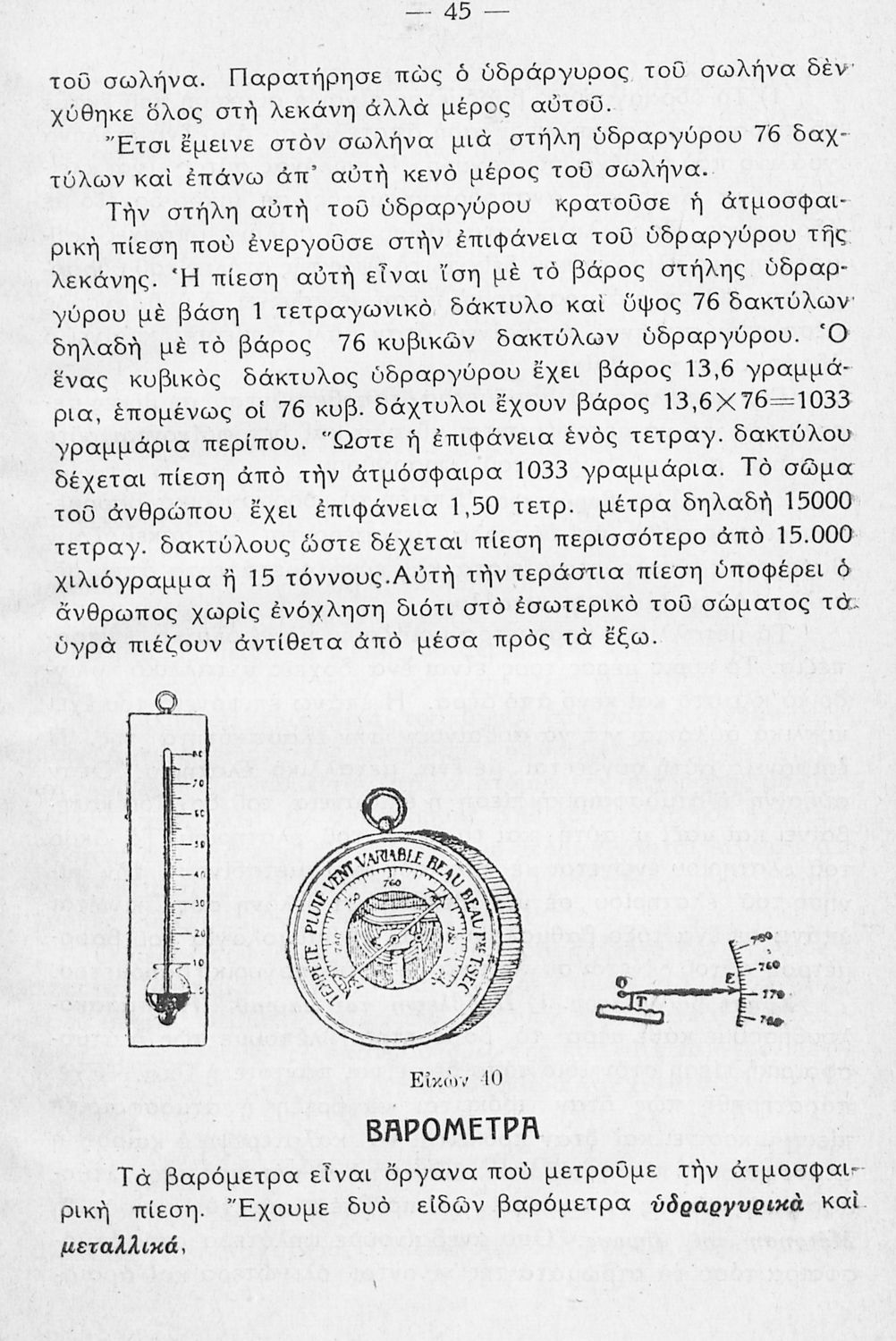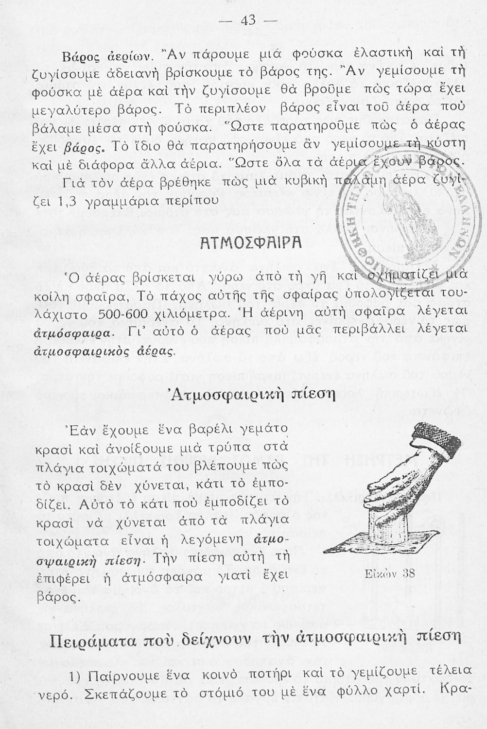 Σχολικό εγχειρίδιο για την Ε΄ και ΣΤ΄ Δημοτικού για το μαθήματα της Φυσικής και της Χημείας. Το εγχειρίδιο περιλαμβάνει τις βασικές έννοιες της φυσικής, όπως του βρασμού, της εξαέρωσης, της φυγόκεντρου δύναμης, της πυκνότητας των σωμάτων, της αεροστατικής, της ατμόσφαιρας και της ατμοσφαιρικής πίεσης. Η θεματική της χημείας περιλαμβάνει τις έννοιες του οξυγόνου και του υδρογόνου, την οξείδωση των μετάλλων, τις φυσικές χρωστικές ουσίες και την καθημερινήν χρήση αντικειμένων.
