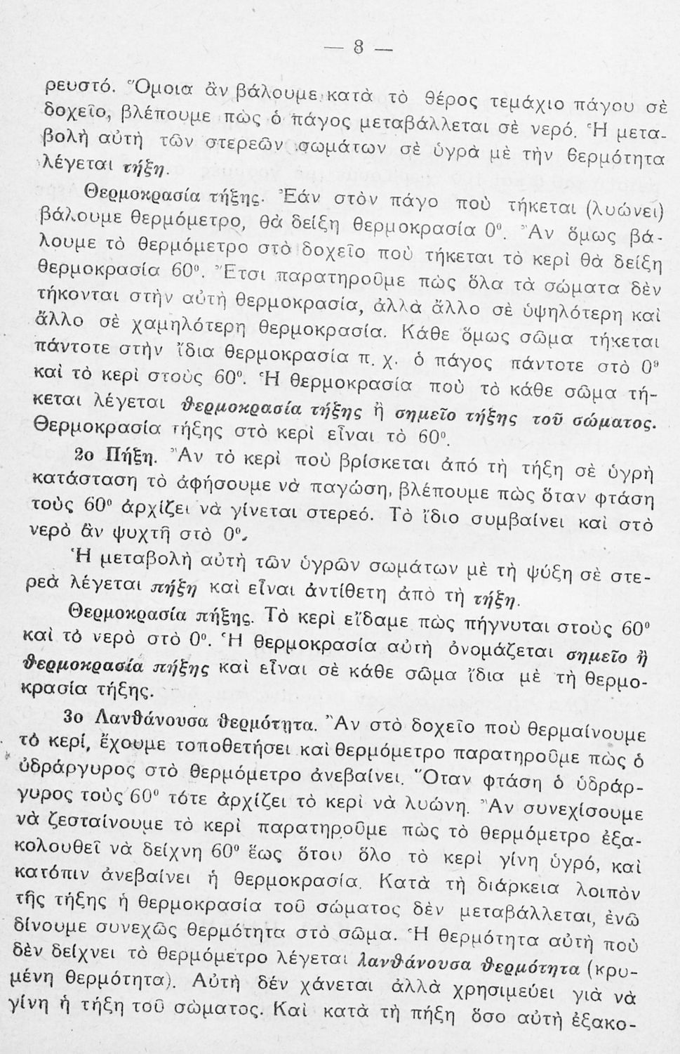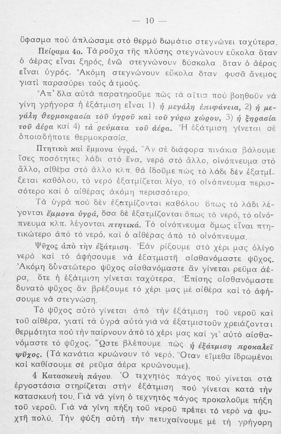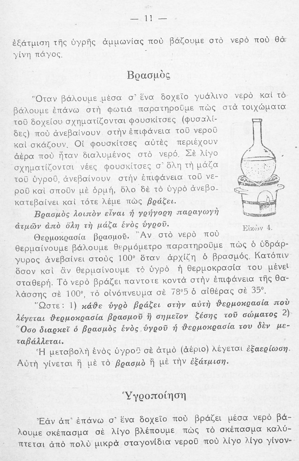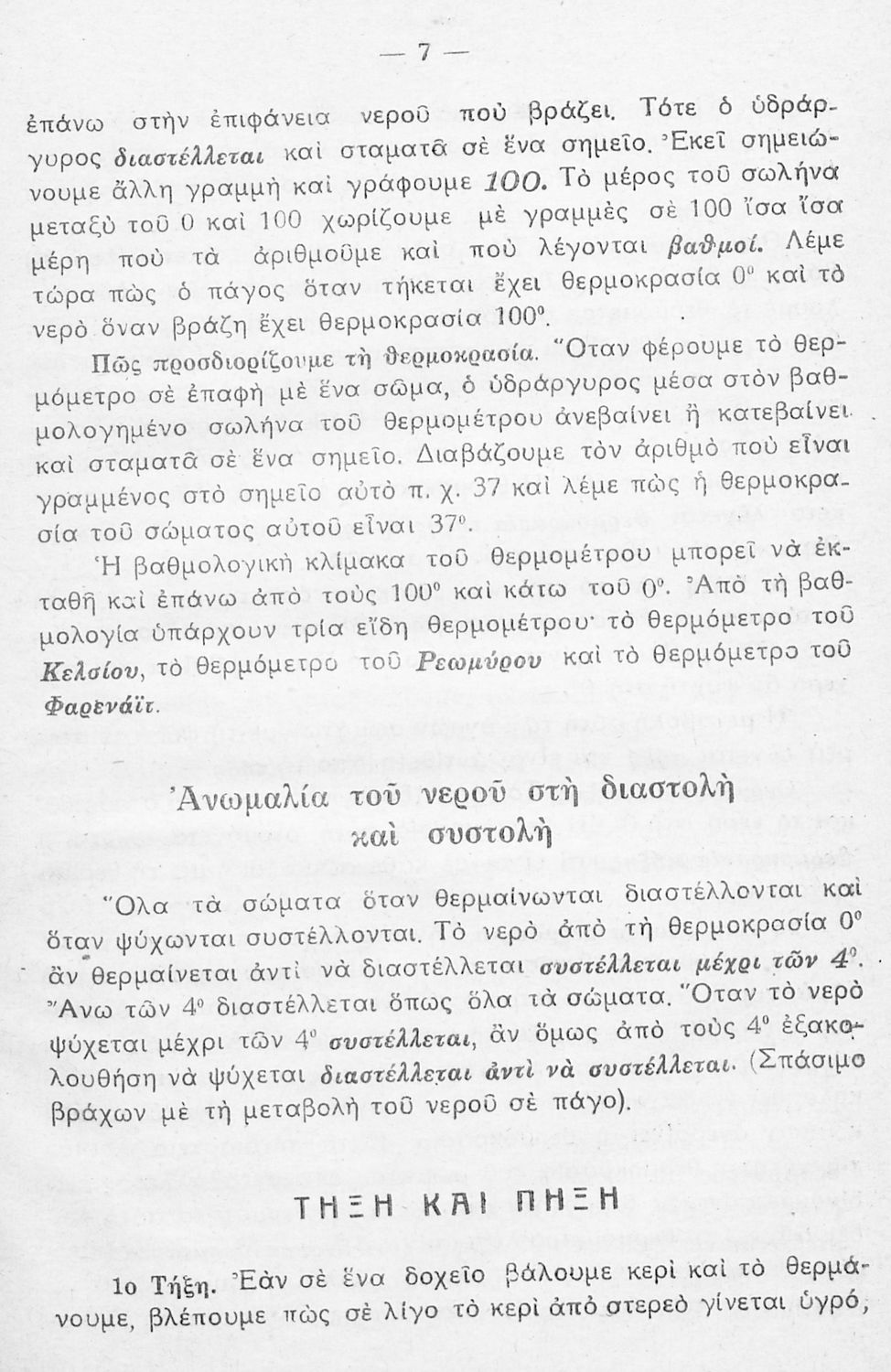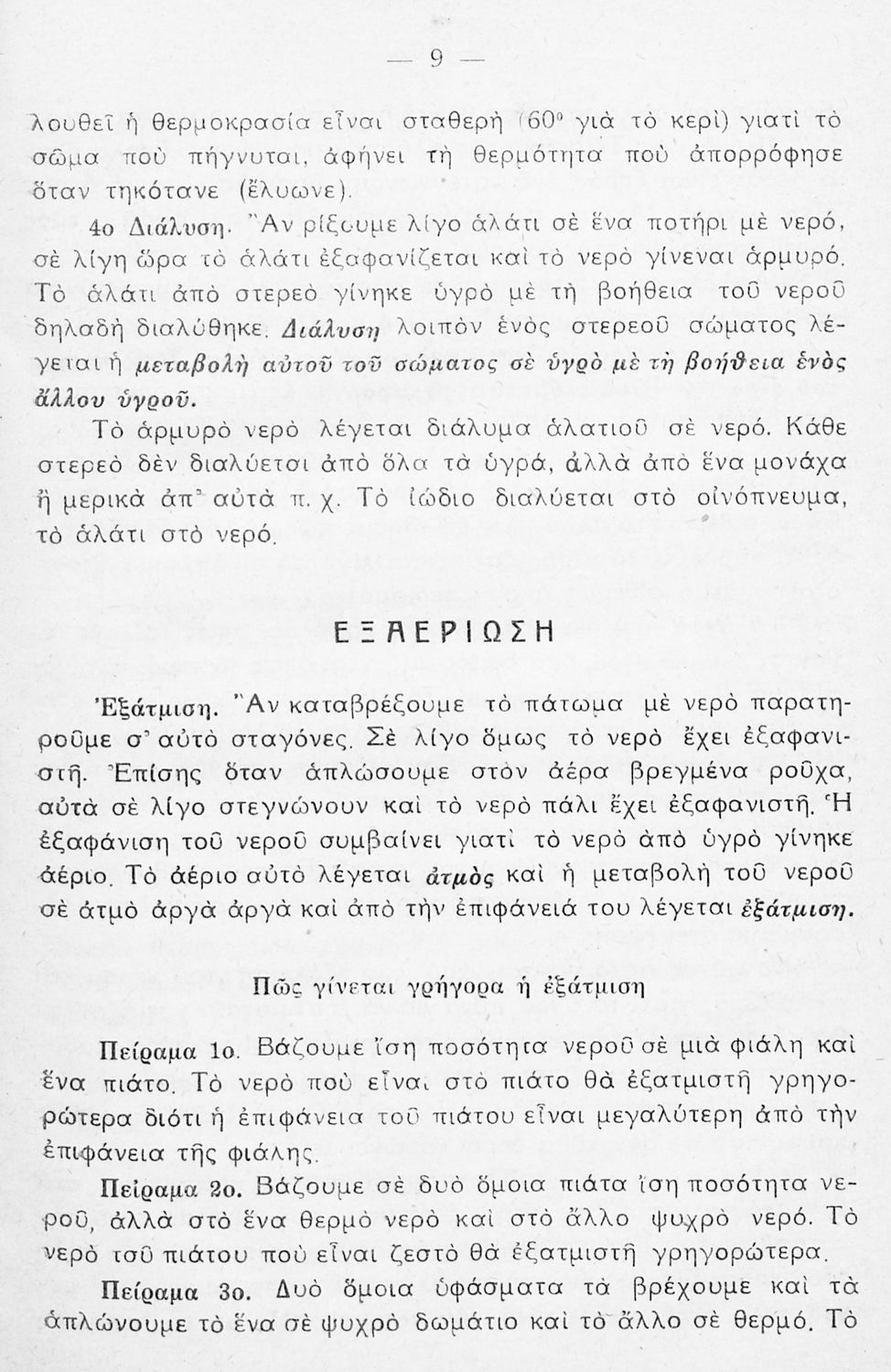 Σχολικό εγχειρίδιο για την Ε΄ και ΣΤ΄ Δημοτικού για το μαθήματα της Φυσικής και της Χημείας. Το εγχειρίδιο περιλαμβάνει τις βασικές έννοιες της φυσικής, όπως του βρασμού, της εξαέρωσης, της φυγόκεντρου δύναμης, της πυκνότητας των σωμάτων, της αεροστατικής, της ατμόσφαιρας και της ατμοσφαιρικής πίεσης. Η θεματική της χημείας περιλαμβάνει τις έννοιες του οξυγόνου και του υδρογόνου, την οξείδωση των μετάλλων, τις φυσικές χρωστικές ουσίες και την καθημερινήν χρήση αντικειμένων.