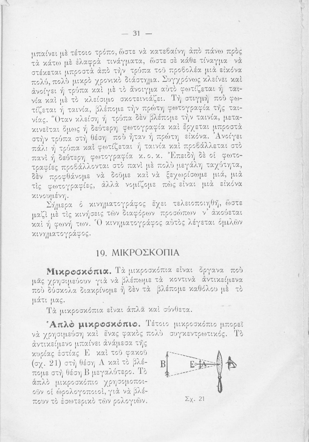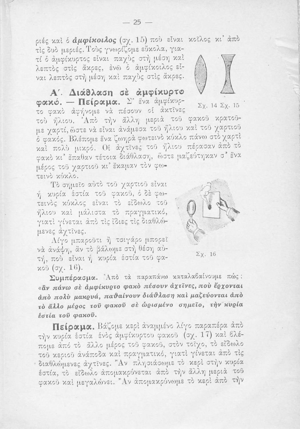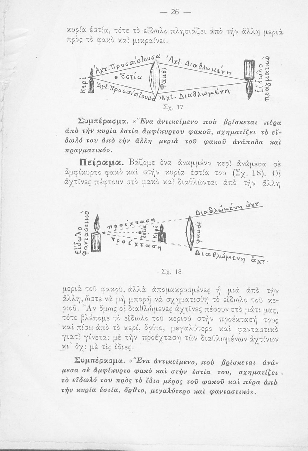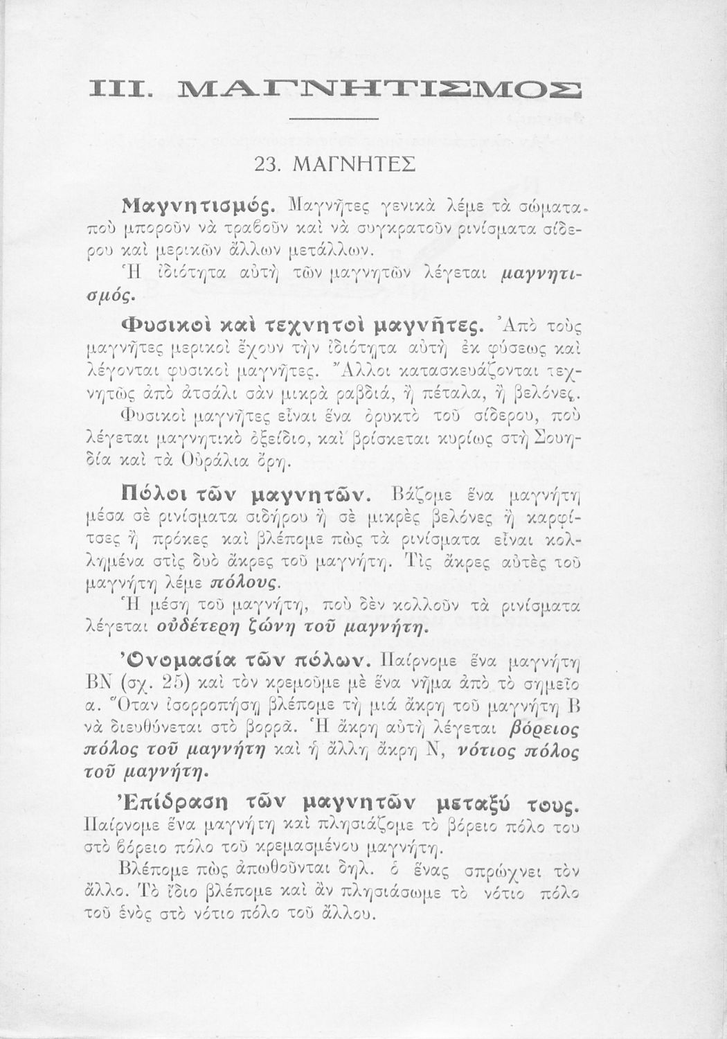 Βαθμίδα εκπαίδευσης: Πρωτοβάθμια Τάξη: ΣΤ' Δημοτικού Μάθημα: Φυσική Γλώσσα: Δημοτική με στοιχεία καθαρεύουσας Παρουσίαση περιεχομένου: Σχολικό εγχειρίδιο για την ΣΤ΄ Δημοτικού για το μάθημα της Φυσικής. Το εγχειρίδιο περιλαμβάνει τις βασικές έννοιες της φυσικής, όπως του ήχου και της ταχύτητας του ήχου και του φωτός, της διάθλασης του φωτός, του μαγνητισμού, του δυναμικού ηλεκτρισμού και του ηλεκτρισμού ευρύτερα. |