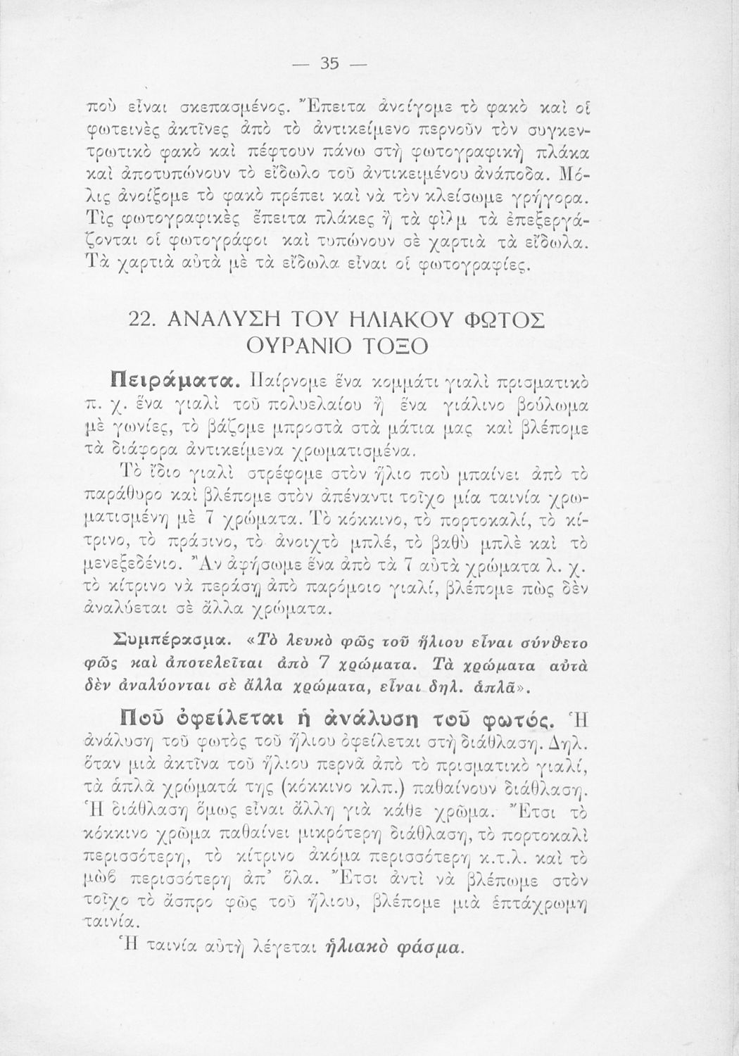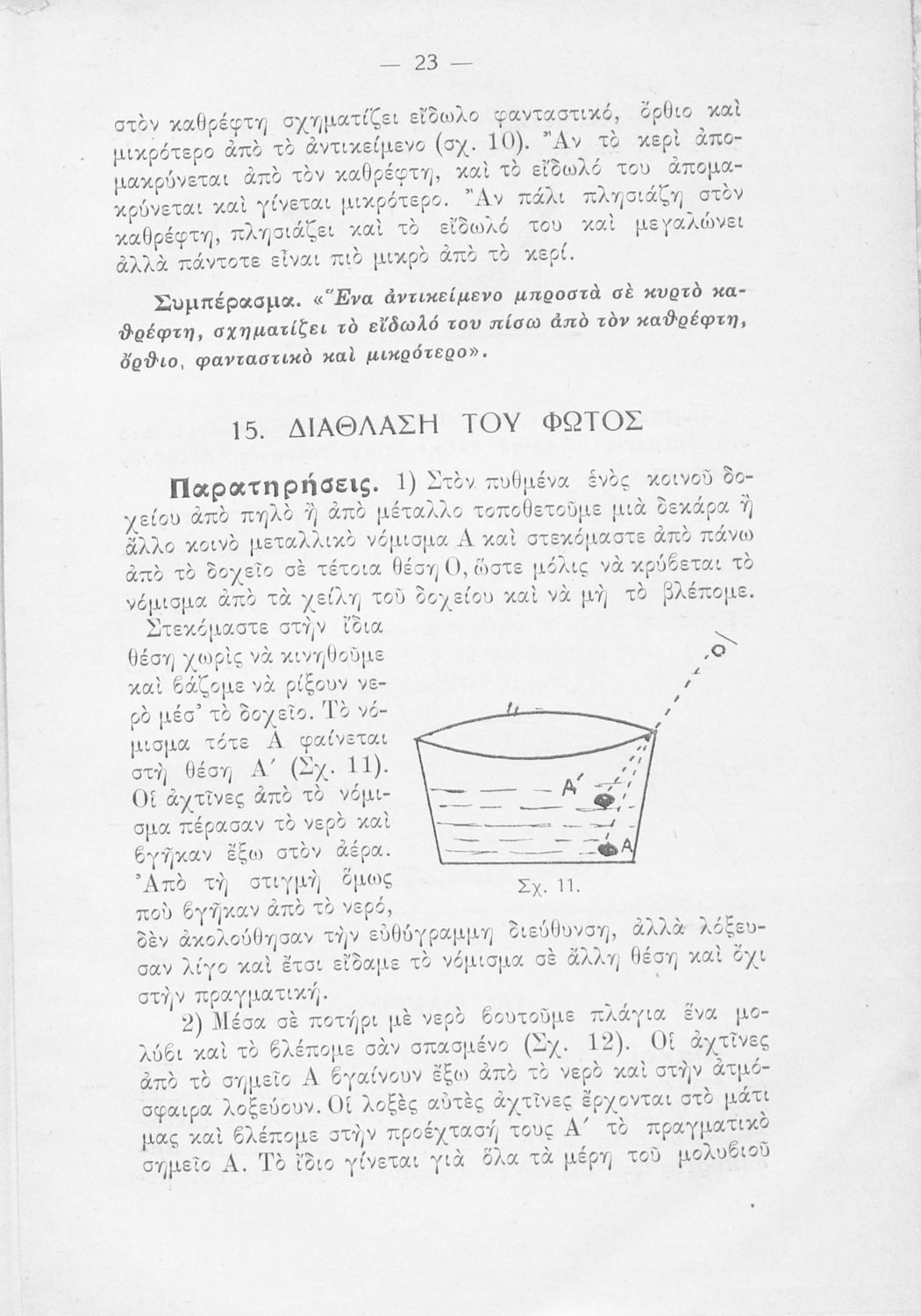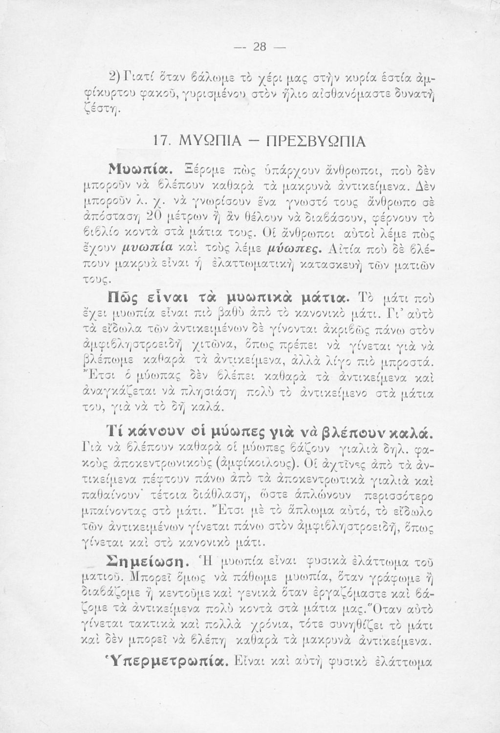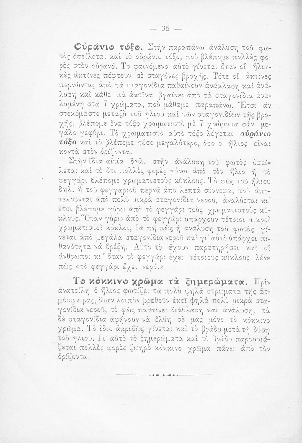 Βαθμίδα εκπαίδευσης: Πρωτοβάθμια Τάξη: ΣΤ' Δημοτικού Μάθημα: Φυσική Γλώσσα: Δημοτική με στοιχεία καθαρεύουσας Παρουσίαση περιεχομένου: Σχολικό εγχειρίδιο για την ΣΤ΄ Δημοτικού για το μάθημα της Φυσικής. Το εγχειρίδιο περιλαμβάνει τις βασικές έννοιες της φυσικής, όπως του ήχου και της ταχύτητας του ήχου και του φωτός, της διάθλασης του φωτός, του μαγνητισμού, του δυναμικού ηλεκτρισμού και του ηλεκτρισμού ευρύτερα. |