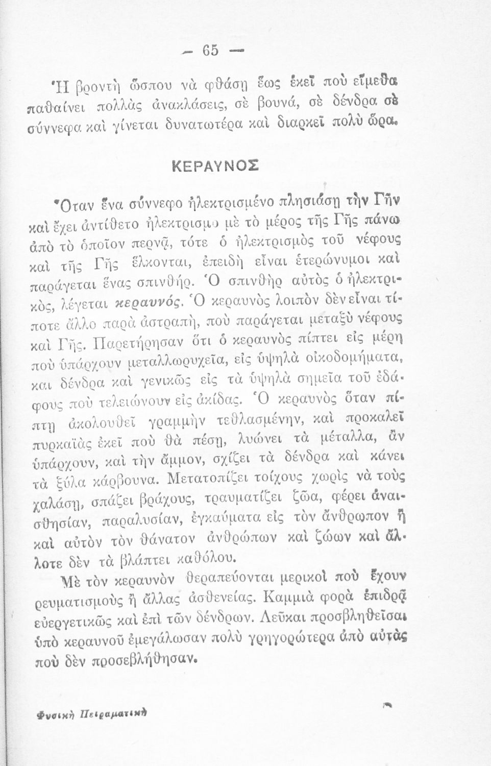 Σχολικό εγχειρίδιο της Ε΄ και ΣΤ΄ Τάξης των Δημοτικών Σχολείων και την Α΄ Τάξη των Οκτατάξιων Γυμνασίων, Προγυμνασίων και Αστικών Σχολείων για το μάθημα της Φυσικής. Παρέχει βασικές γνώσεις της φυσικής ...