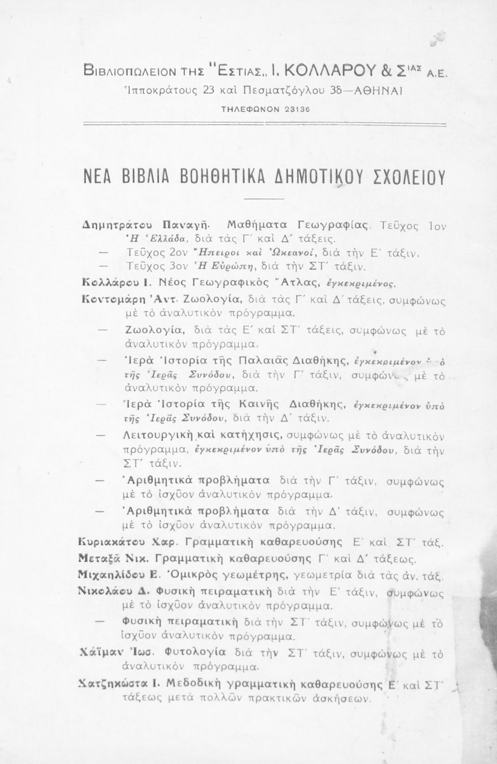 Εκδότης: Ιωάννης Δ. Κολλάρος, Βιβλιοπωλείο της "Εστίας"