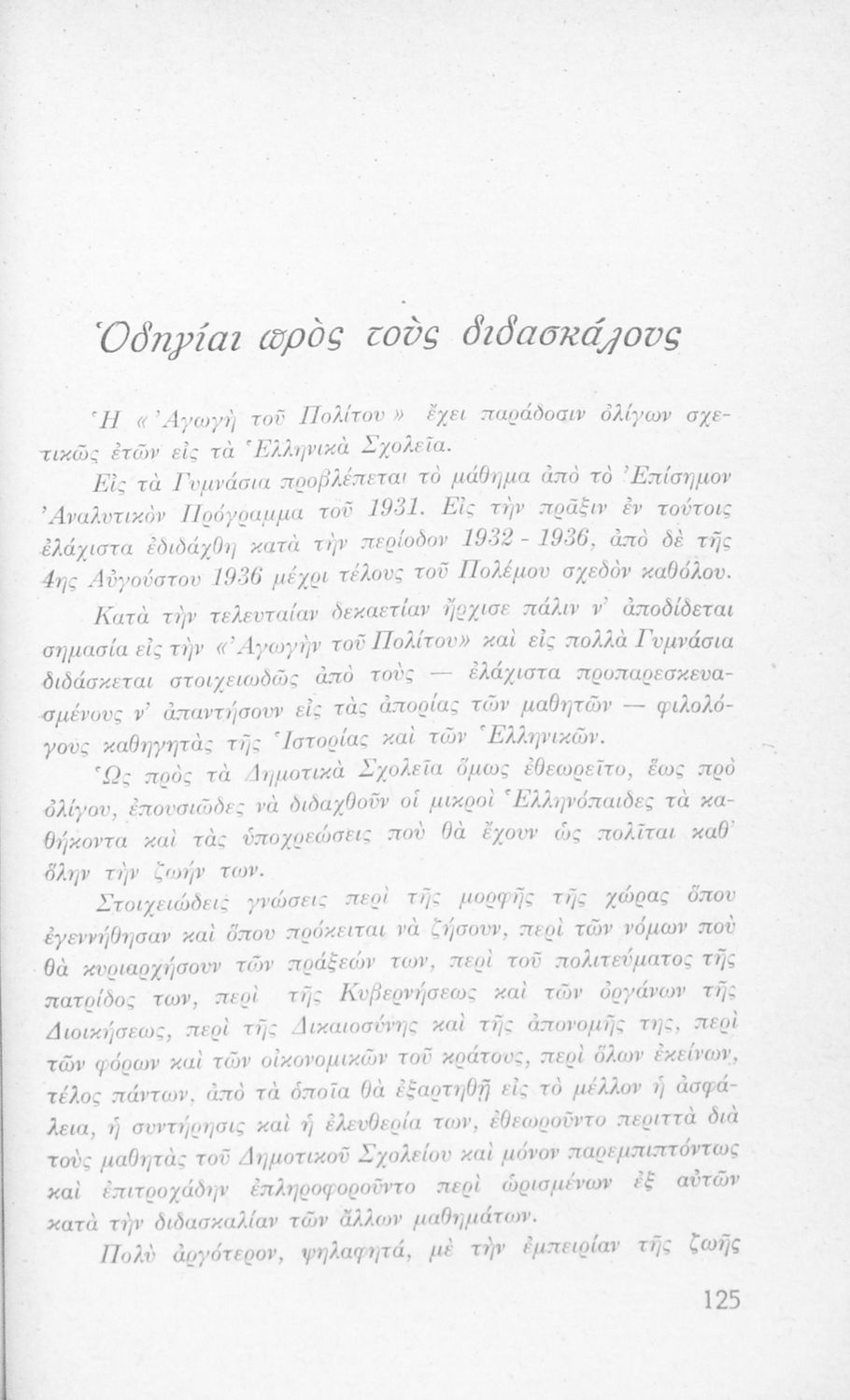 Αναγνωστικό της ΣΤ΄ Δημοτικού που κυκλοφόρησε σε 7.000 αντίτυπα 25 ημέρες πριν την 4η Αυγούστου 1936, οπότε κατά την επόμενη σχολική χρονιά διδάχτηκε ελάχιστα και η έκδοσή του με αυτή την μορφή σταμάτησε.
