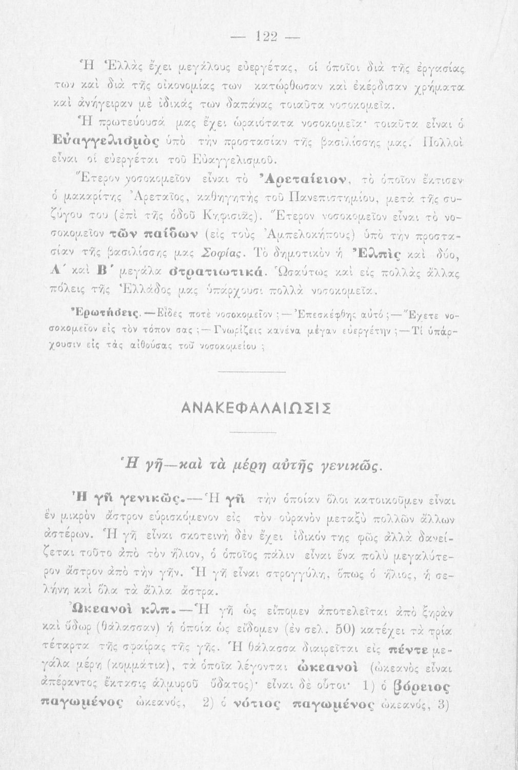 Βαθμίδα εκπαίδευσης: Πρωτοβάθμια Τάξη: Γ' Δημοτικού Μάθημα: Γεωγραφία Γλώσσα: Απλή καθαρεύουσα Παρουσίαση περιεχομένου: Σχολικό εγχειρίδιο της Γ΄ Δημοτικού για το μάθημα της Γεωγραφίας. Περιέχει μαθήματα πατριδογνωσίας. Αναφέρεται στα φυσικά, κοινωνικά, οικονομικά και πολιτισμικά χαρακτηριστικά των ελληνικών περιοχών. |