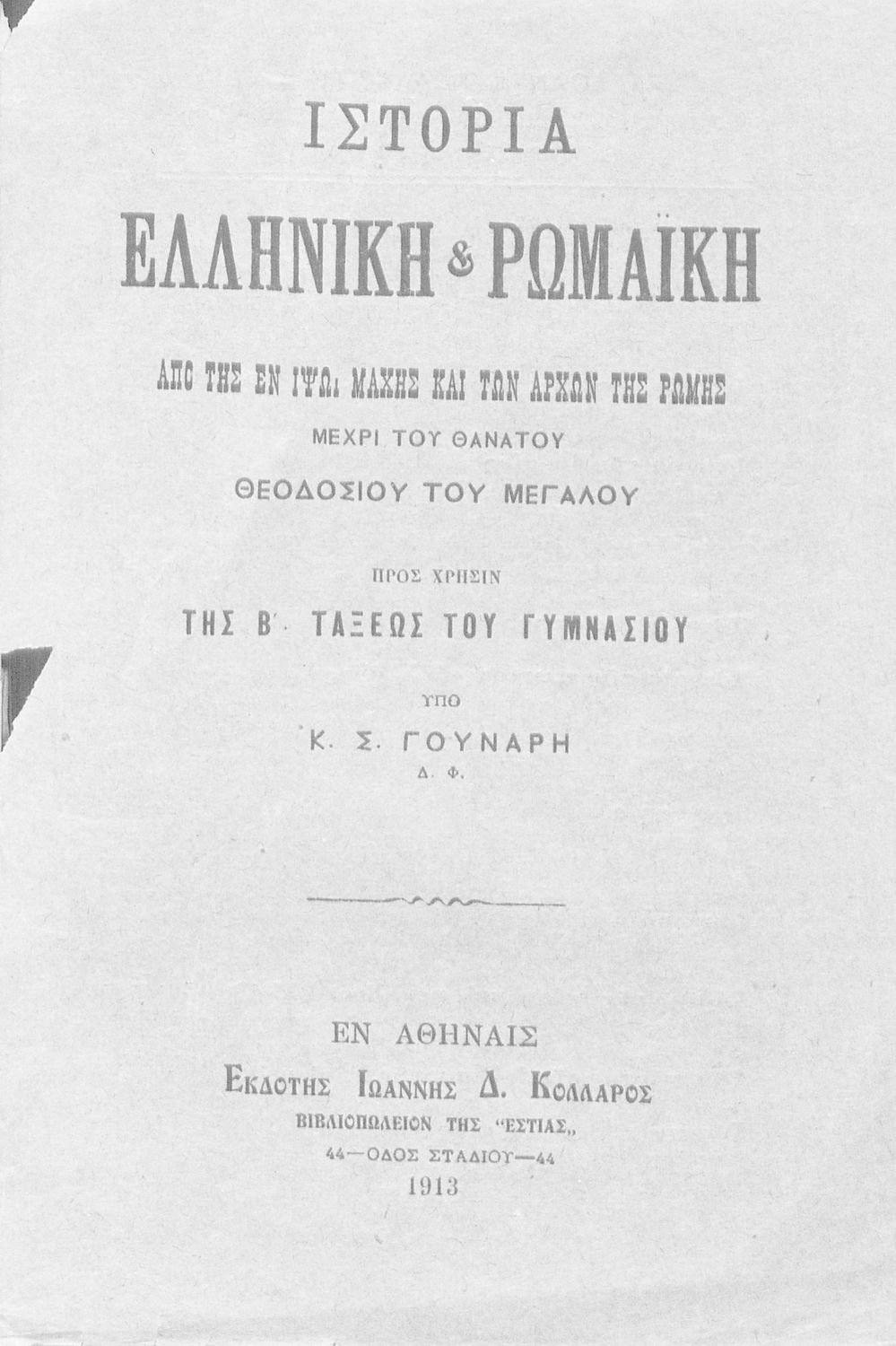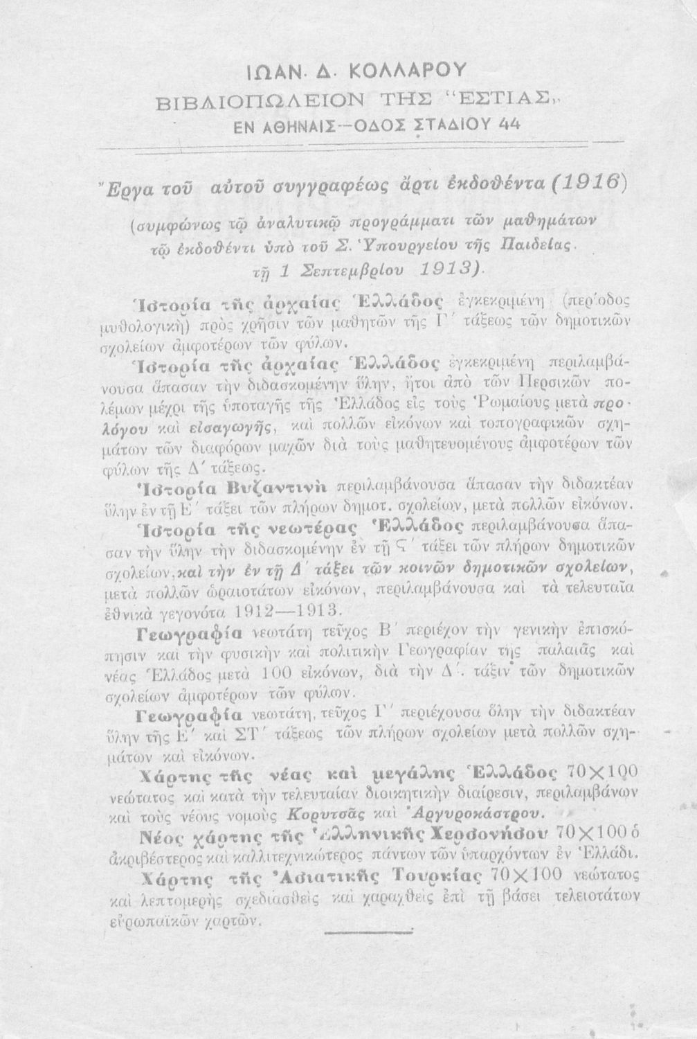 Εκδότης: Ιωάννης Δ. Κολλάρος Έτος έκδοσης: 1917 Τόπος έκδοσης: Αθήνα |