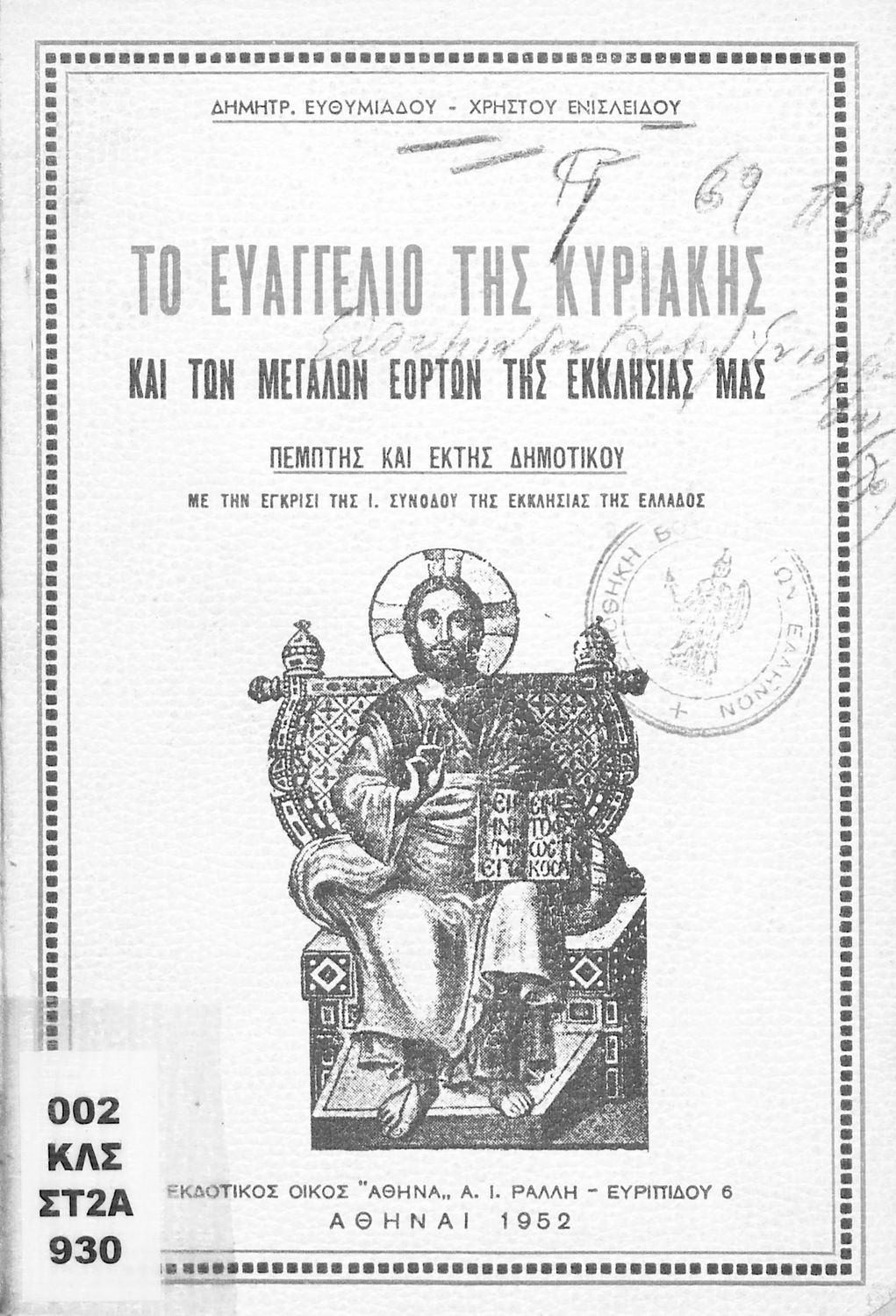 Τίτλος: Το Ευαγγέλιον της Κυριακής. Ε΄ και ΣΤ΄ Δημοτικού