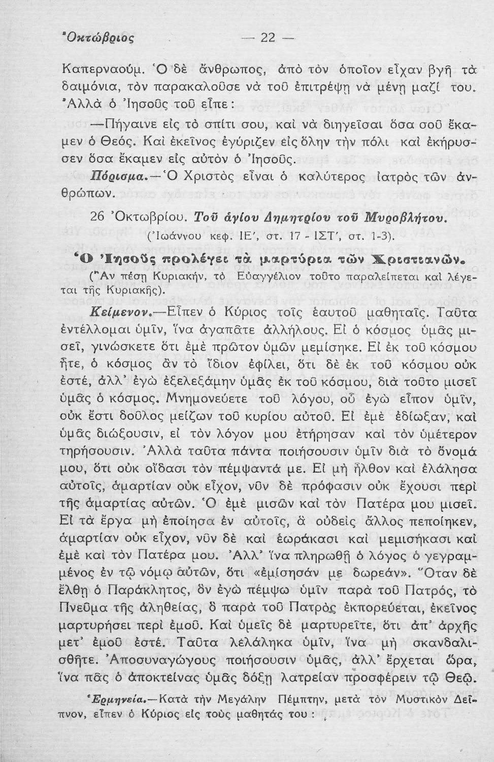 Μαθητικό βοήθημα της Ε΄ και ΣΤ΄ Δημοτικού για το μάθημα των Θρησκευτικών. Περιέχει τα ευαγγέλια και τις προσευχές που ψάλλονται στις χριστιανικές λειτουργίες. Περιέχει το κείμενο, την ερμηνεία και τα πορίσματά αυτών.
