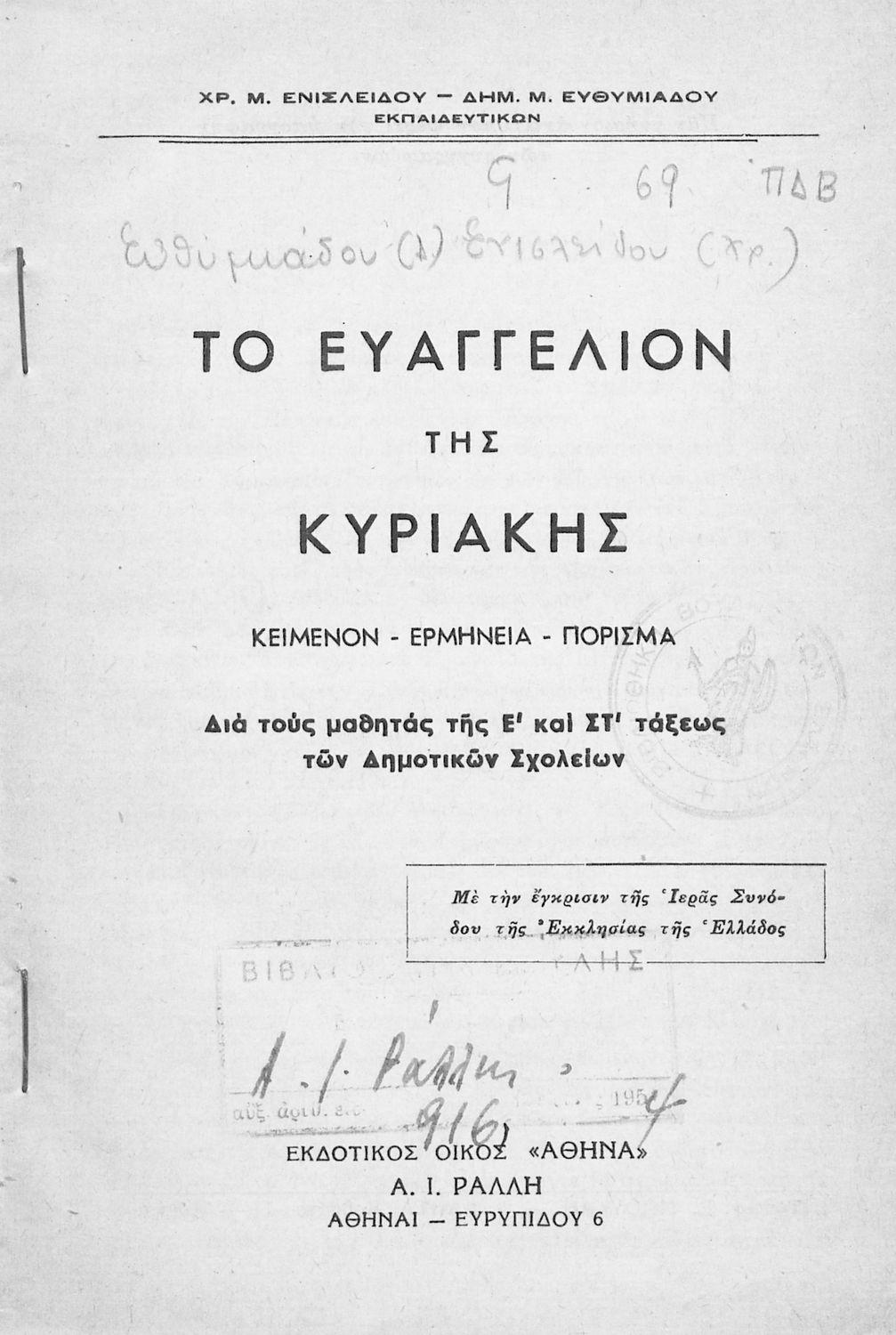Συγγραφέας: Χρ. Μ. Ενισλείδης, Δημ. Ευθυμιάδης