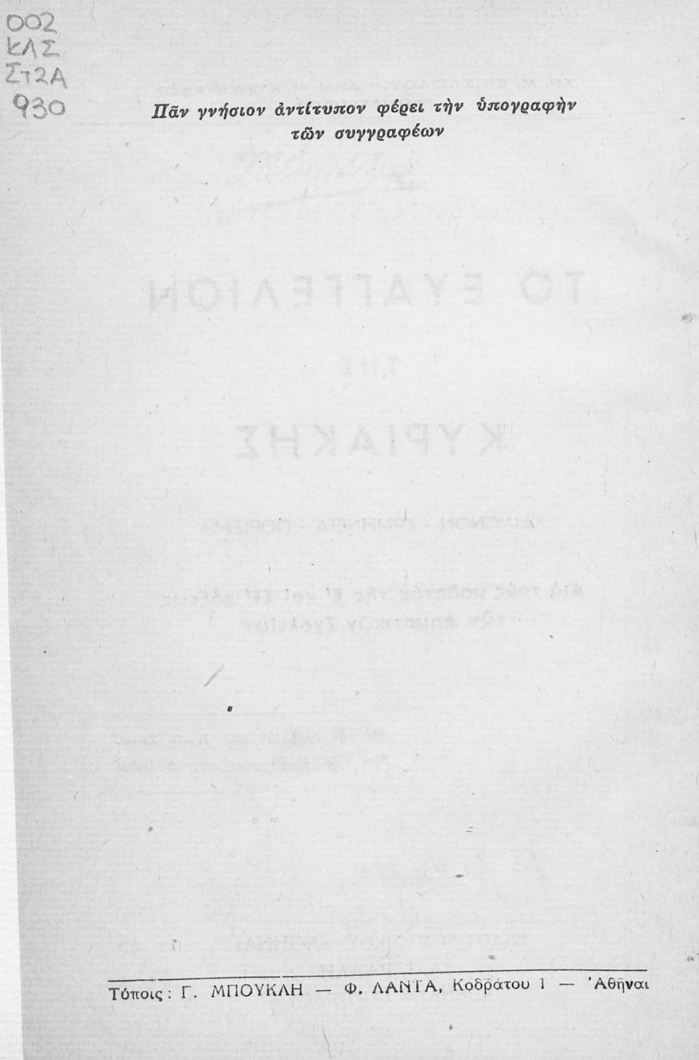 Εντοπισμός πρωτοτύπου: Βιβλιοθήκη της Βουλής των Ελλήνων