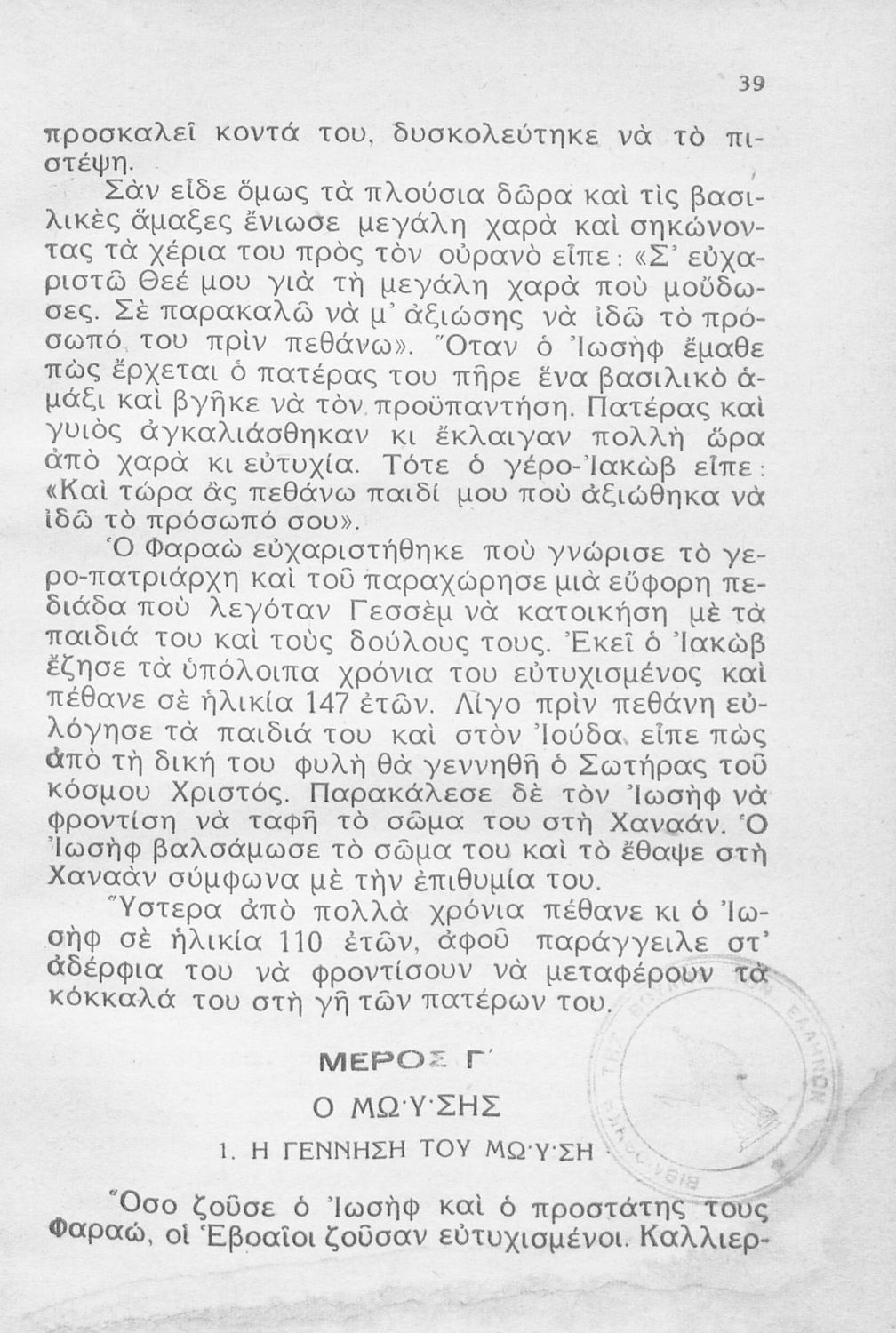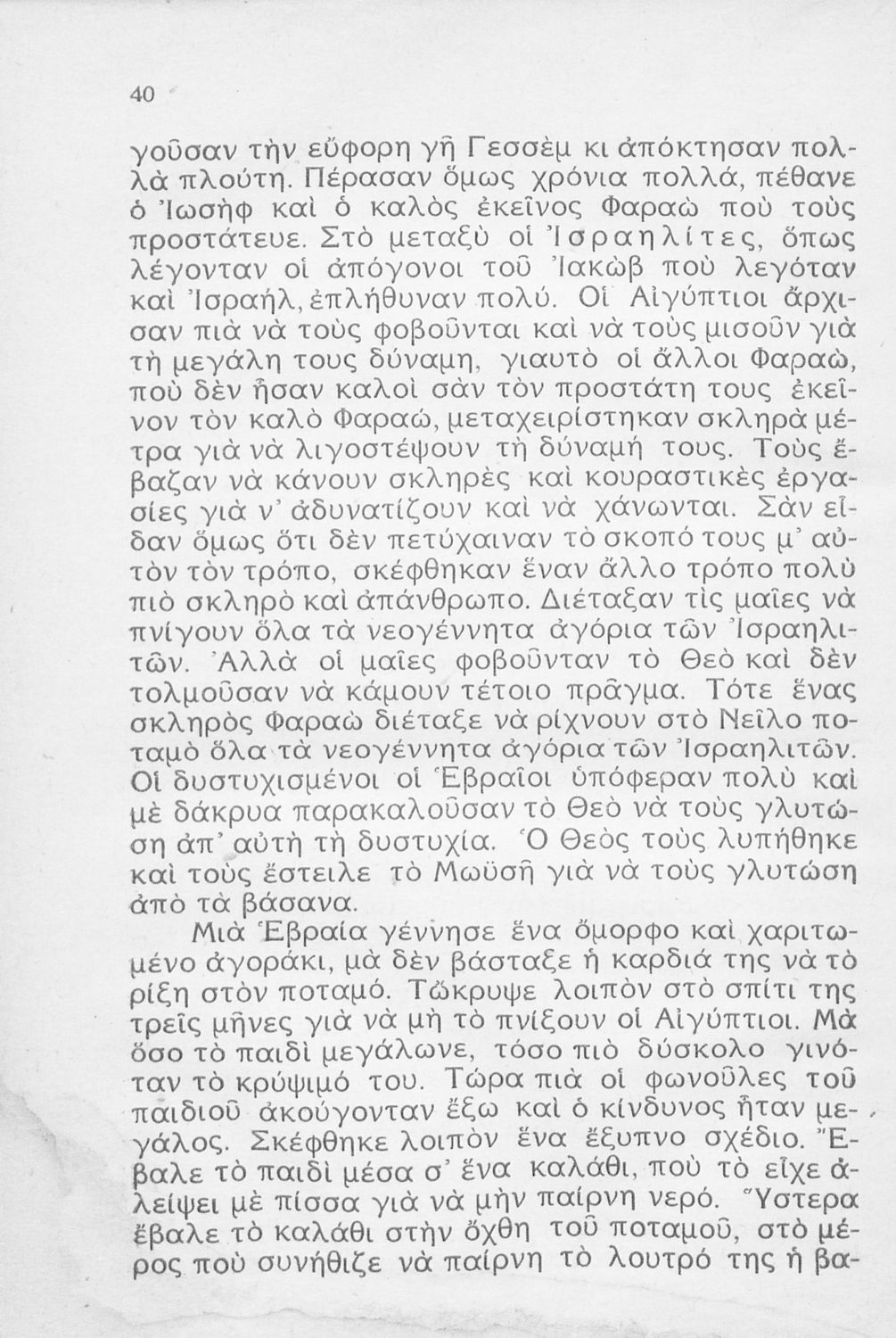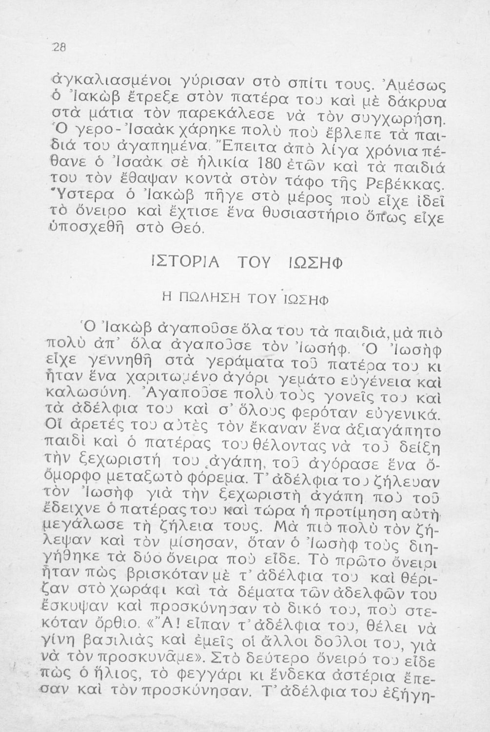 Σχολικό εγχειρίδιο Θρησκευτικών Α΄ Ελληνικού Σχολείου που συνιστά μία εξιστόρηση της Παλαιάς Διαθήκης από τη δημιουργία του κόσμου ως τους Μακκαβαίους.