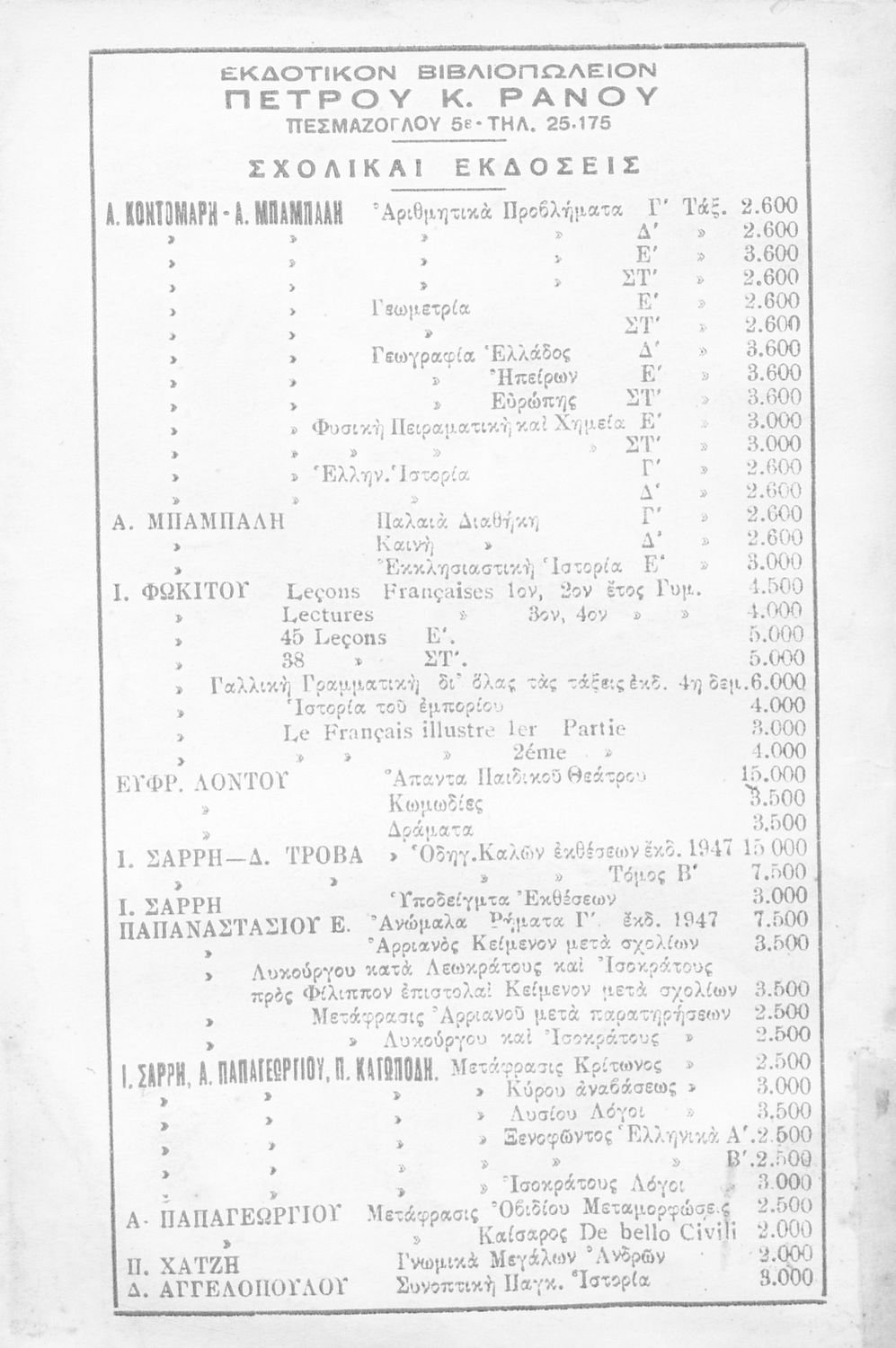 Τάξη:  Β' Γυμνασίου / Πρακτικό Λύκειο / Ανώτερα Παρθεναγωγεία