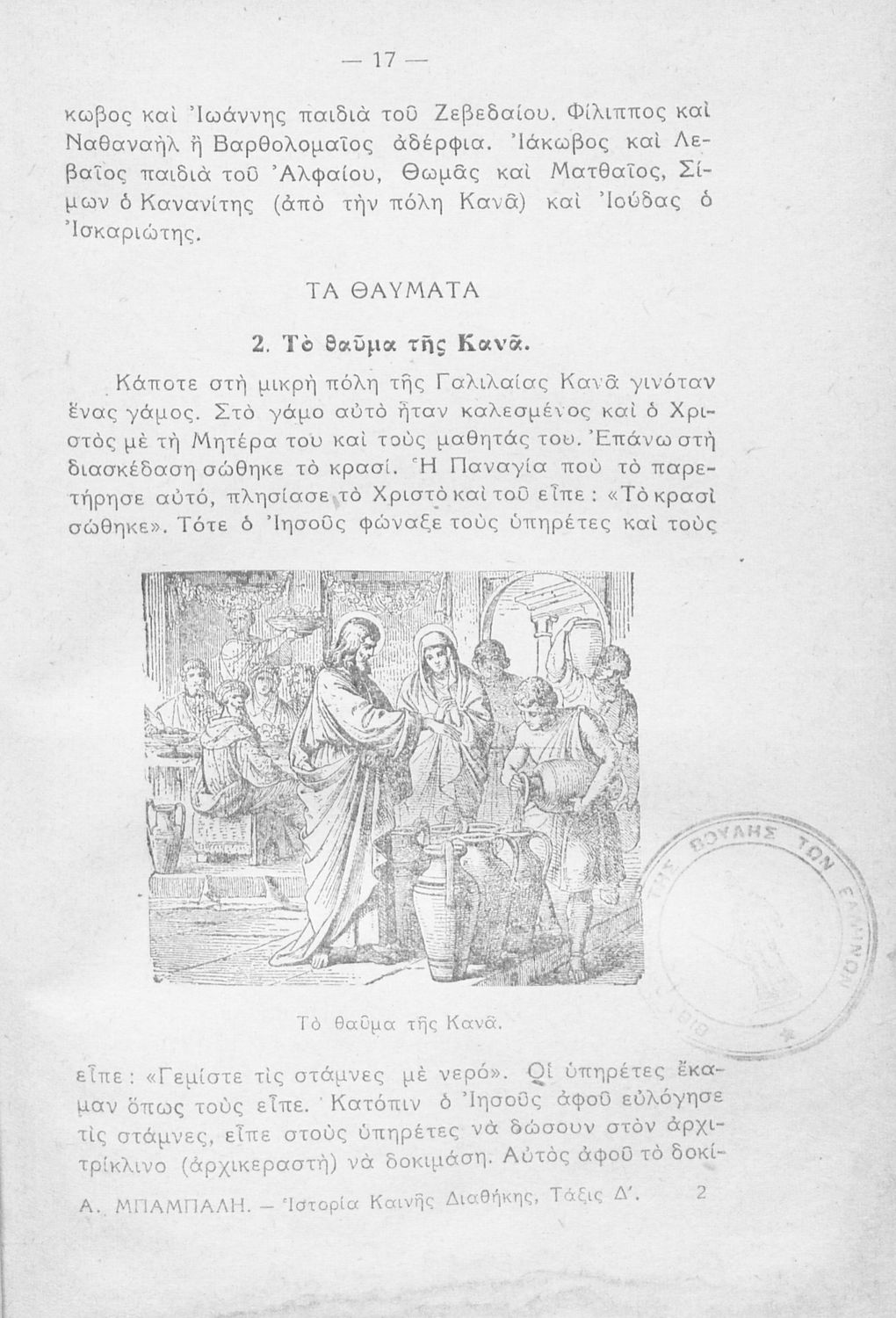 Βαθμίδα εκπαίδευσης: Πρωτοβάθμια Τάξη: Δ' Δημοτικού Μάθημα: Θρησκευτικά Γλώσσα: Απλή καθαρεύουσα Παρουσίαση περιεχομένου: Μαθητικό βοήθημα Θρησκευτικών Δ΄ Δημοτικού που συνιστά μία εξιστόρηση της Καινής Διαθήκης από τη γέννηση της Θεοτόκου ως την ανάληψη του Χριστού. |