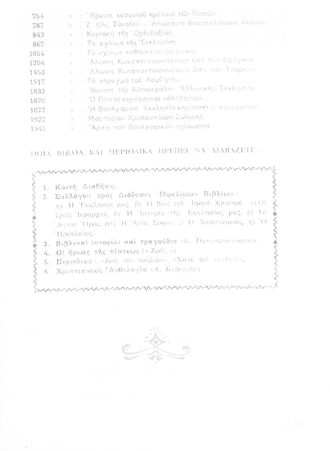 Βαθμίδα εκπαίδευσης: Πρωτοβάθμια Τάξη: Ε' Δημοτικού Μάθημα: Θρησκευτικά Γλώσσα: Απλή καθαρεύουσα Παρουσίαση περιεχομένου: Μαθητικό βοήθημα Θρησκευτικών Ε΄ Δημοτικού που αποτελεί μια ιστορική επισκόπηση της Ορθόδοξης Εκκλησίας από την ίδρυσή της μέχρι την ίδρυση της Εκκλησίας της Ελλάδας. |