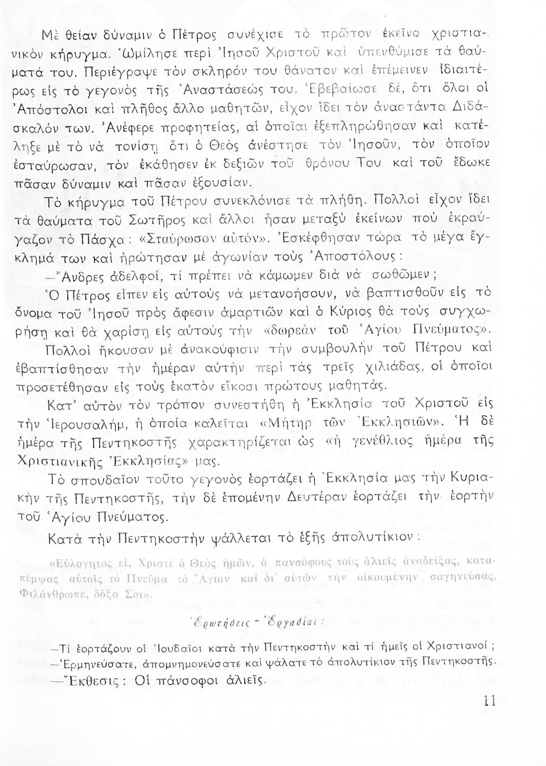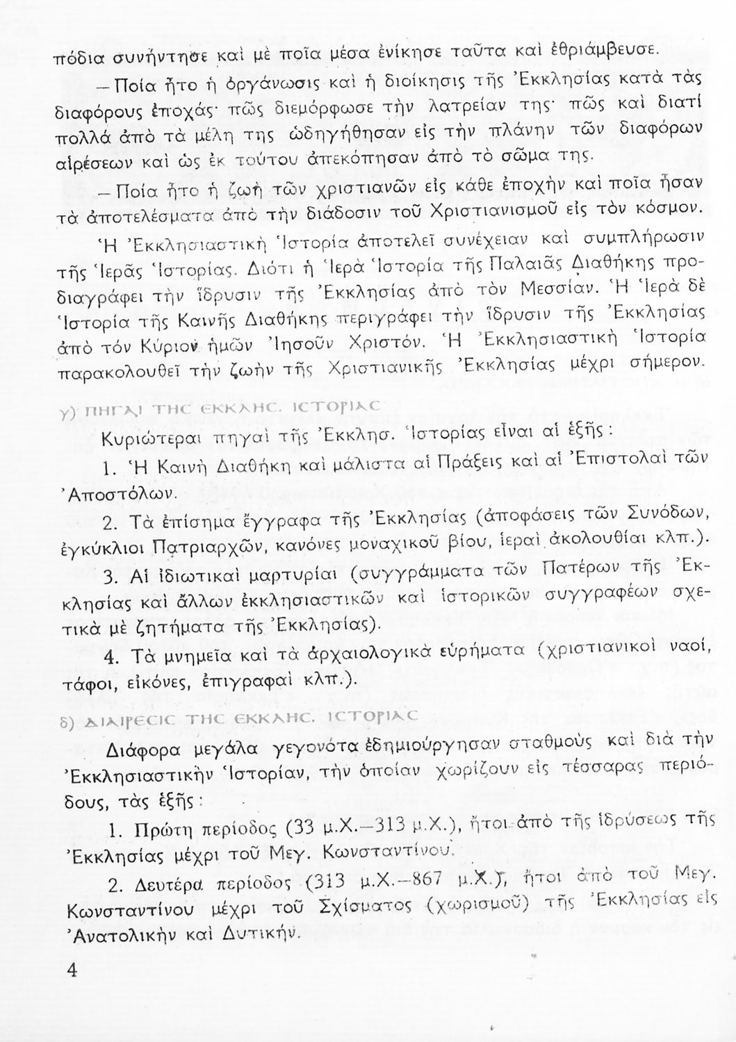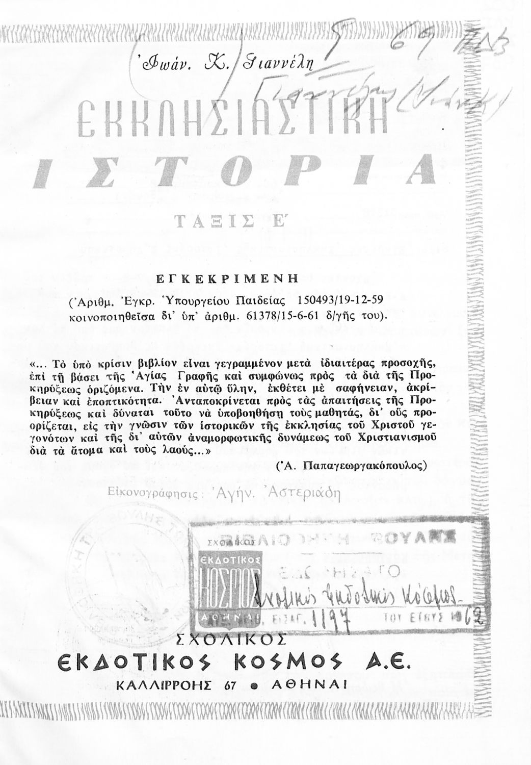 Βαθμίδα εκπαίδευσης: Πρωτοβάθμια Τάξη: Ε' Δημοτικού Μάθημα: Θρησκευτικά Γλώσσα: Απλή καθαρεύουσα Παρουσίαση περιεχομένου: Μαθητικό βοήθημα Θρησκευτικών Ε΄ Δημοτικού που αποτελεί μια ιστορική επισκόπηση της Ορθόδοξης Εκκλησίας από την ίδρυσή της μέχρι την ίδρυση της Εκκλησίας της Ελλάδας. |