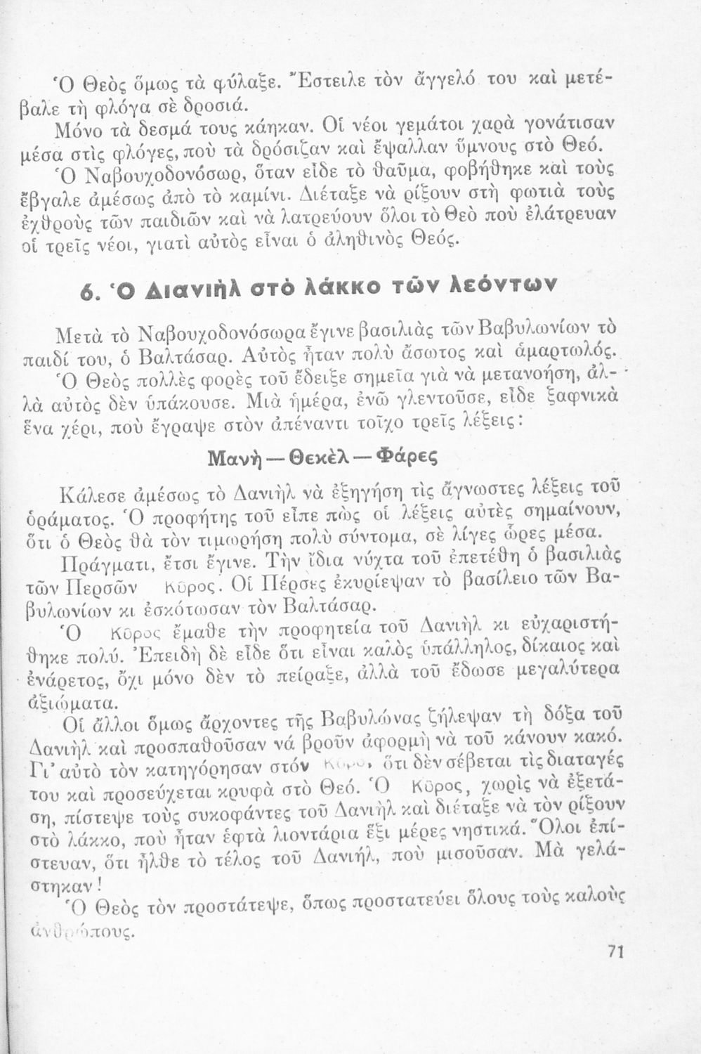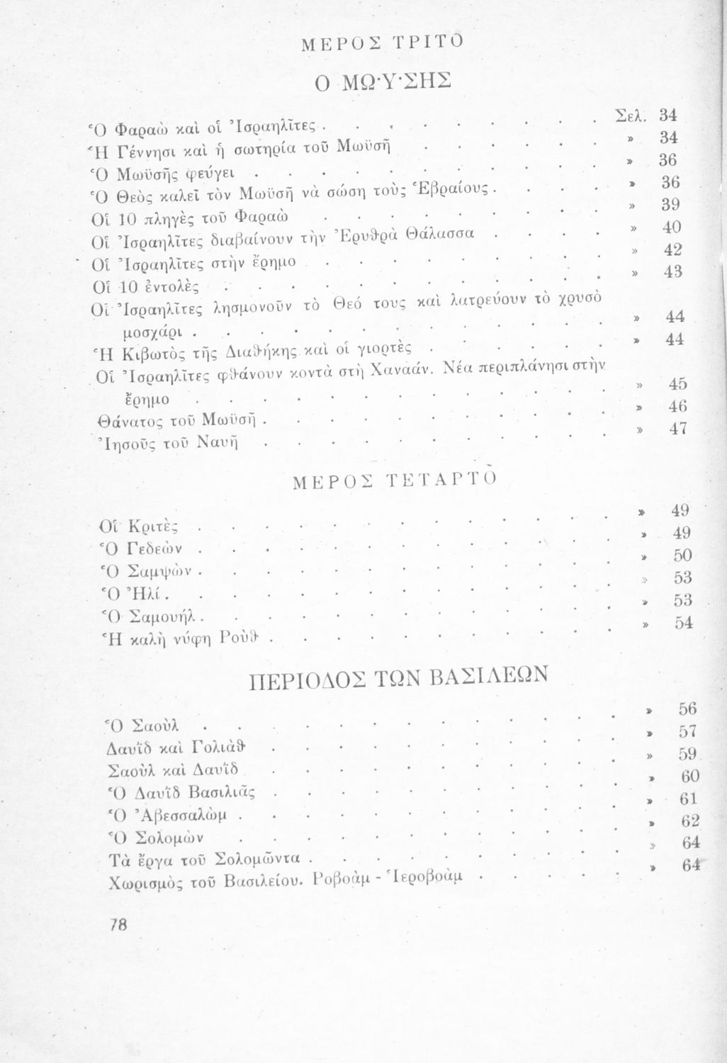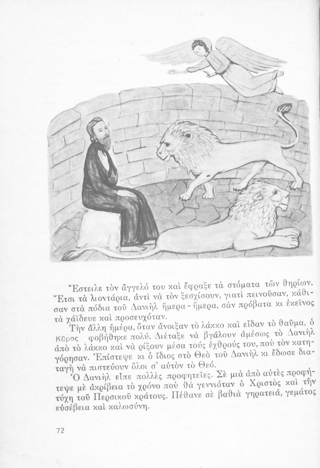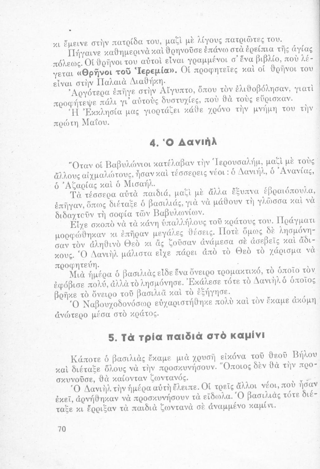 Σχολικό εγχειρίδιο Θρησκευτικών για τους μαθητές της Γ' Δημοτικού. Ενώ το βιβλίο αναφέρεται σε θέματα Παλαιάς Διαθήκης στο τέλος έχει γιορτές αγίων που έχουν σχέση με την ιστορία της Εκκλησίας.