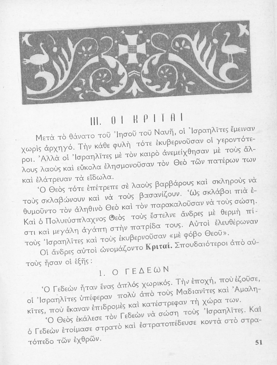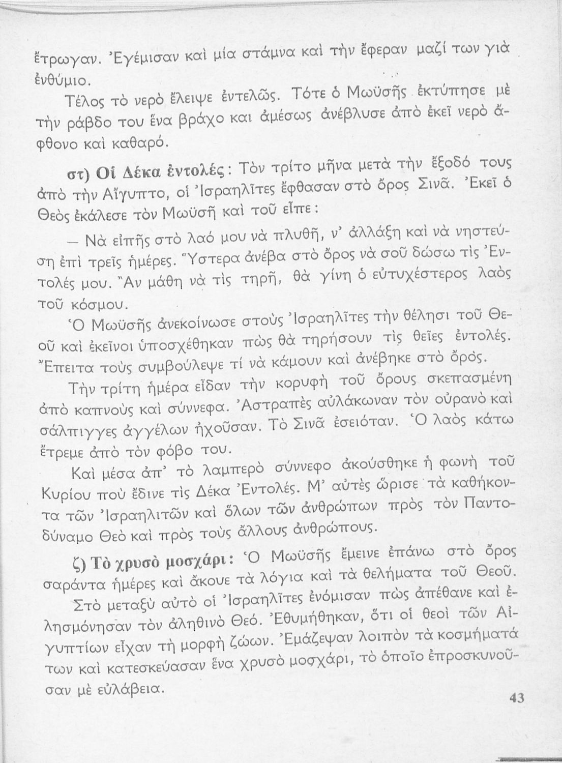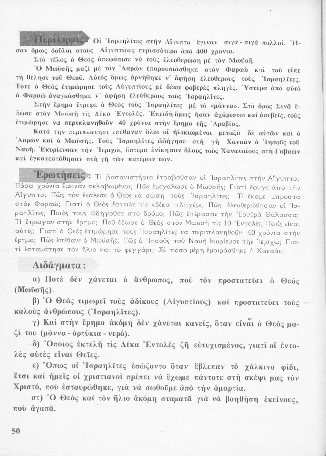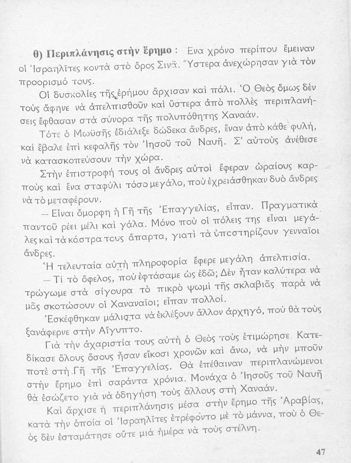 Σχολικό εγχειρίδιο για την Γ΄ Τάξη πιθανόν της Εκκλησιαστικής Γεωργικής Σχολής. Αναφέρεται στα γεγονότα της Παλαιάς Διαθήκης. Περιέχει τη δράση του Ιακώβ, του Μωυσή, μέχρι και τους προφήτες.