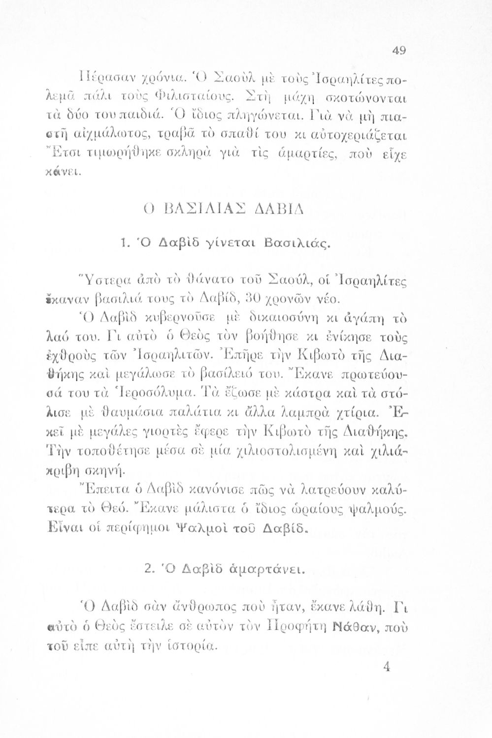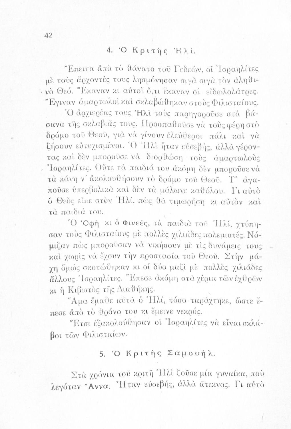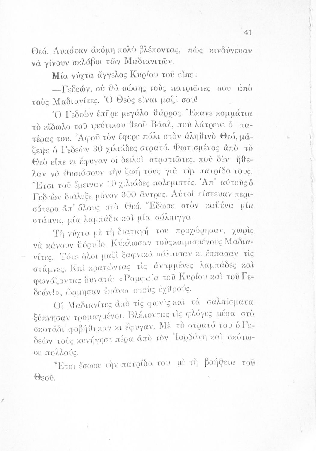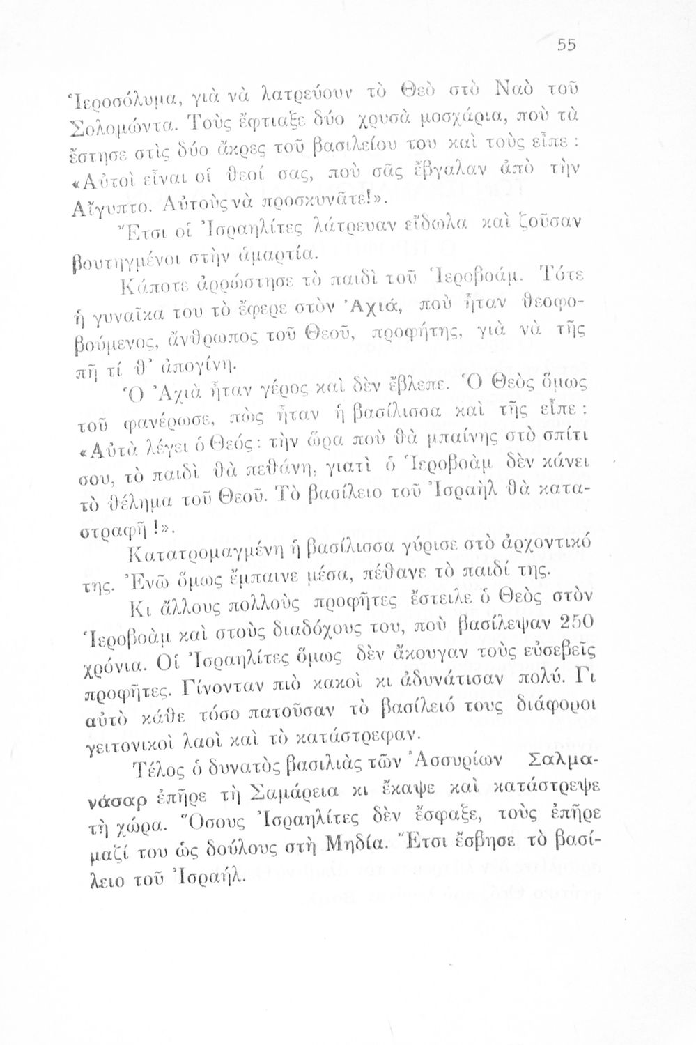 Σχολικό εγχειρίδιο για την Γ΄ Τάξη πιθανόν της Εκκλησιαστικής Γεωργικής Σχολής. Αναφέρεται στα γεγονότα της Παλαιάς Διαθήκης. Περιέχει τη δράση του Ιακώβ, του Μωυσή, μέχρι και τους προφήτες.