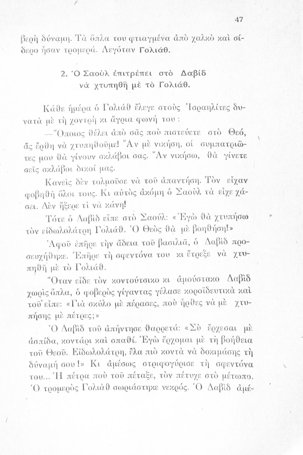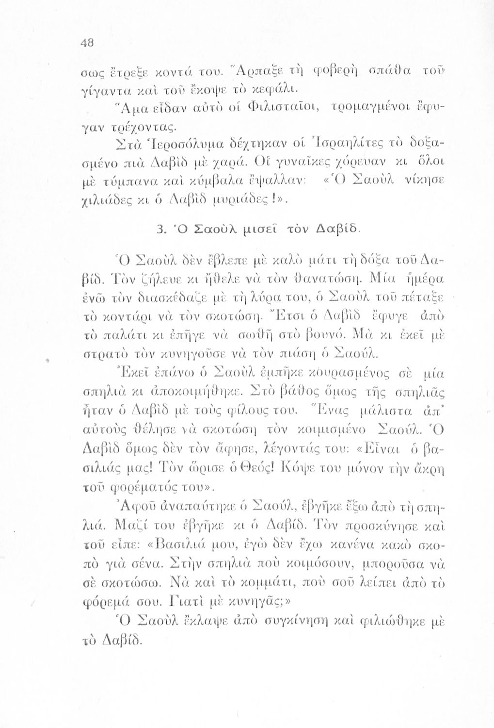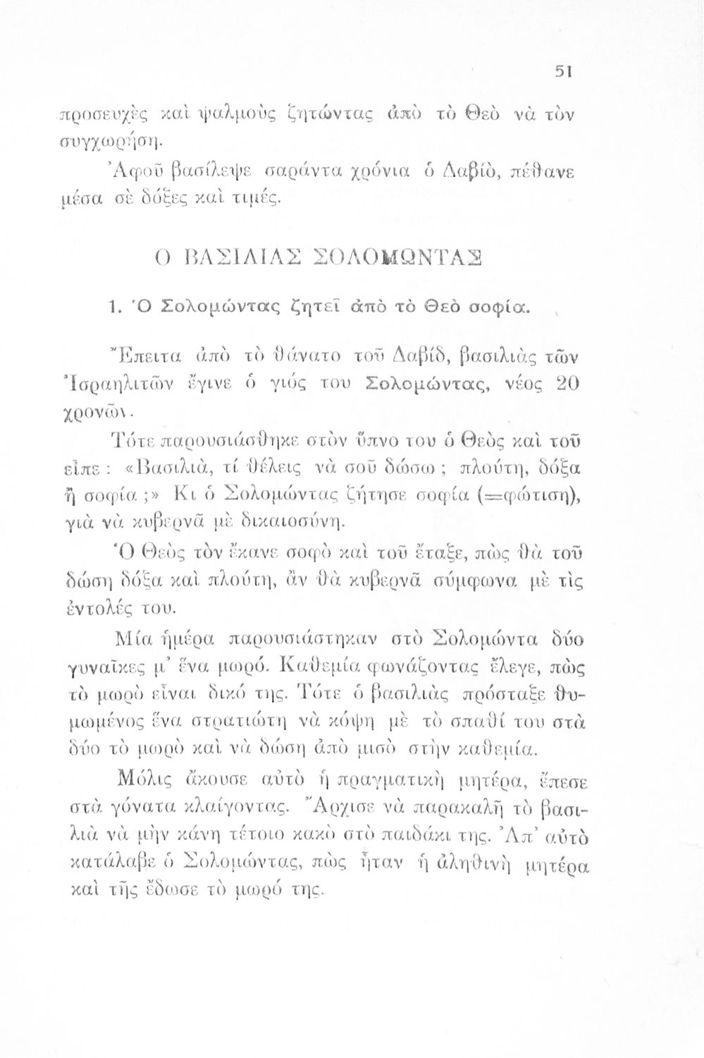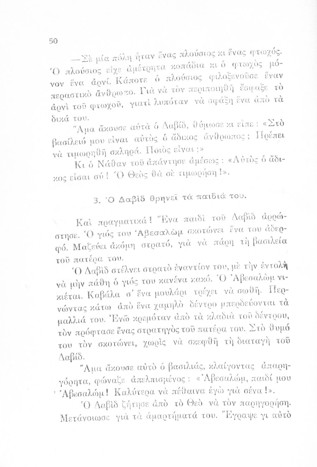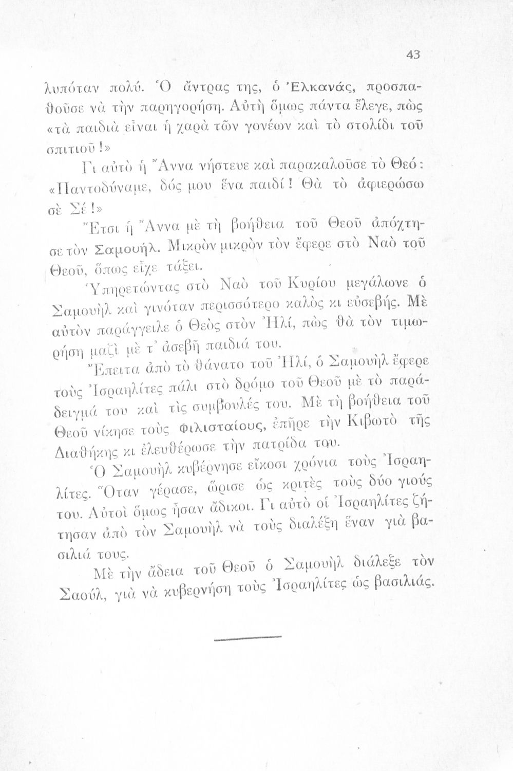 Σχολικό εγχειρίδιο για την Γ΄ Τάξη πιθανόν της Εκκλησιαστικής Γεωργικής Σχολής. Αναφέρεται στα γεγονότα της Παλαιάς Διαθήκης. Περιέχει τη δράση του Ιακώβ, του Μωυσή, μέχρι και τους προφήτες.