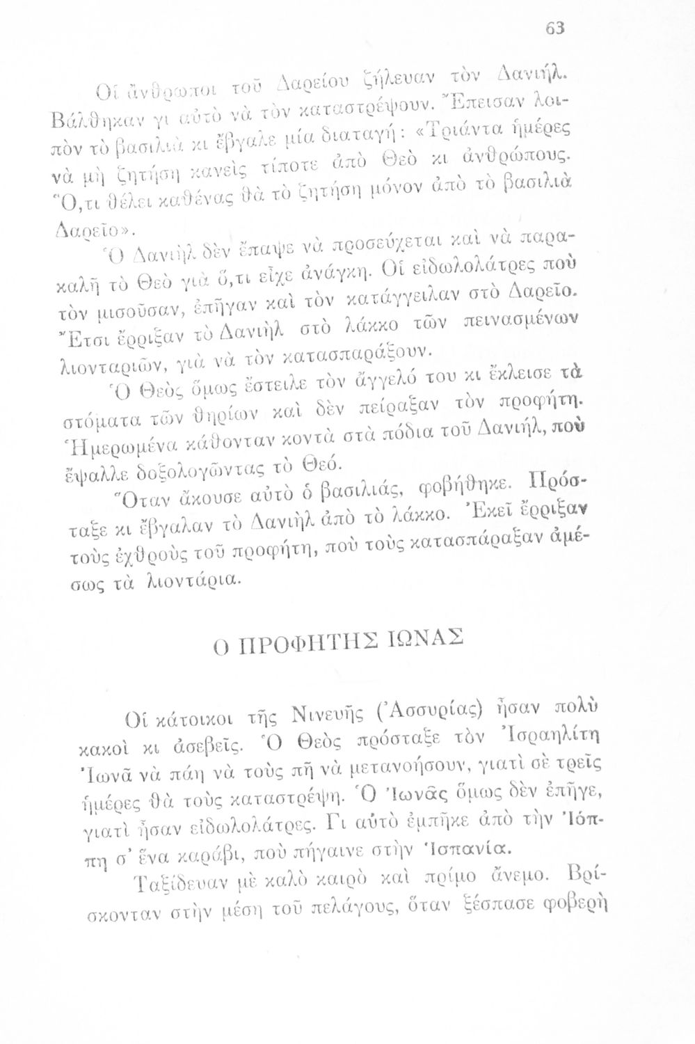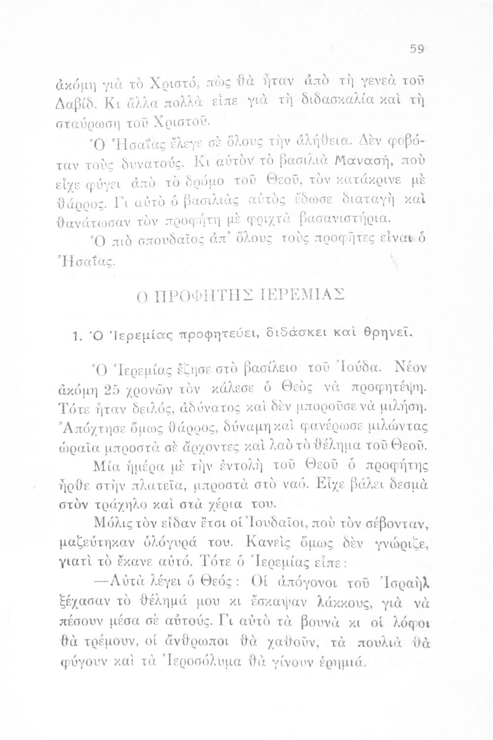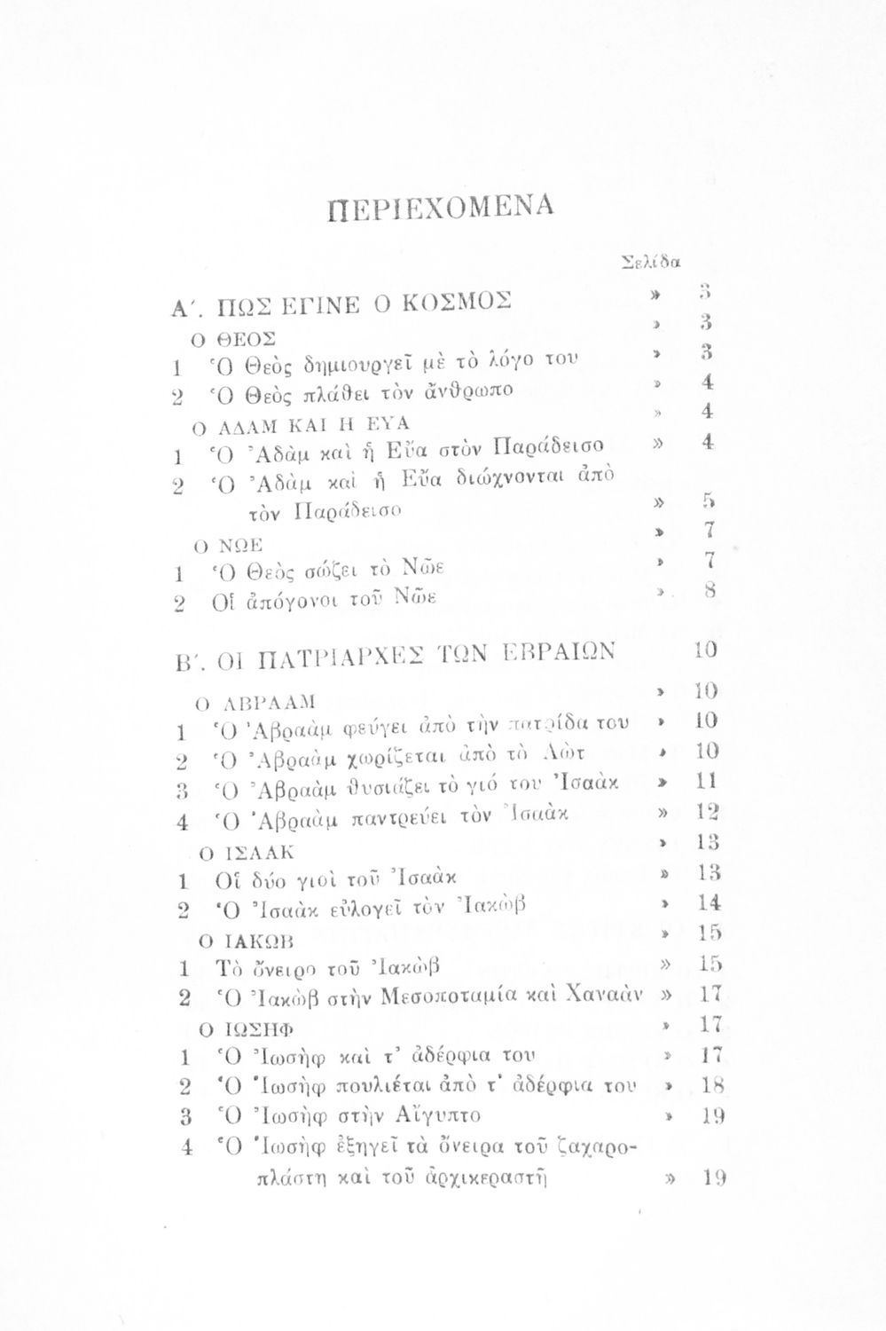 Σχολικό εγχειρίδιο για την Γ΄ Τάξη πιθανόν της Εκκλησιαστικής Γεωργικής Σχολής. Αναφέρεται στα γεγονότα της Παλαιάς Διαθήκης. Περιέχει τη δράση του Ιακώβ, του Μωυσή, μέχρι και τους προφήτες.