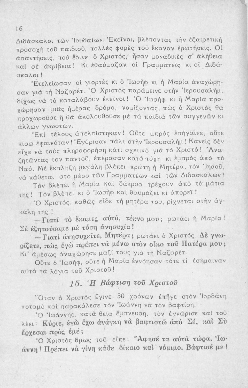 Βαθμίδα εκπαίδευσης: Πρωτοβάθμια Τάξη: Δ' Δημοτικού Μάθημα: Θρησκευτικά Γλώσσα: Απλή καθαρεύουσα Παρουσίαση περιεχομένου: Μαθητικό βοήθημα της Δ΄ Δημοτικού για το μάθημα των Θρησκευτικών. Αναφέρεται στην καινή διαθήκη στη ζωή και το έργο του Χριστού. Τα πάθη, τη σταύρωση και την ανάσταση. |