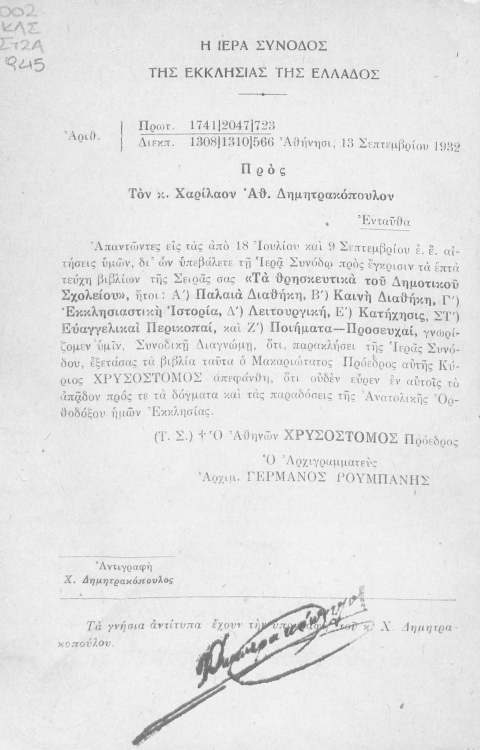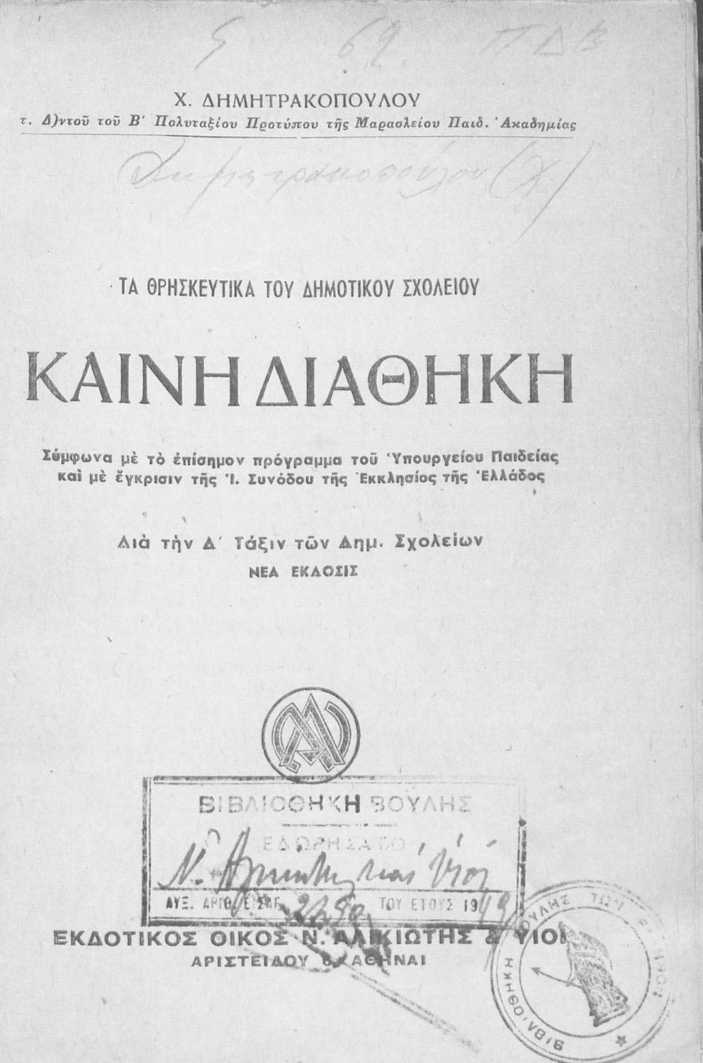 Εκδότης: Ν. Αλικιώτης Έτος έκδοσης: 194 Τόπος έκδοσης: Αθήνα Υπουργική απόφαση / Σύμβαση: 1741, 2047, 723/13-9-1932 Έτος έγκρισης: 1932 |