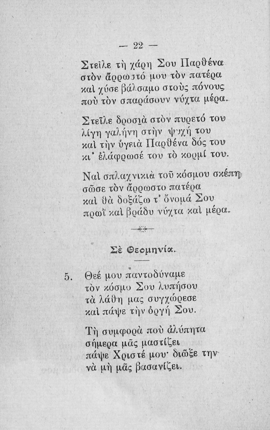 Παρουσίαση περιεχομένου: Το σύγγραμμα ήταν υμνολόγιο για το μάθημα των Θρησκευτικών. Περιέχει ύμνους και προσευχές για να ψάλουν οι μαθητές του Δημοτικού.