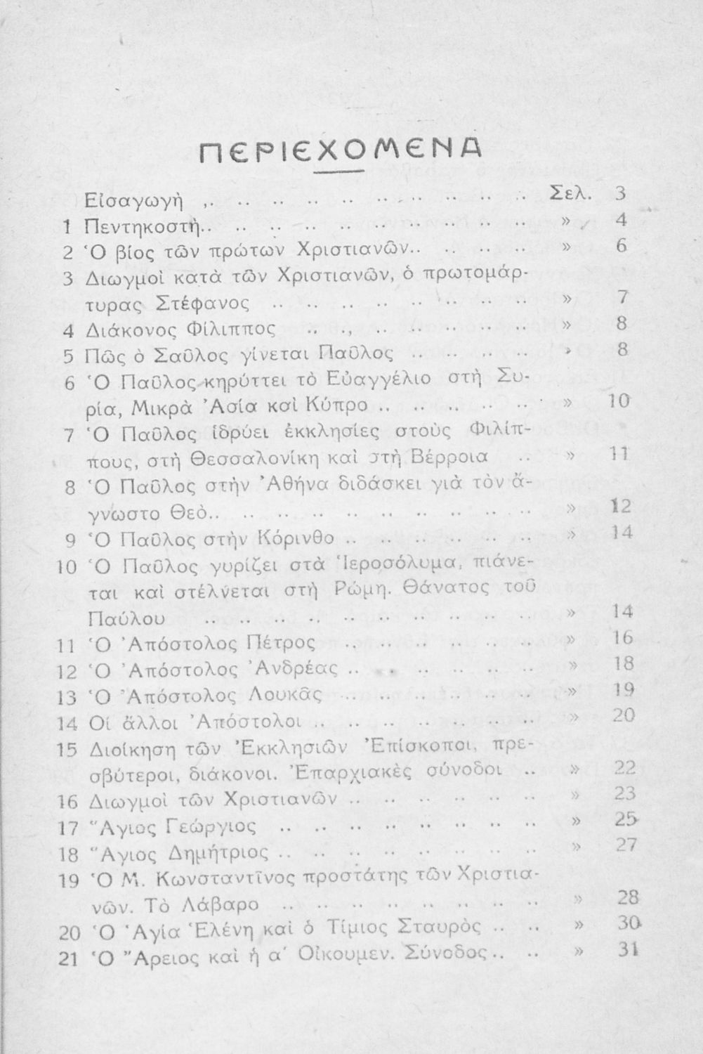 Βαθμίδα εκπαίδευσης: Πρωτοβάθμια Τάξη: Ε' Δημοτικού Μάθημα: Θρησκευτικά Γλώσσα: Απλή καθαρεύουσα Παρουσίαση περιεχομένου: Μαθητικό βοήθημα Θρησκευτικών Ε΄ Δημοτικού που αποτελεί μια ιστορική επισκόπηση της Ορθόδοξης Εκκλησίας από την ίδρυσή της μέχρι την ίδρυση της Εκκλησίας της Ελλάδας. |