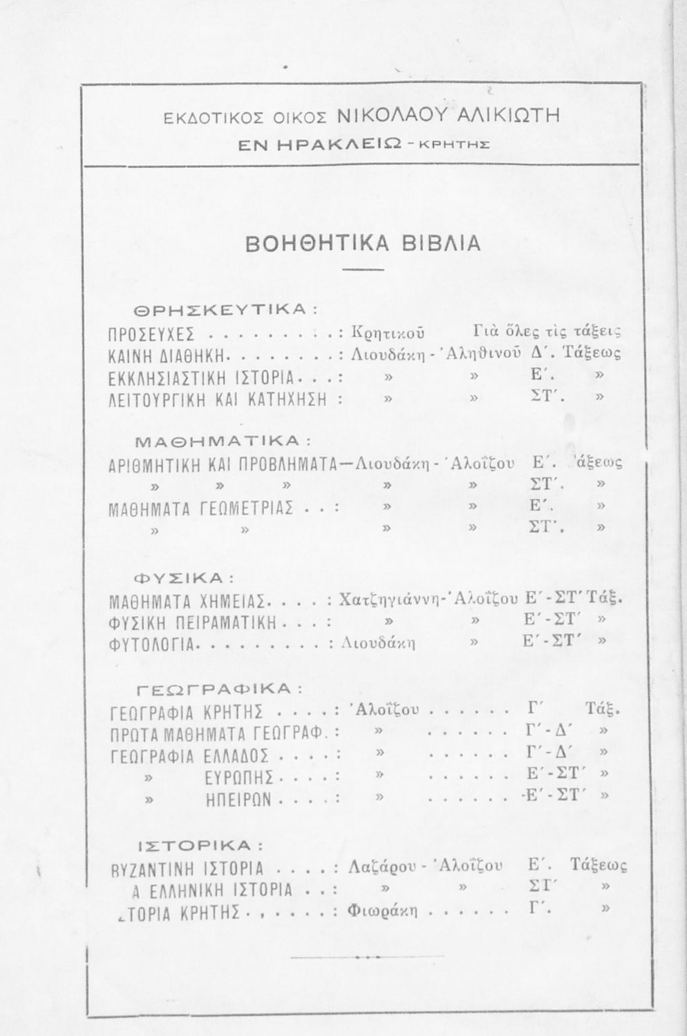 Εκδότης: Νικ. Αλικιώτης Τόπος έκδοσης: Κρήτη |