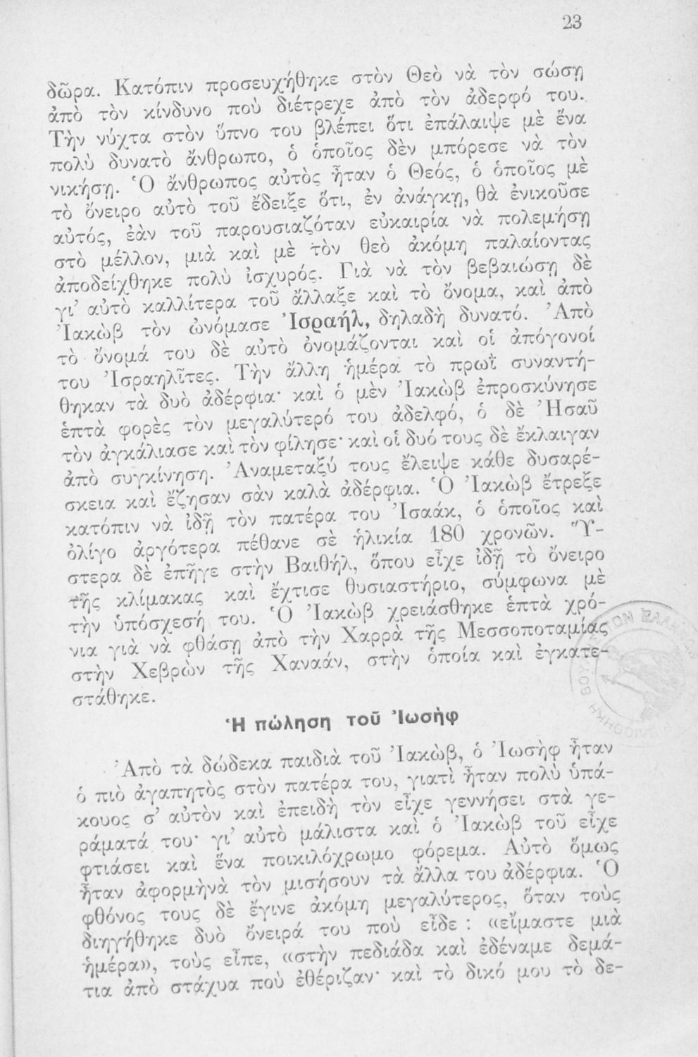 Σχολικό εγχειρίδιο Θρησκευτικών Α΄ Ελληνικού Σχολείου που συνιστά μία εξιστόρηση της Παλαιάς Διαθήκης από τη δημιουργία του κόσμου ως τους Μακκαβαίους.