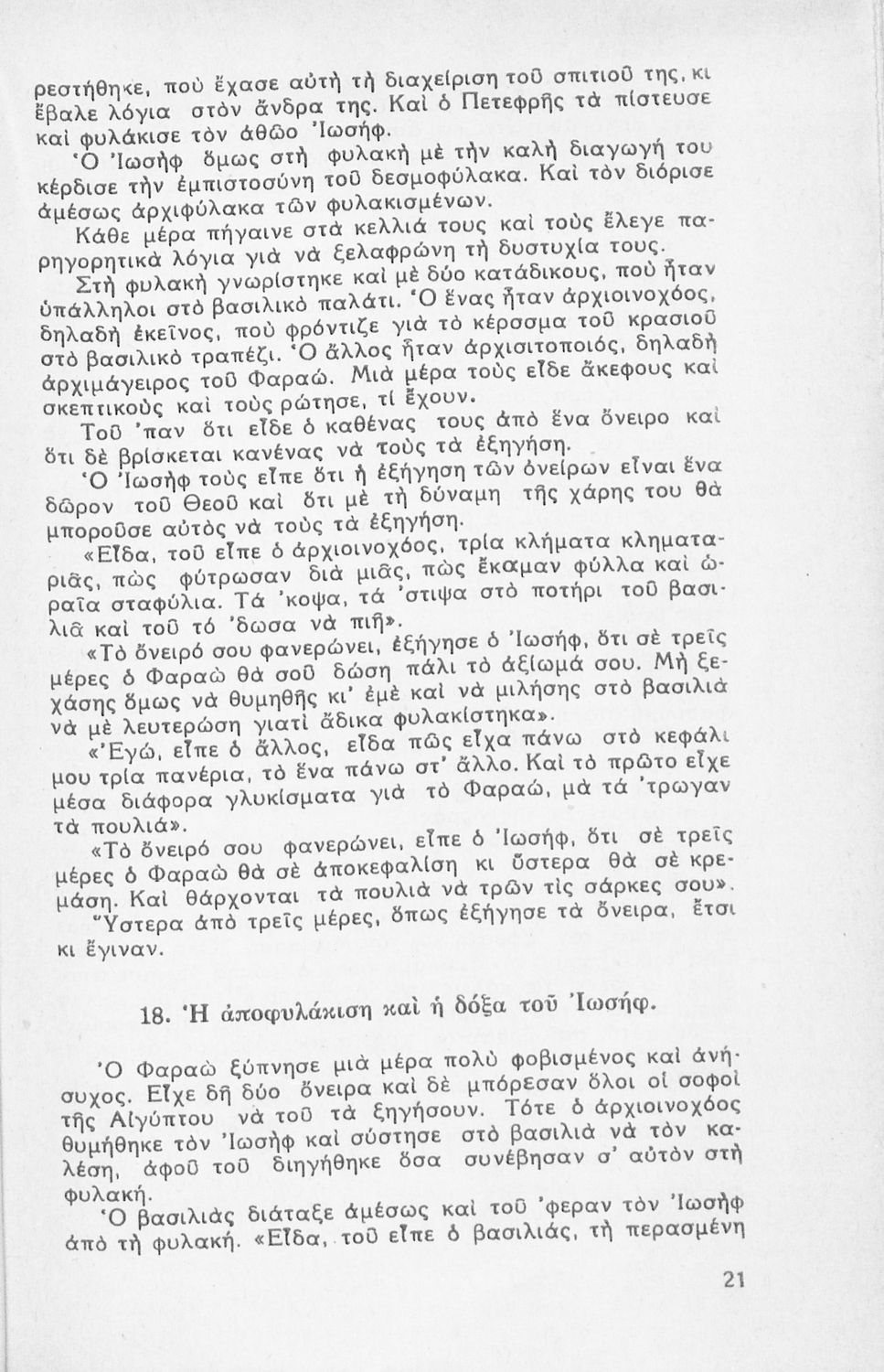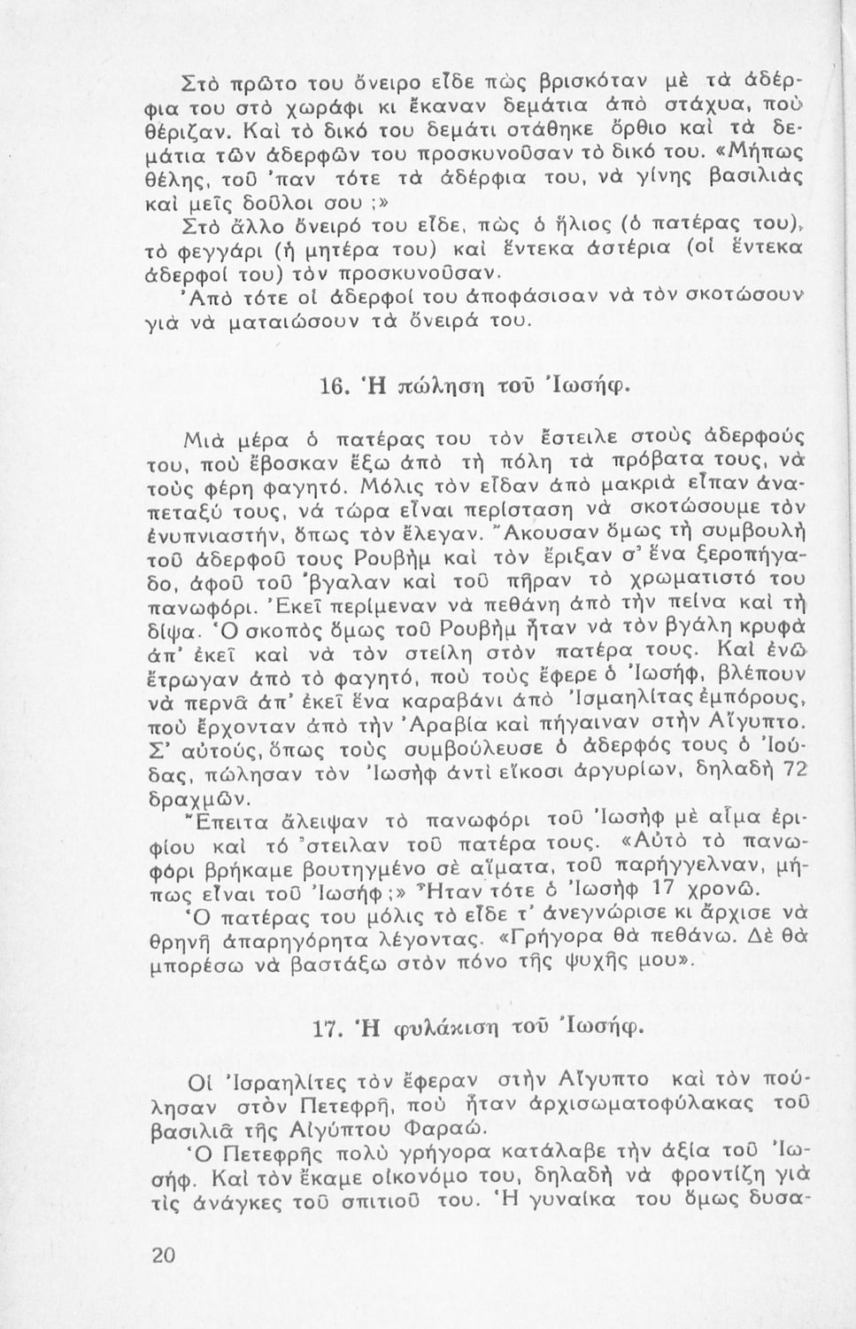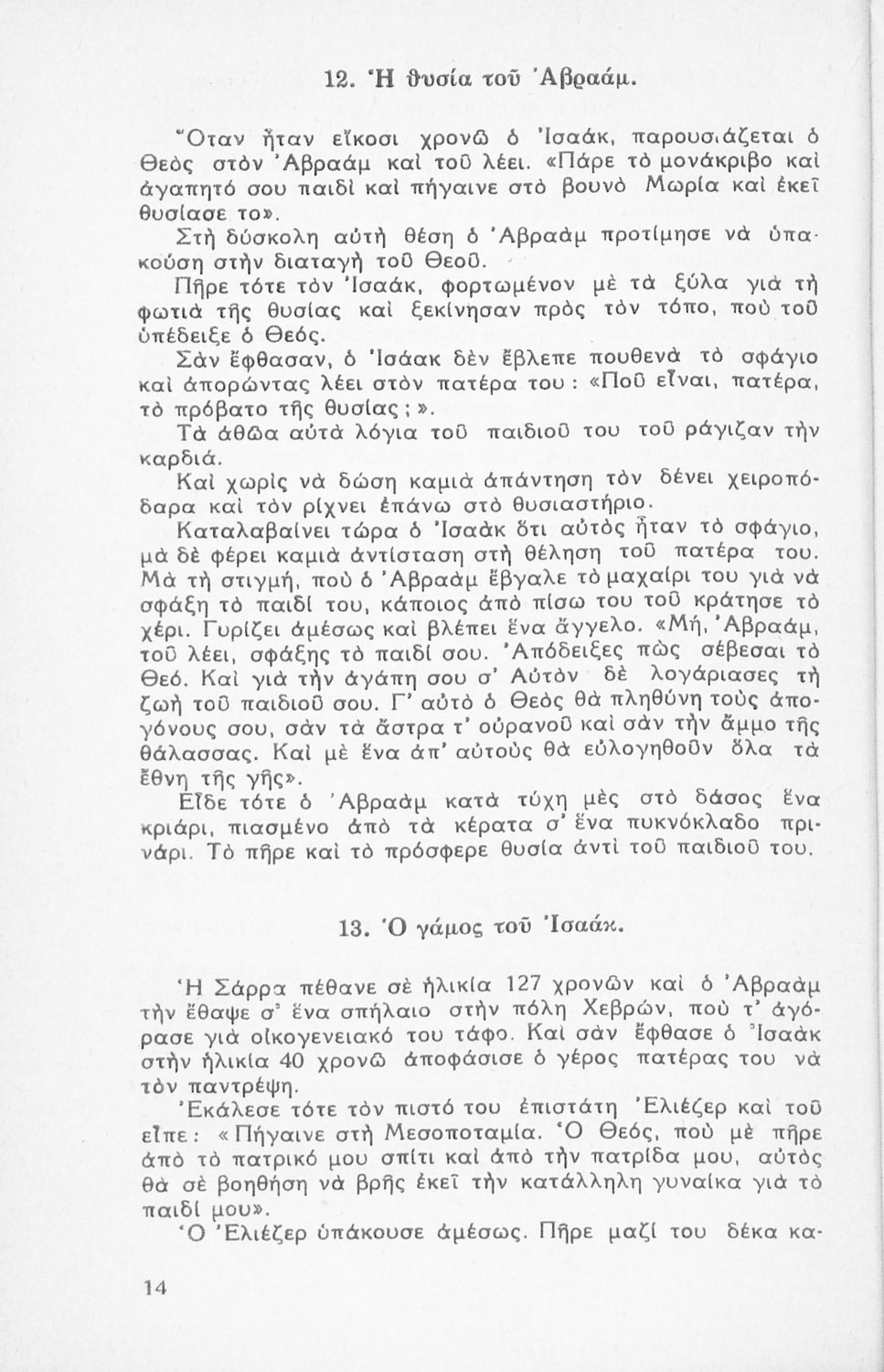 Σχολικό εγχειρίδιο της Γ΄ Δημοτικού για το μάθημα των Θρησκευτικών. Αναφέρεται στα γεγονότα της παλαιάς διαθήκης. Στα χρόνια του Αβραάμ, Ισαάκ, Ιωσήφ και του Μωυσή. Επίσης, αναφέρεται στους προφήτες.