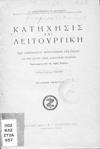 Βαθμίδα εκπαίδευσης: Πρωτοβάθμια Τάξη: ΣΤ' Δημοτικού Μάθημα: Θρησκευτικά Γλώσσα: Απλή καθαρεύουσα Παρουσίαση περιεχομένου: Σχολικό εγχειρίδιο Θρησκευτικών ΣΤ΄ Δημοτικού που αναλύει την έννοια της κατήχησης στις διάφορες θρησκείες με έμφαση στο ορθόδοξο χριστιανικό δόγμα, το οποίο εξετάζει από δογματική και ηθική σκοπιά. Περιλαμβάνει και στοιχεία λειτουργικής της Ορθόδοξης Εκκλησίας. |