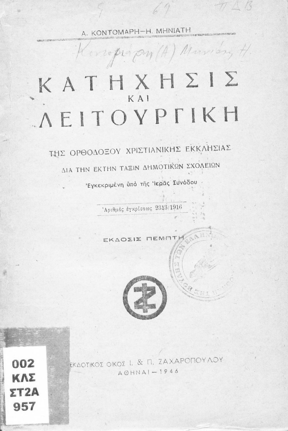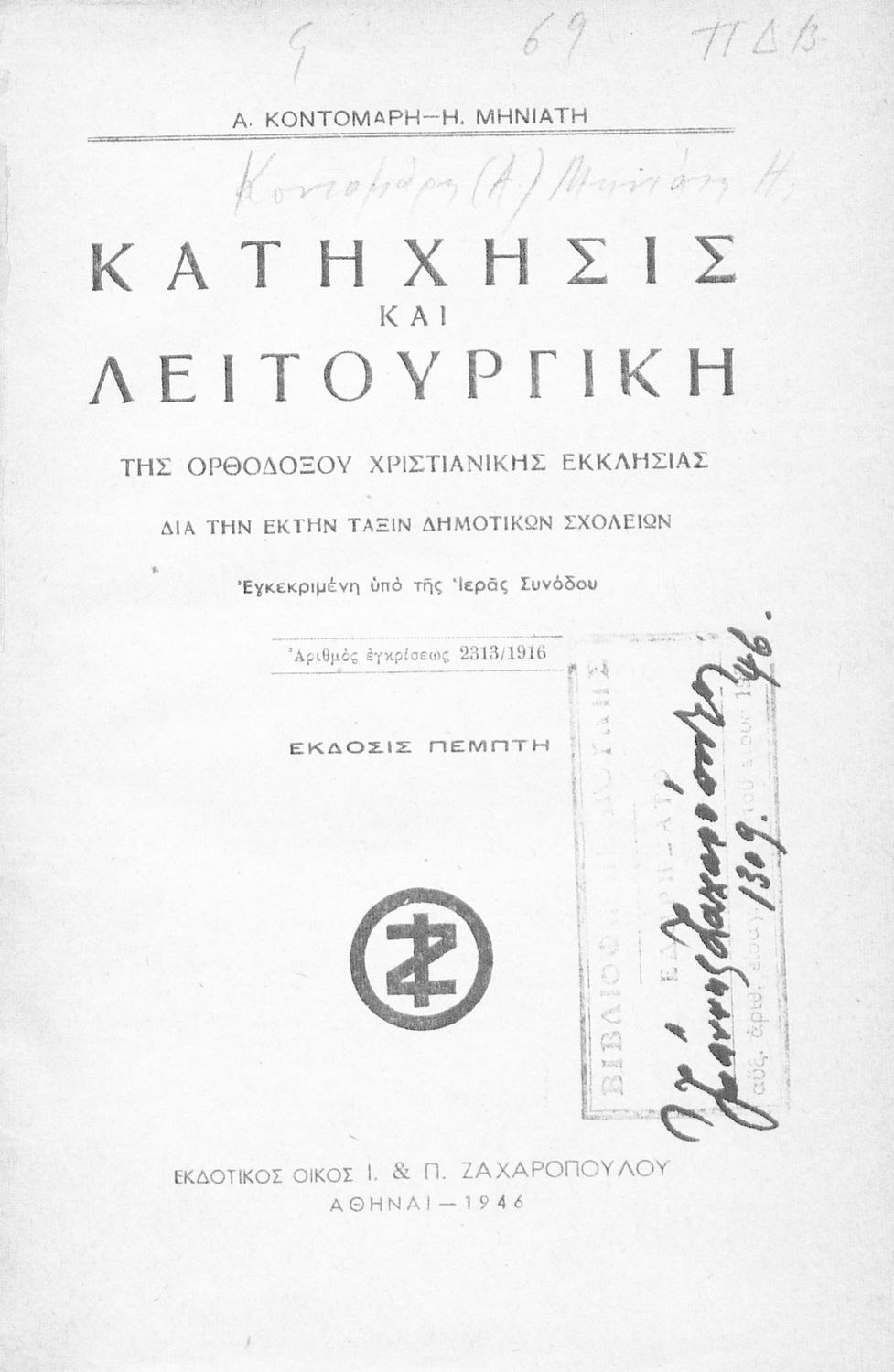 Εκδότης: Ι. Π Ζαχαρόπουλος Έτος έκδοσης: 1946 Τόπος έκδοσης: Αθήνα Έκδοση: 5η |