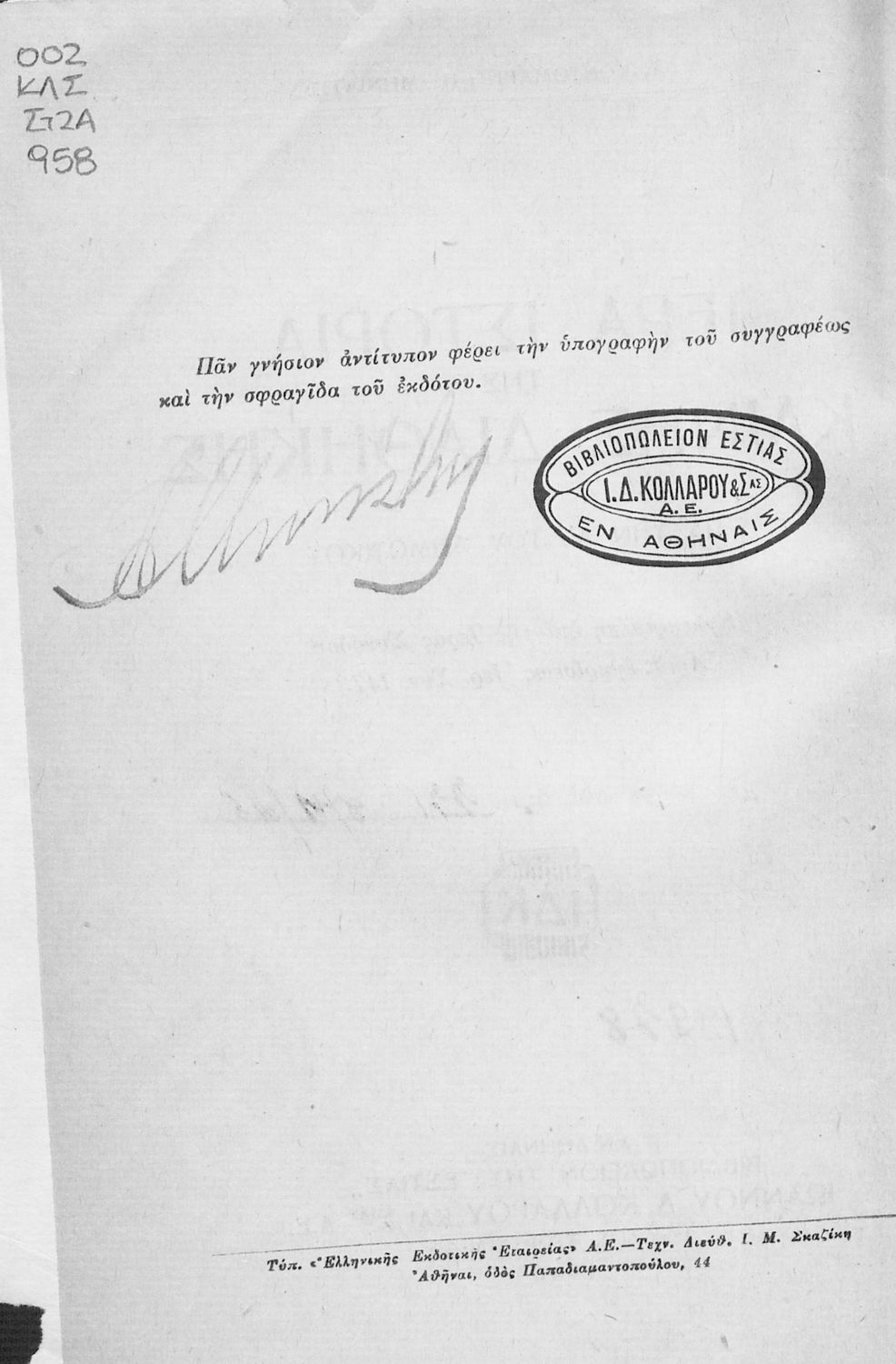 Εκδότης: Ιωάννης Δ. Κολλάρος και ΣΙΑ, Βιβλιοπωλείο της "Εστίας" Έτος έκδοσης: 1946 Τόπος έκδοσης: Αθήνα |