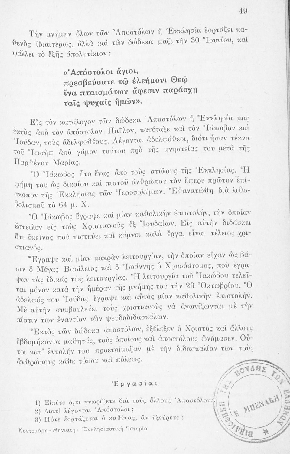 Τίτλος: Εκκλησιαστική ιστορία δια τους μαθητάς της Ε΄ τάξεως του Δημοτικού Σχολείου