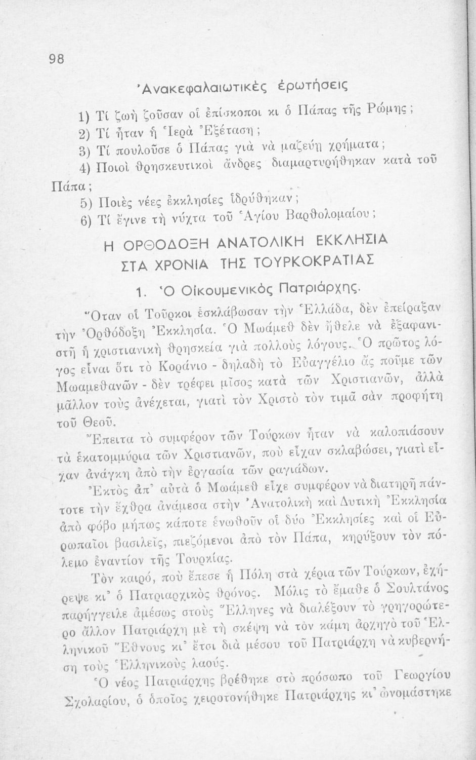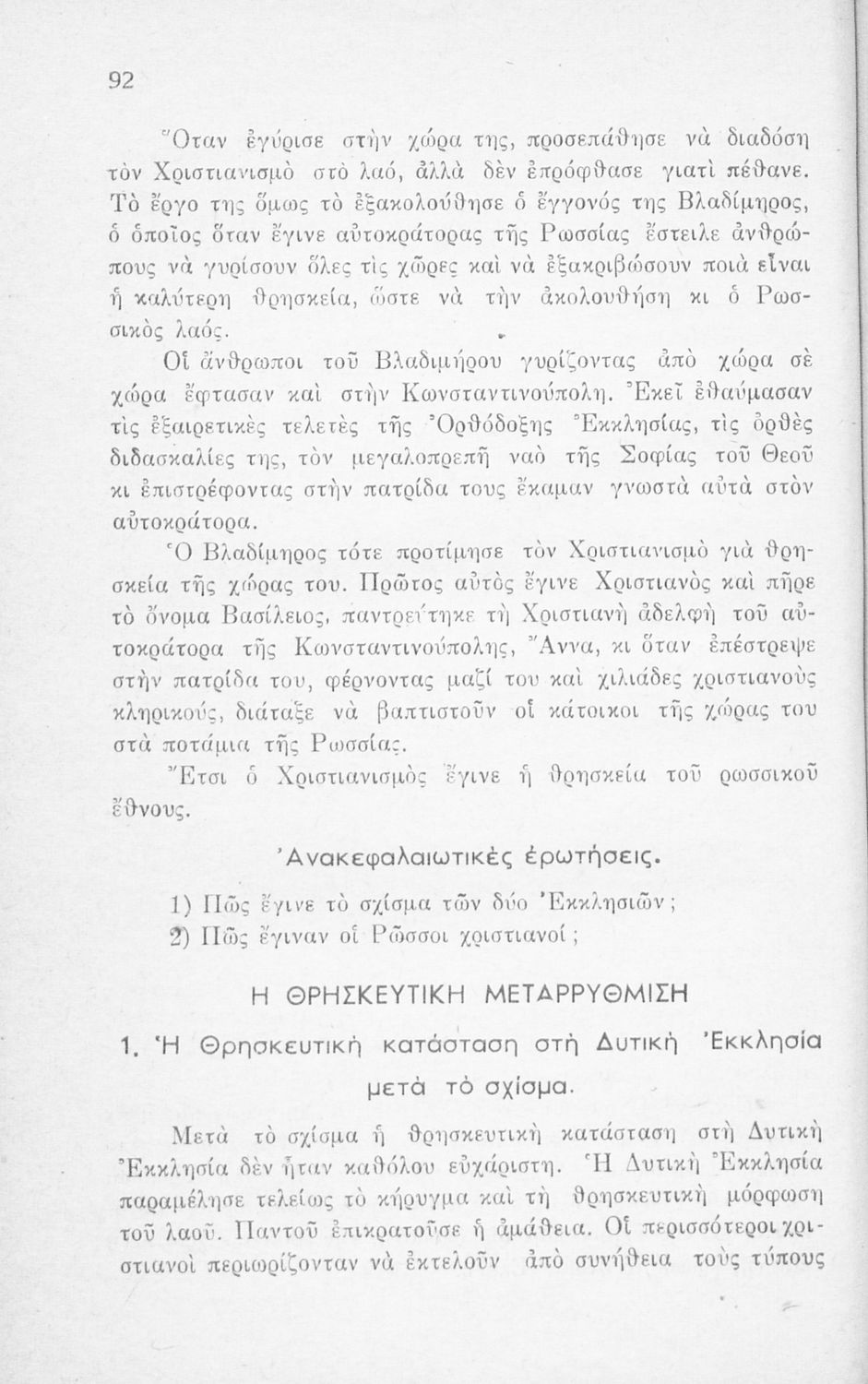 Σχολικό εγχειρίδιο Θρησκευτικών Ε΄ Δημοτικού που περιέχει την ιστορία της Ορθόδοξης Εκκλησίας από την ίδρυσή της μέχρι την δημιουργία της Εκκλησίας της Ελλάδας.
