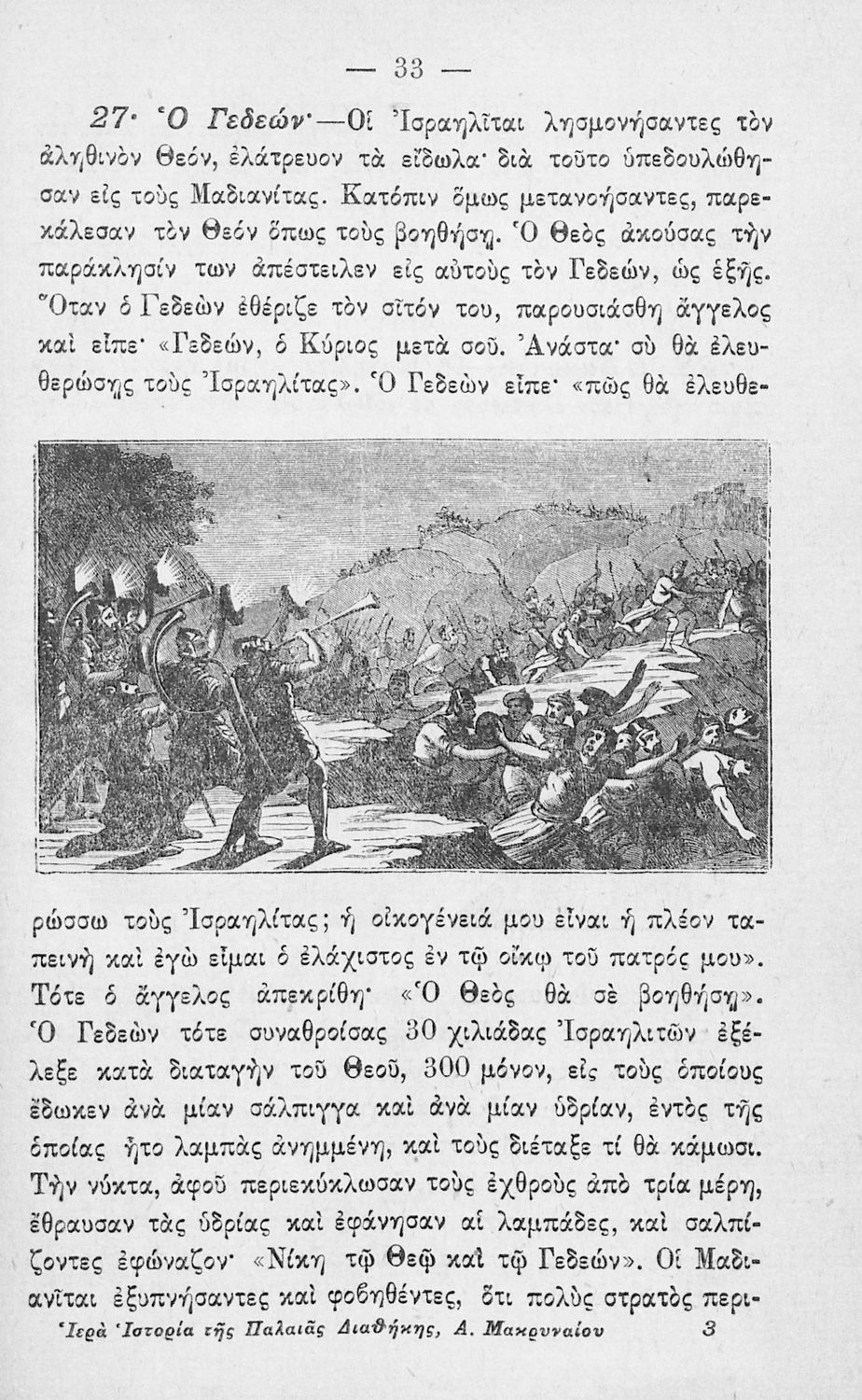 Σχολικό εγχειρίδιο Θρησκευτικών Δημοτικού που συνιστά μία εξιστόρηση της Παλαιάς Διαθήκης από τη δημιουργία του κόσμου ως την υποταγή των Εβραίων στους Ρωμαίους.