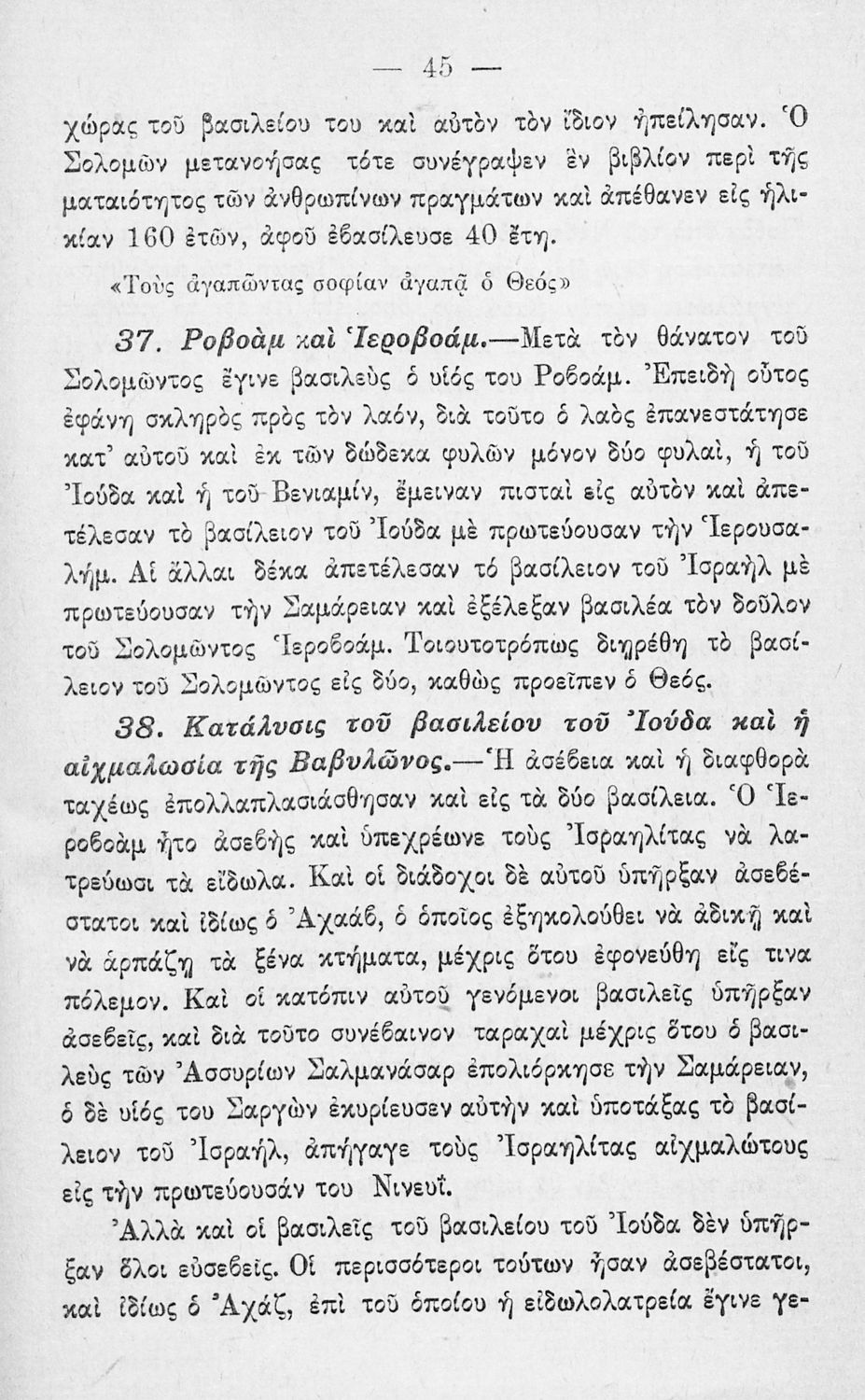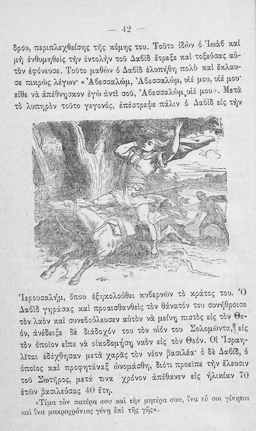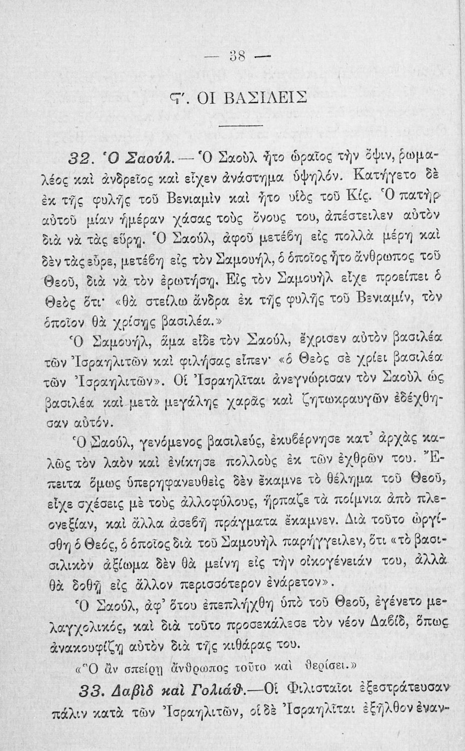 Σχολικό εγχειρίδιο Θρησκευτικών Δημοτικού που συνιστά μία εξιστόρηση της Παλαιάς Διαθήκης από τη δημιουργία του κόσμου ως την υποταγή των Εβραίων στους Ρωμαίους.