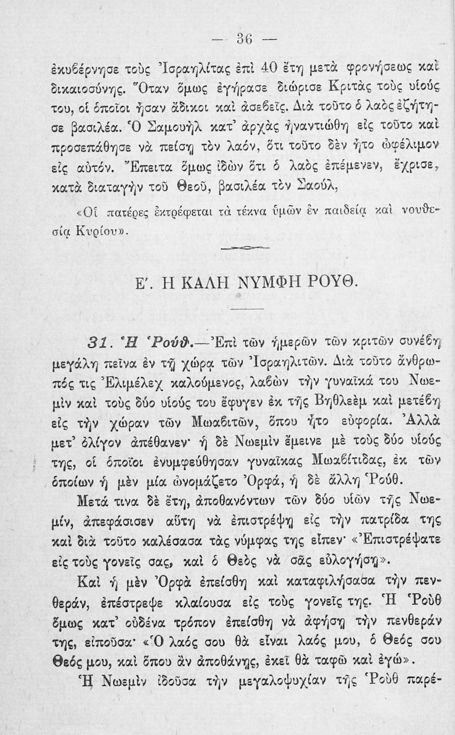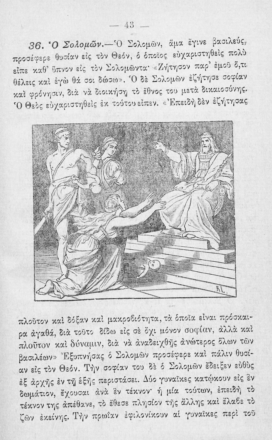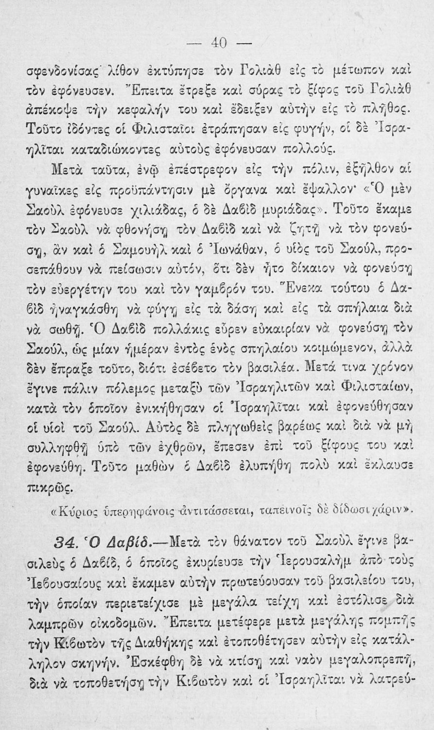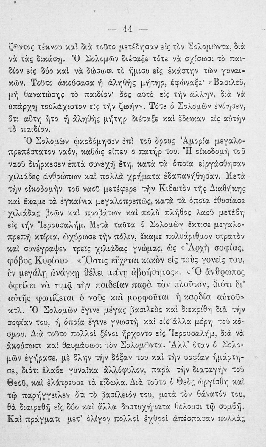 Σχολικό εγχειρίδιο Θρησκευτικών Δημοτικού που συνιστά μία εξιστόρηση της Παλαιάς Διαθήκης από τη δημιουργία του κόσμου ως την υποταγή των Εβραίων στους Ρωμαίους.