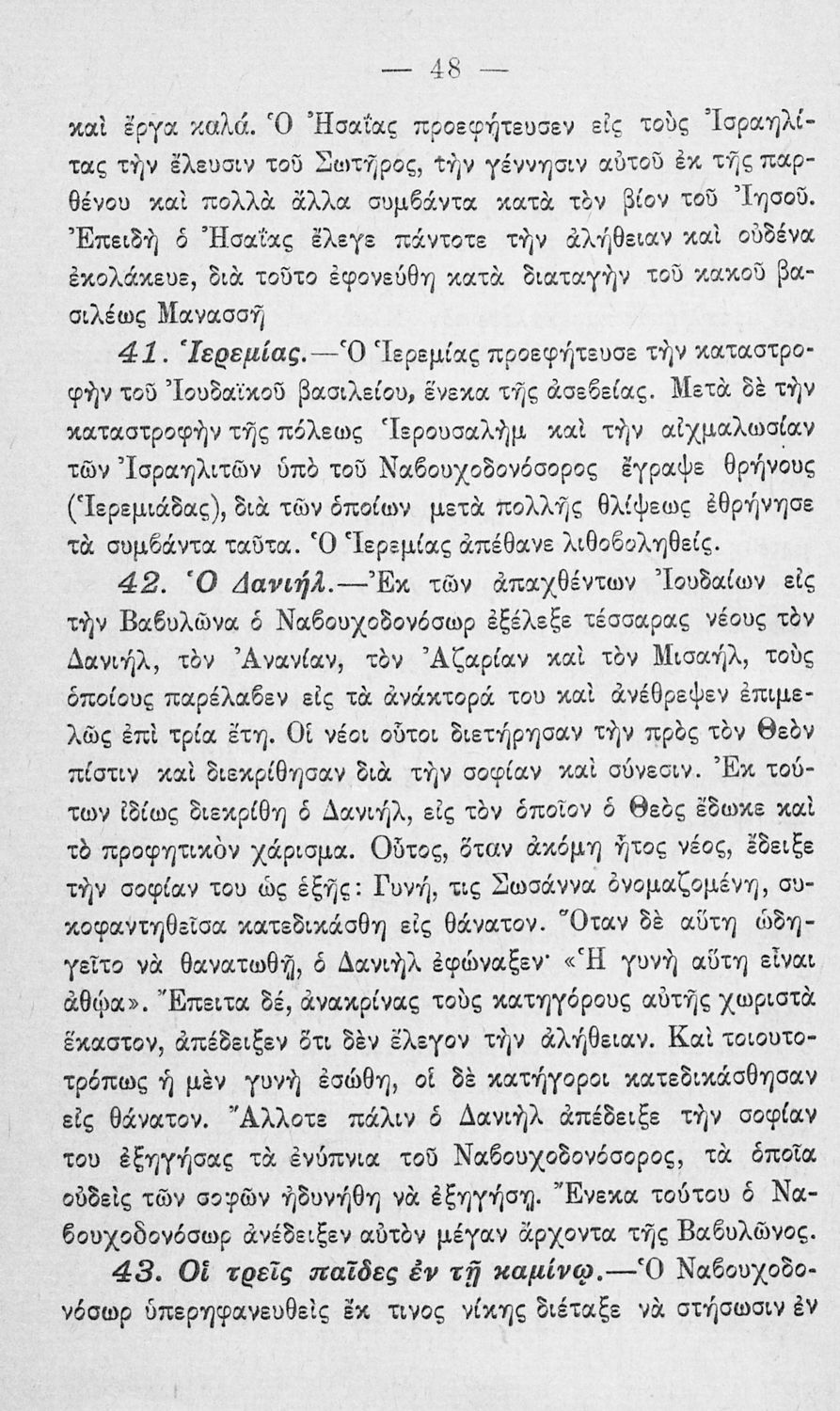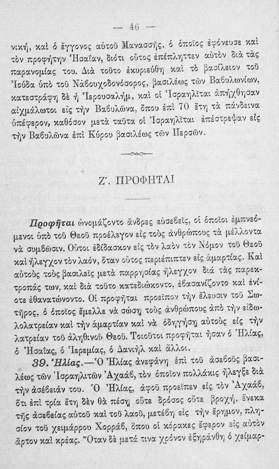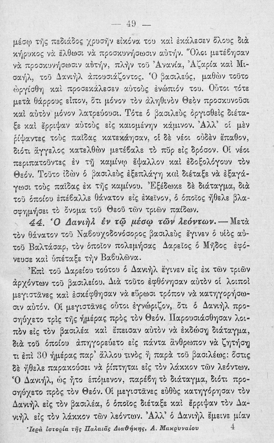 Βαθμίδα εκπαίδευσης: Πρωτοβάθμια Μάθημα: Θρησκευτικά Γλώσσα: Καθαρεύουσα Παρουσίαση περιεχομένου: Σχολικό εγχειρίδιο Θρησκευτικών Δημοτικού που συνιστά μία εξιστόρηση της Παλαιάς Διαθήκης από τη δημιουργία του κόσμου ως την υποταγή των Εβραίων στους Ρωμαίους. |