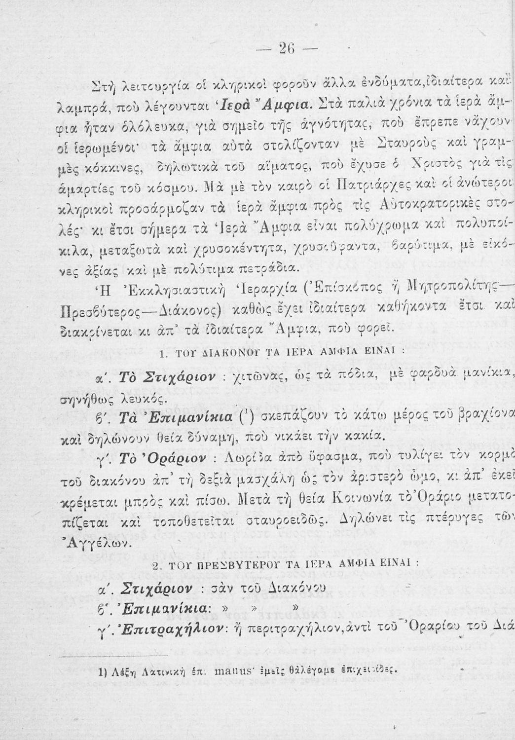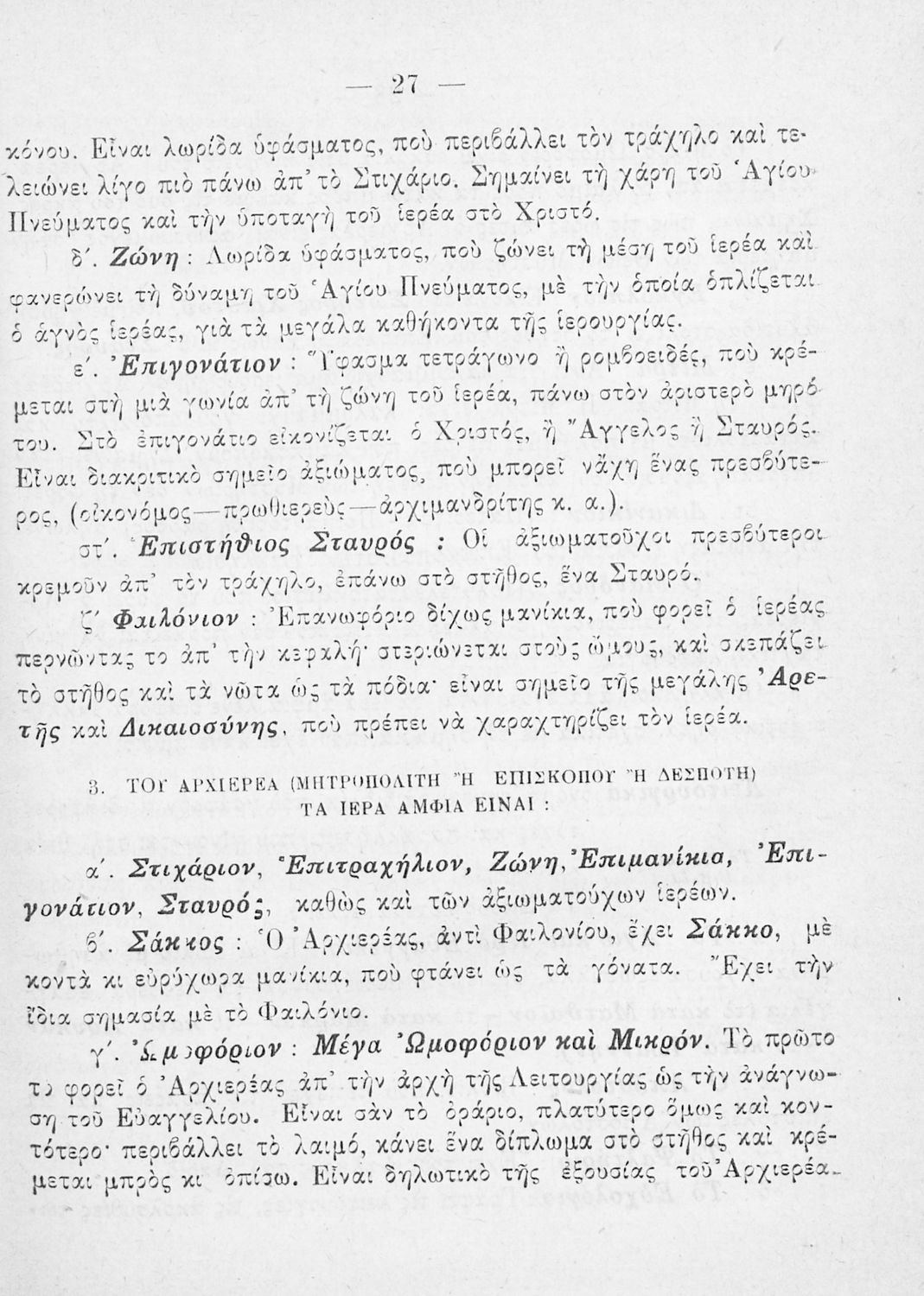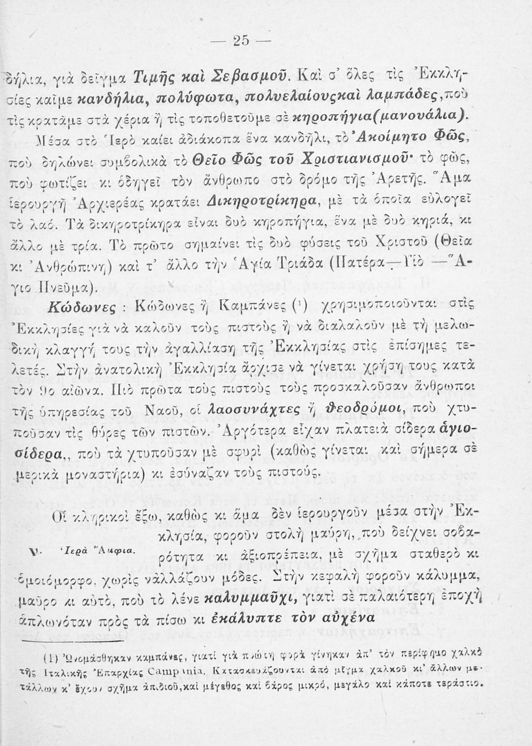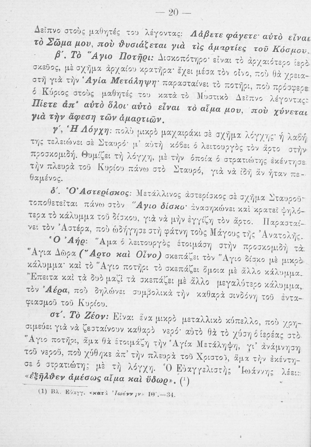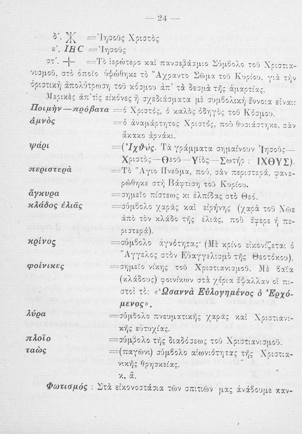 Παρουσίαση περιεχομένου: Το σύγγραμμα ήταν σχολικό εγχειρίδιο για το μαθήματα των Θρησκευτικών στο Δημοτικό. Περιγράφει σημαντικά γεγονότα της θρησκευτικής ζωής και μετά ασχολείται με τη λειτουργική εξετάζοντας κάθε τι που έχει σχέση με την πνευματική λατρεία του θεού. Επίσης, διαθέτει παράρτημα με τους βίους των Αγίων.