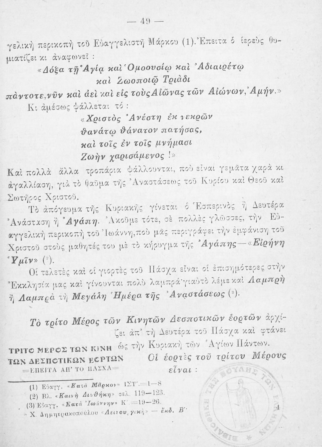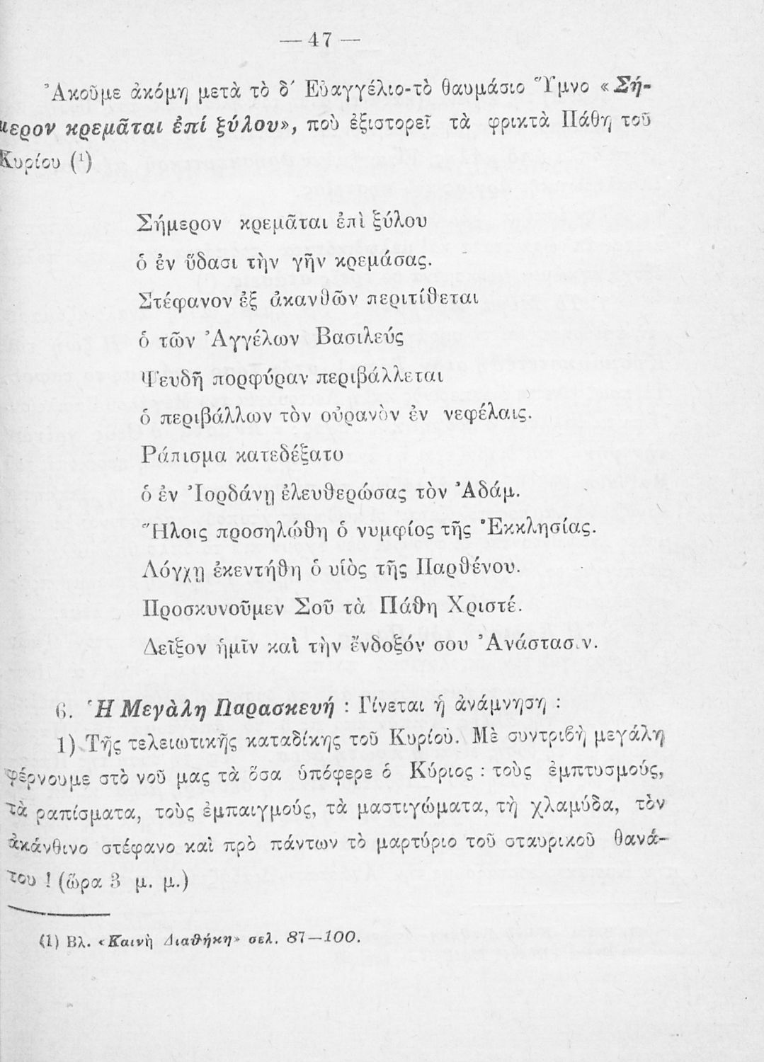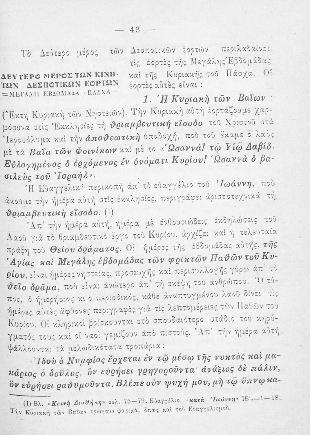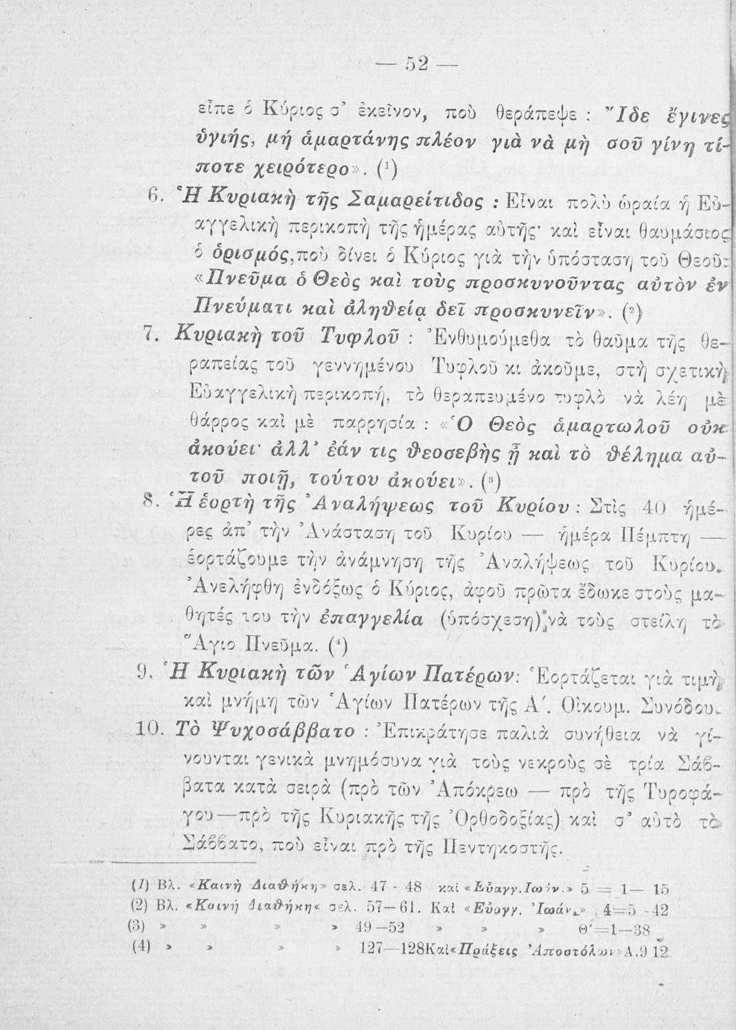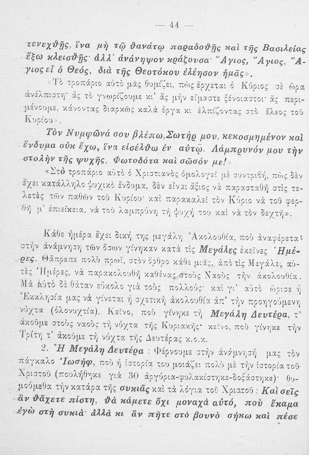 520 ## _aΤο σύγγραμμα ήταν σχολικό εγχειρίδιο για το μαθήματα των Θρησκευτικών στο Δημοτικό. Περιγράφει σημαντικά γεγονότα της θρησκευτικής ζωής και μετά ασχολείται με τη λειτουργική εξετάζοντας κάθε τι που έχει σχέση με την πνευματική λατρεία του θεού. Επίσης, διαθέτει παράρτημα με τους βίους των Αγίων.
