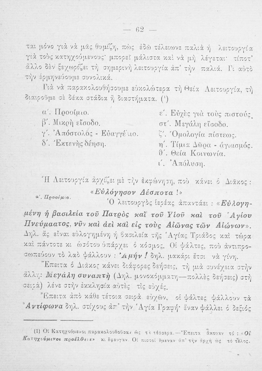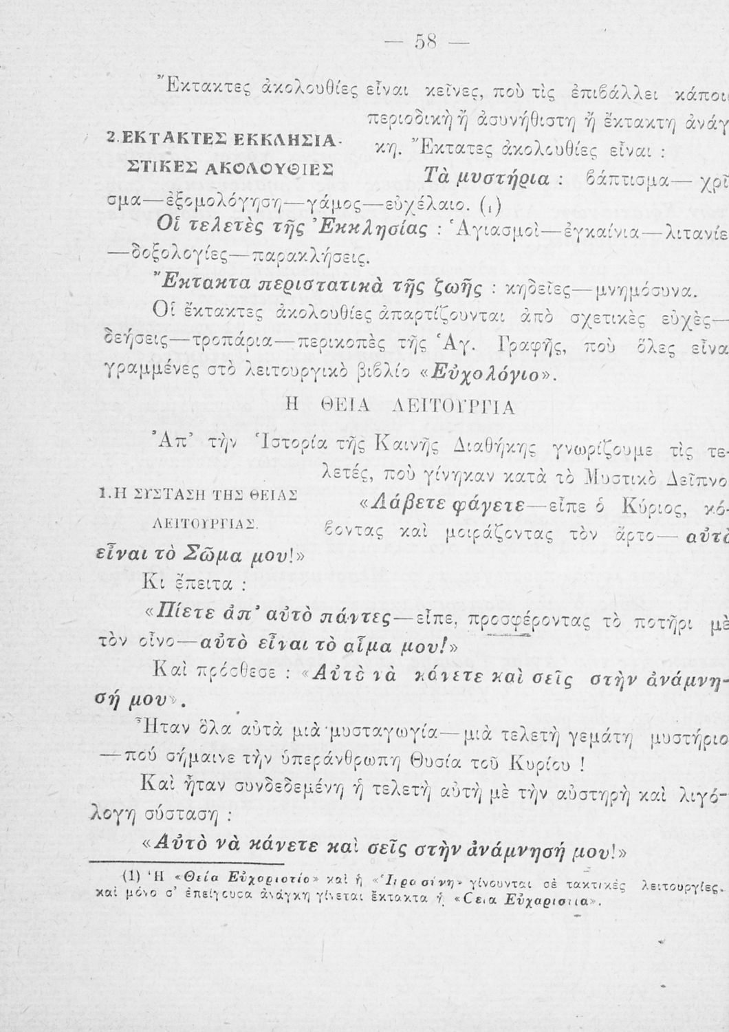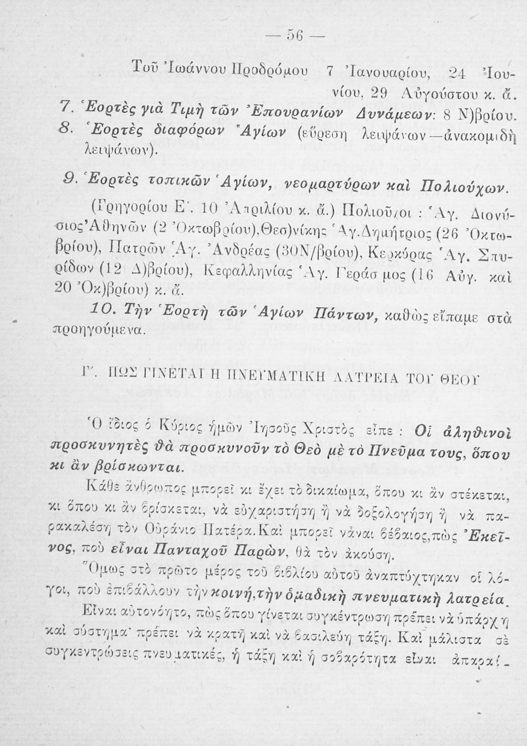 520 ## _aΤο σύγγραμμα ήταν σχολικό εγχειρίδιο για το μαθήματα των Θρησκευτικών στο Δημοτικό. Περιγράφει σημαντικά γεγονότα της θρησκευτικής ζωής και μετά ασχολείται με τη λειτουργική εξετάζοντας κάθε τι που έχει σχέση με την πνευματική λατρεία του θεού. Επίσης, διαθέτει παράρτημα με τους βίους των Αγίων.