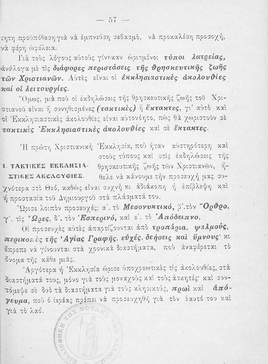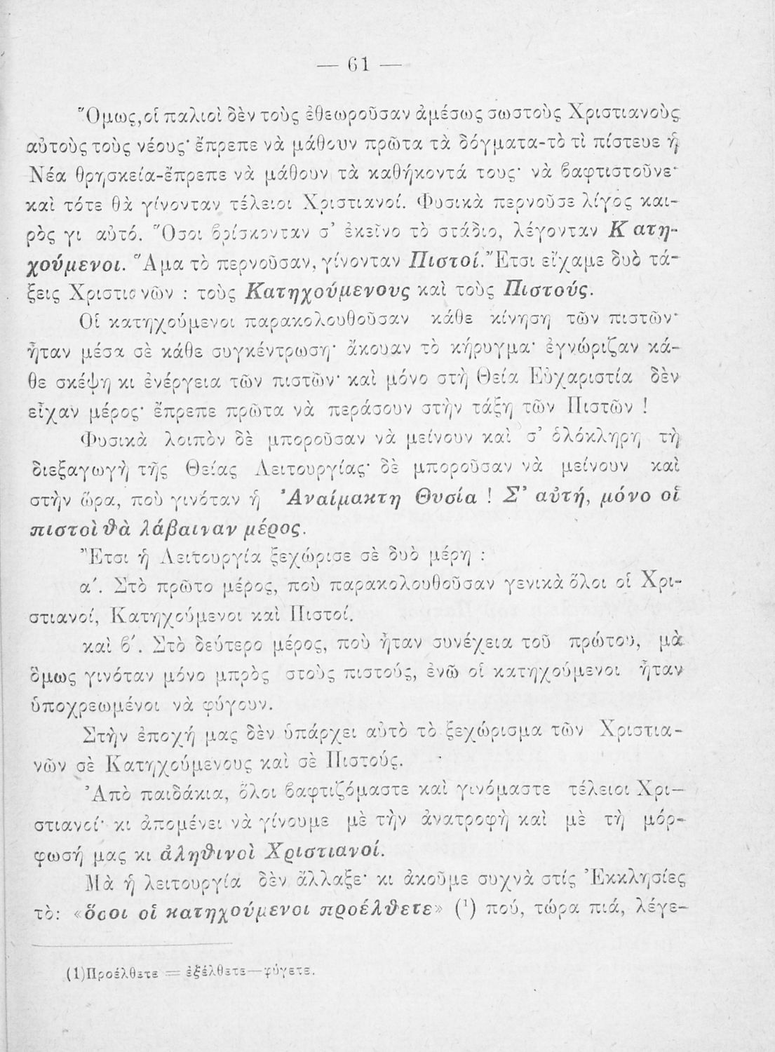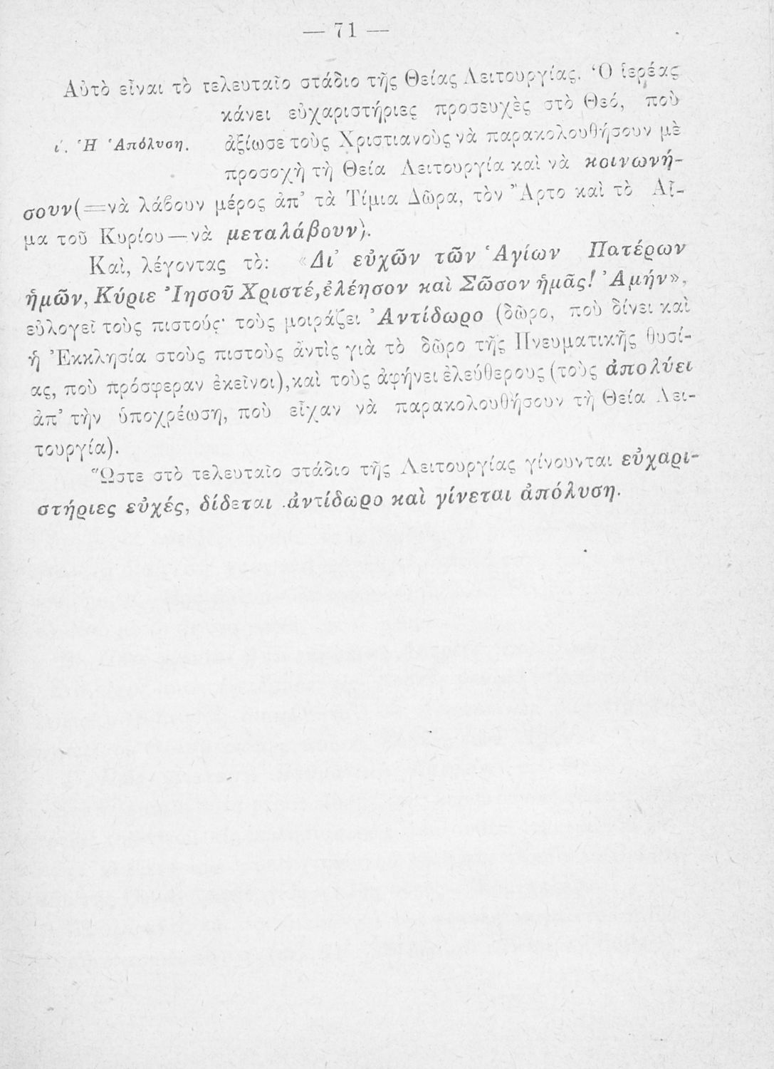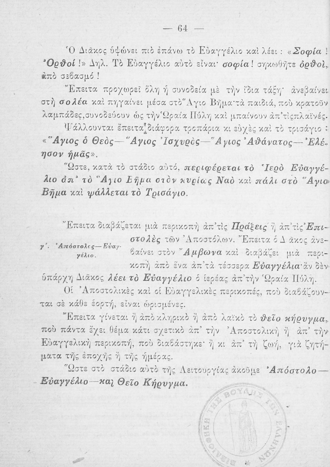 520 ## _aΤο σύγγραμμα ήταν σχολικό εγχειρίδιο για το μαθήματα των Θρησκευτικών στο Δημοτικό. Περιγράφει σημαντικά γεγονότα της θρησκευτικής ζωής και μετά ασχολείται με τη λειτουργική εξετάζοντας κάθε τι που έχει σχέση με την πνευματική λατρεία του θεού. Επίσης, διαθέτει παράρτημα με τους βίους των Αγίων.