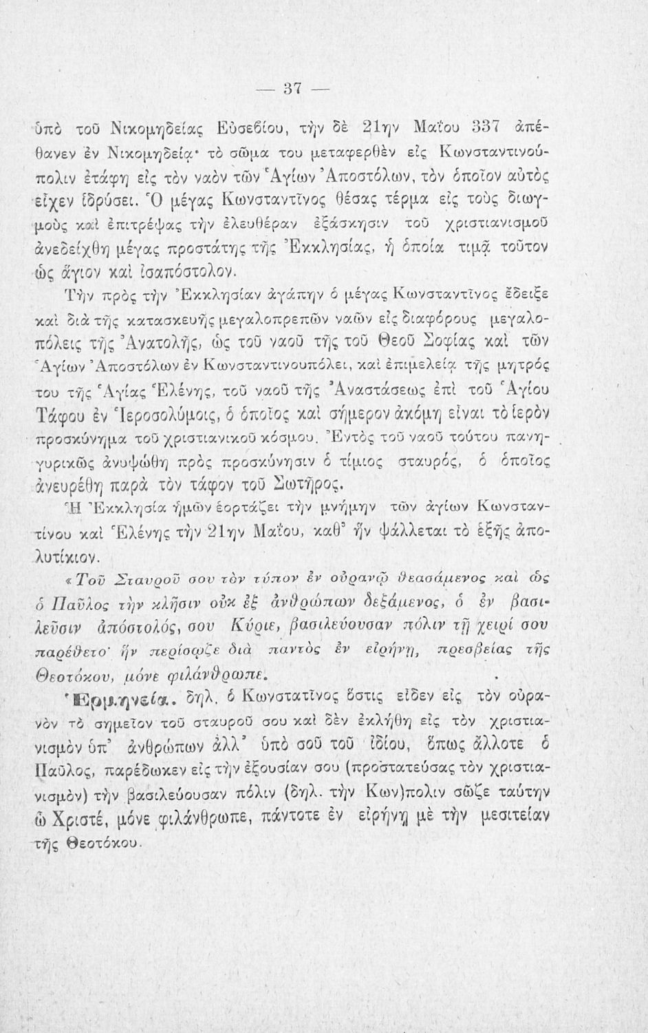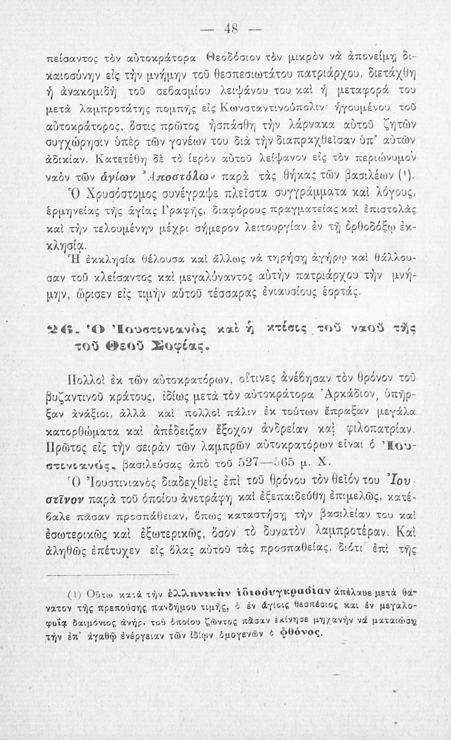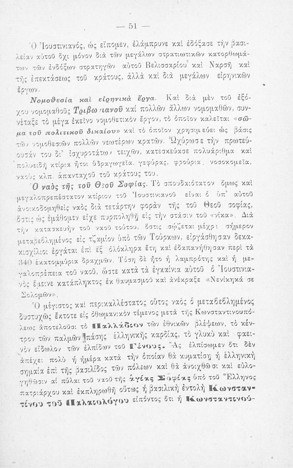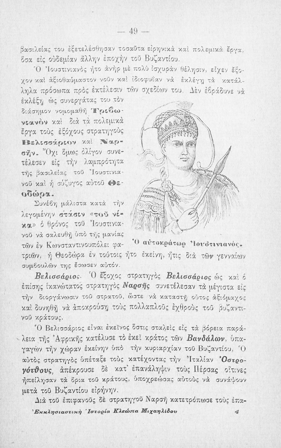 Το σύγγραμμα ήταν σχολικό εγχειρίδιο για το μαθήματα των Θρησκευτικών. Περιγράφει σημαντικά γεγονότα της θρησκευτικής ζωής ξεκινώντας από την Πεντηκοστή. Επίσης, αναφέρεται σε θέματα διοίκησης της εκκλησίας και τα άλλα Πατριαρχεία.