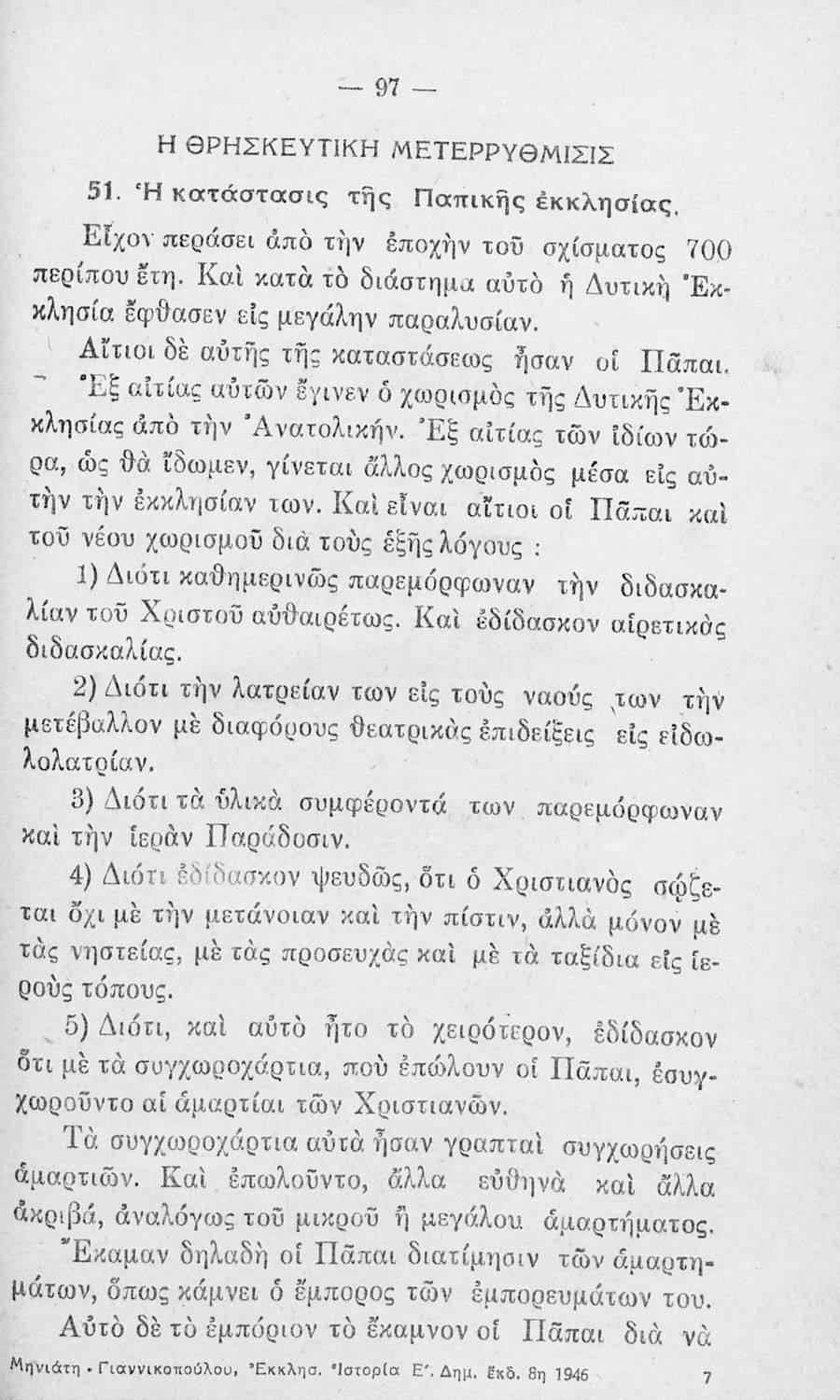 Βαθμίδα εκπαίδευσης: Πρωτοβάθμια Τάξη: Ε' Δημοτικού Μάθημα: Θρησκευτικά Γλώσσα: Απλή καθαρεύουσα Παρουσίαση περιεχομένου: Σχολικό εγχειρίδιο Θρησκευτικών Ε΄ Δημοτικού που αποτελεί μια ιστορική επισκόπηση της Ορθόδοξης Εκκλησίας από την ίδρυσή της μέχρι την ίδρυση της Εκκλησίας της Ελλάδας και πραγματεύεται τις σχέσεις της Ορθοδοξίας με τα άλλα χριστιανικά δόγμα. |